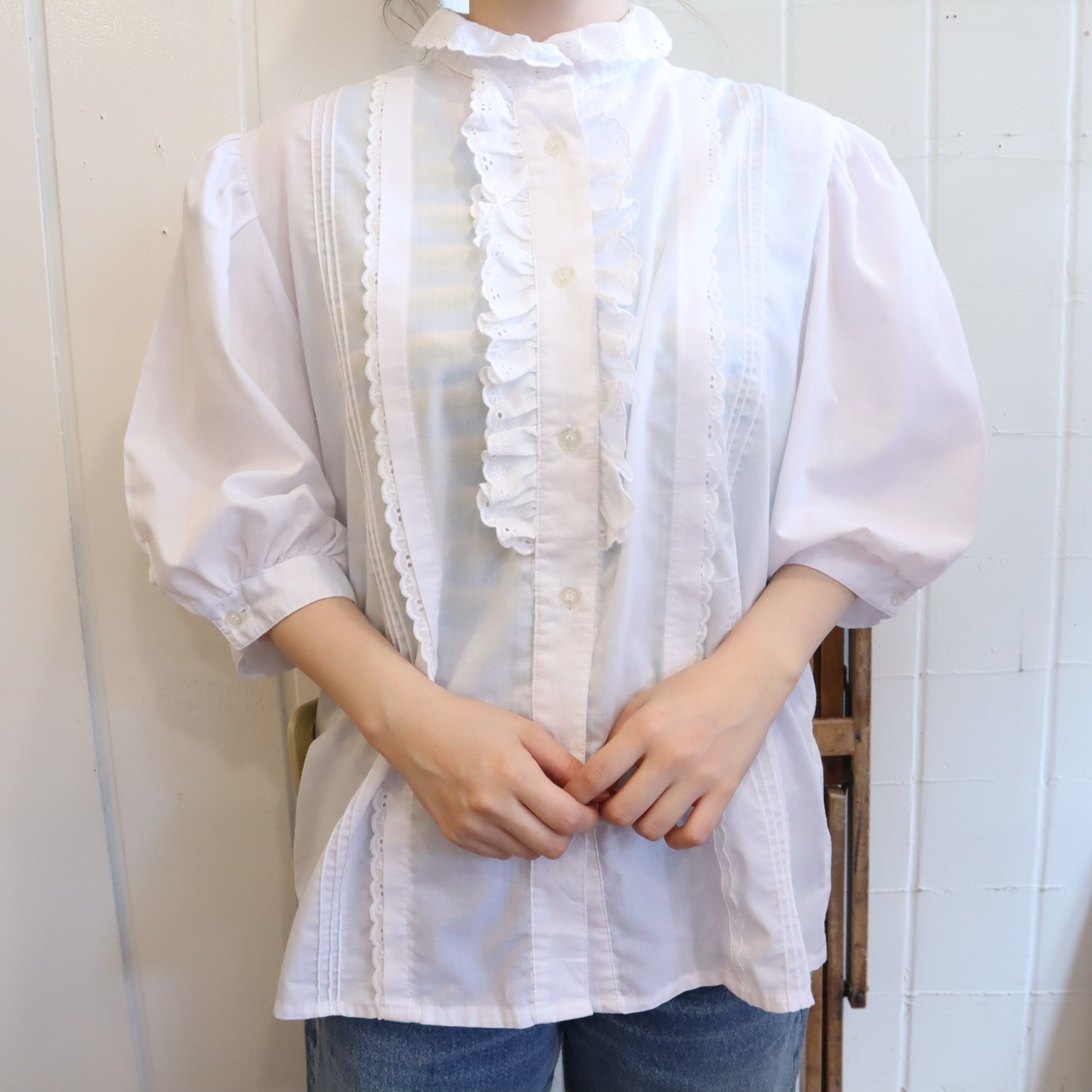 襟や胸元などのレースデザインが可愛いブラウス♡