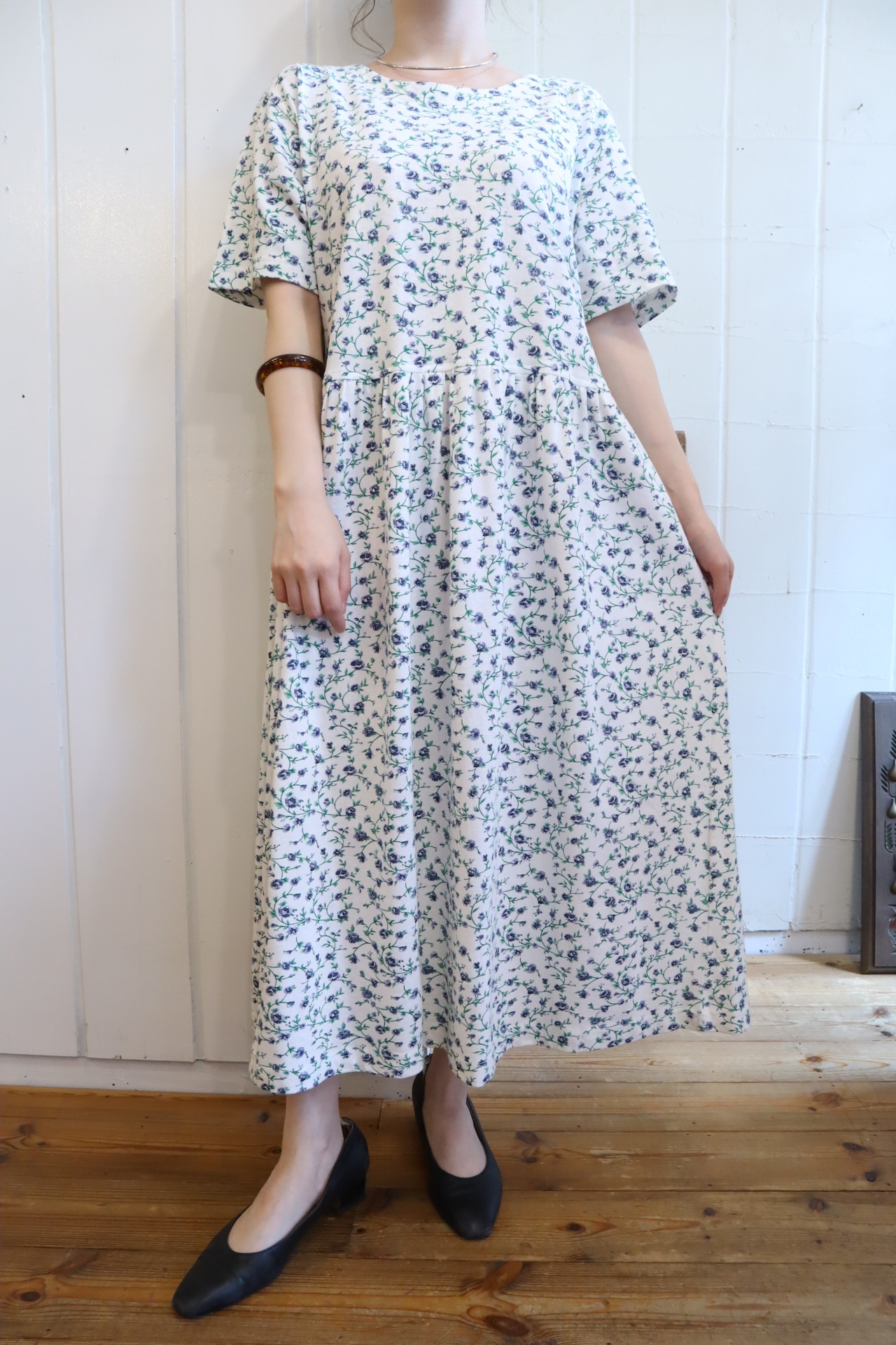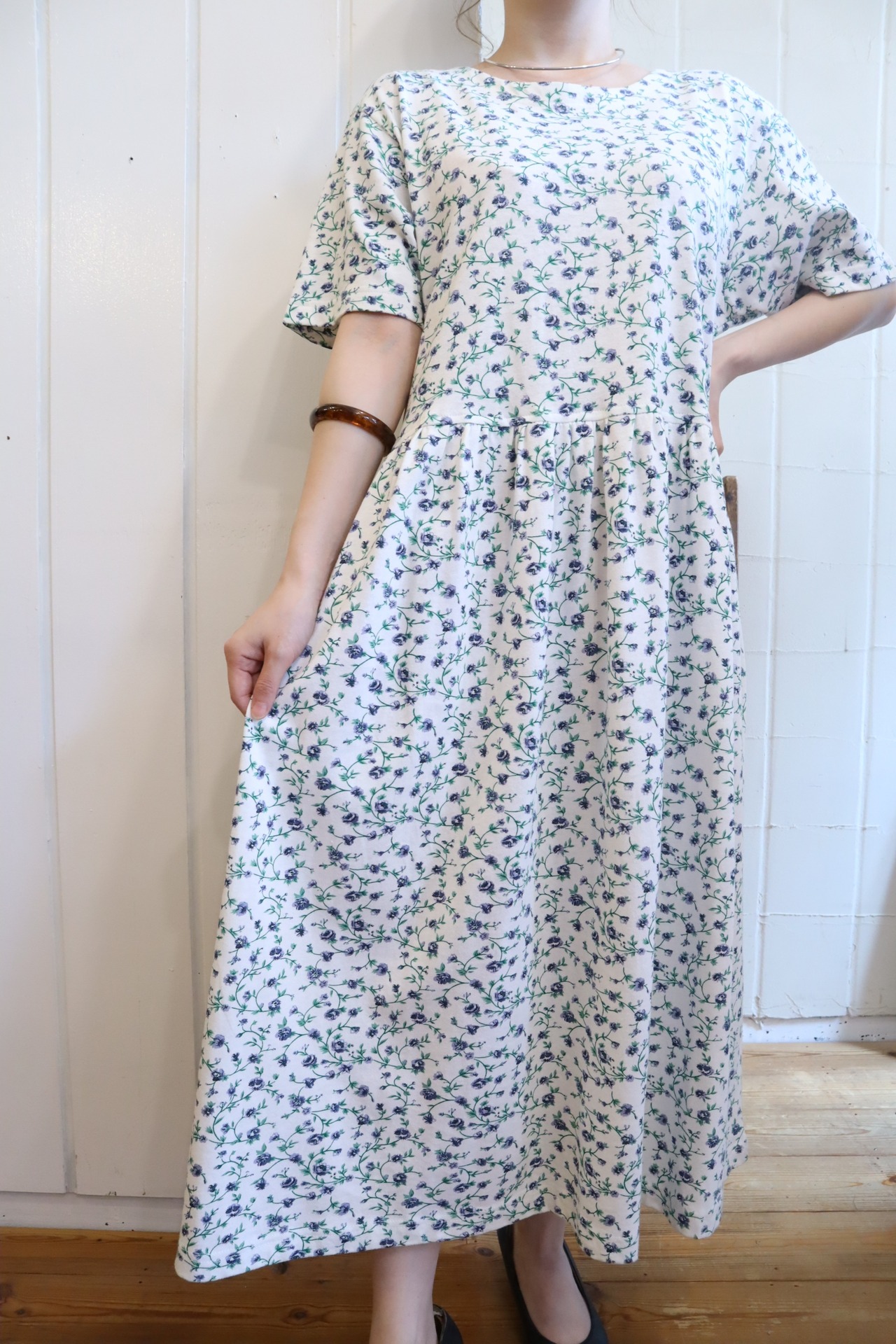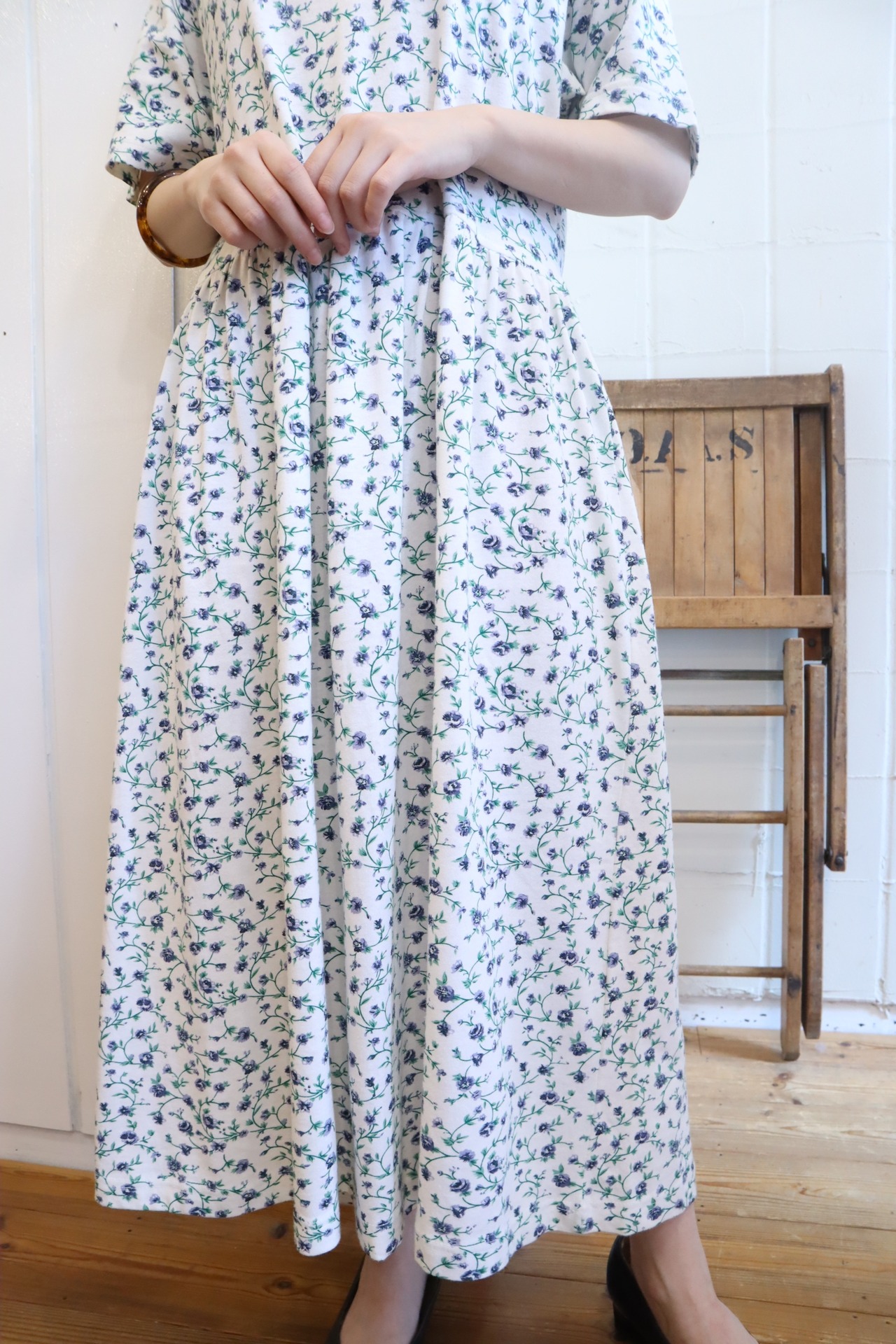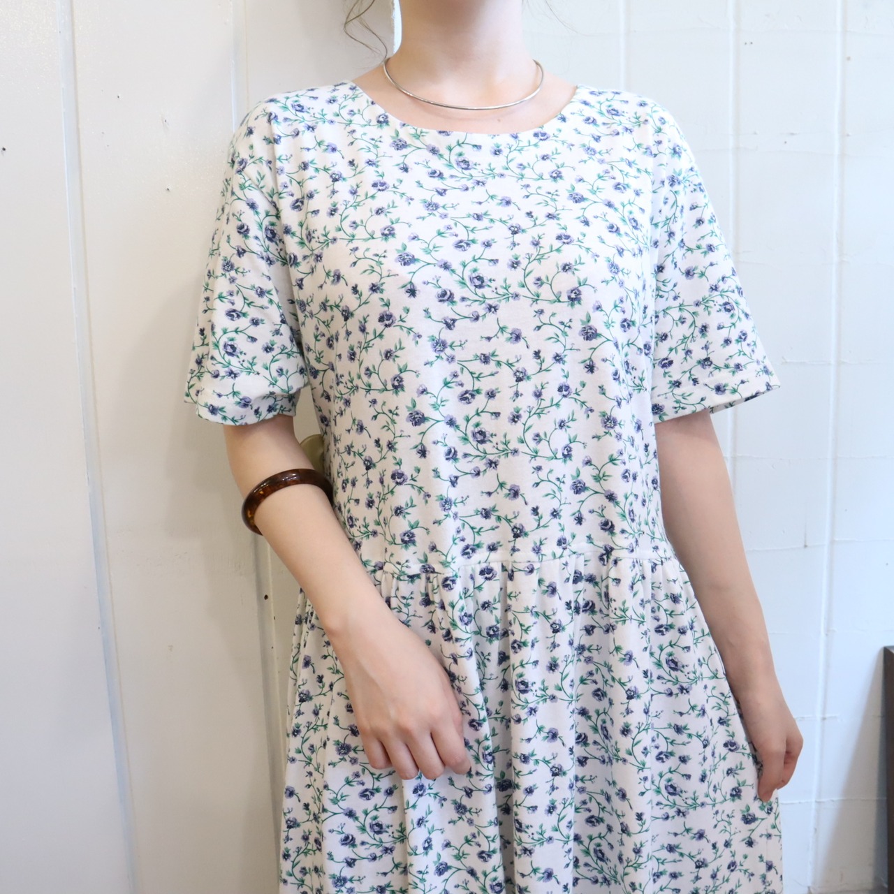 カットソー素材で着心地抜群なデッドストックの花柄ドレス。