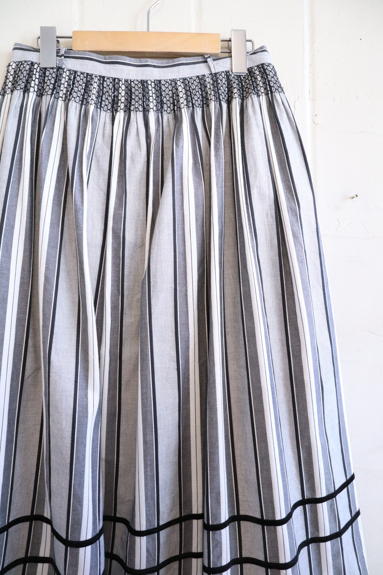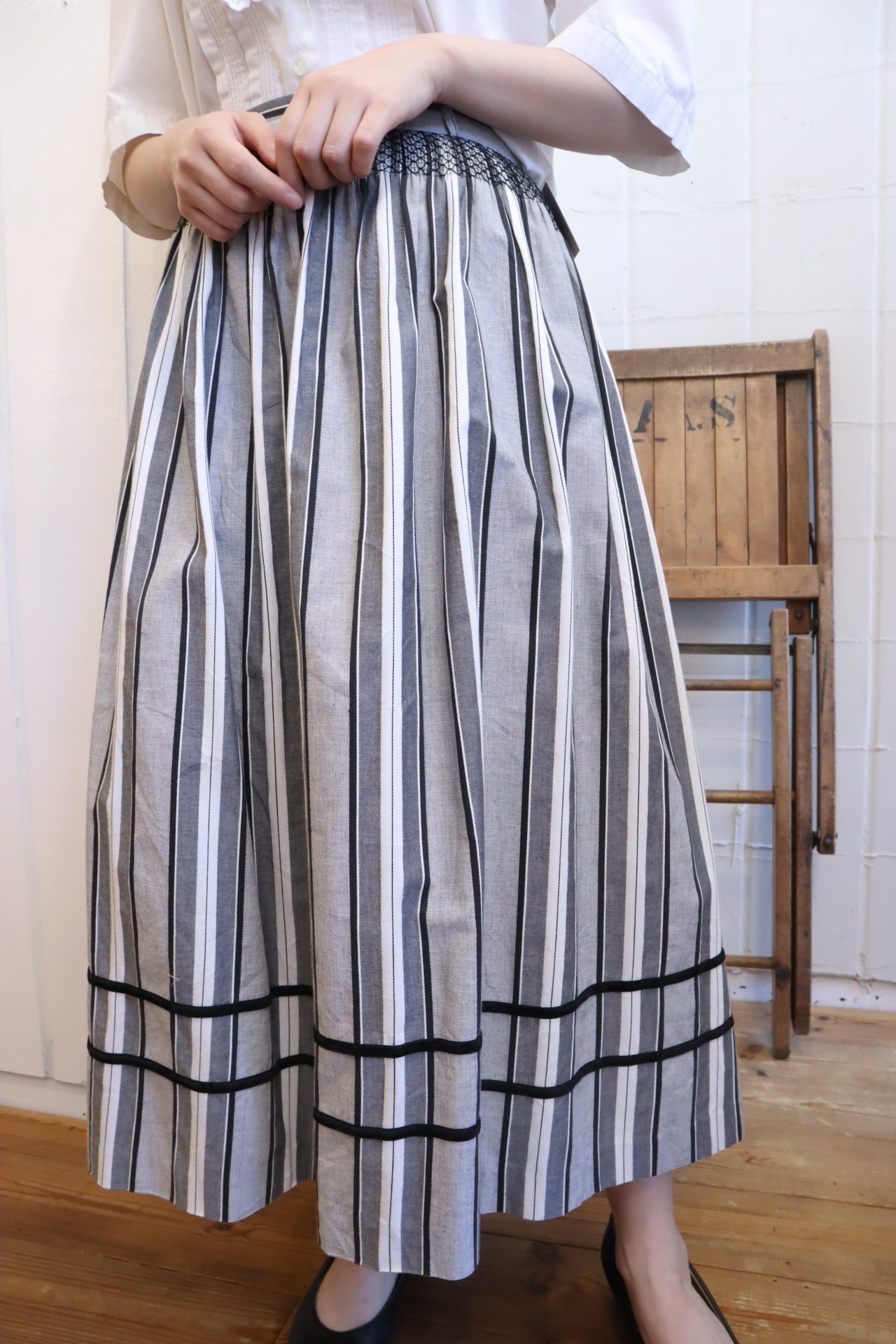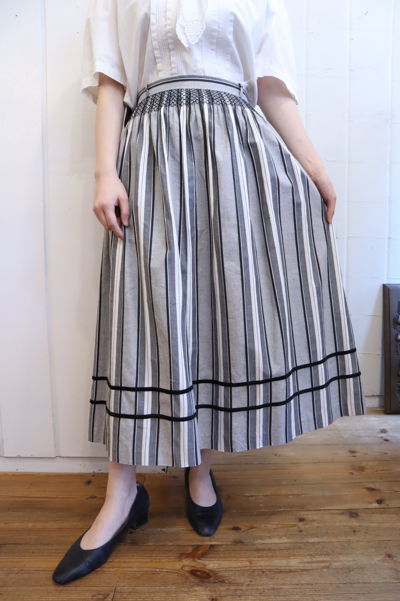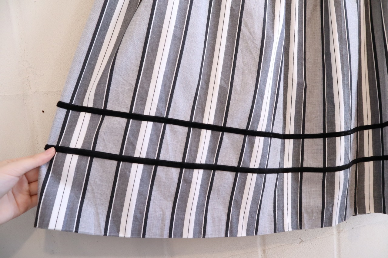 gray×white×black velour tape stripe tyrol skirt [l-3016]