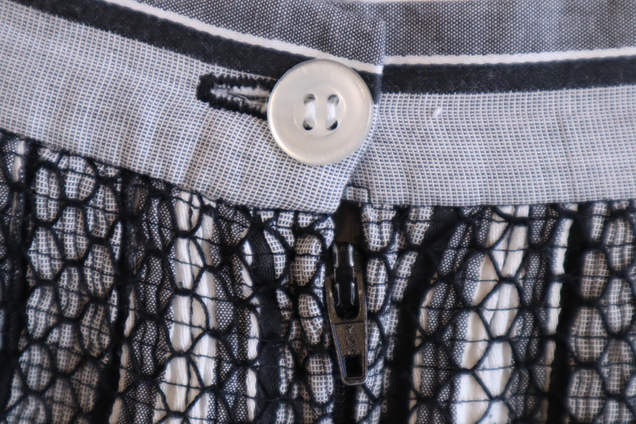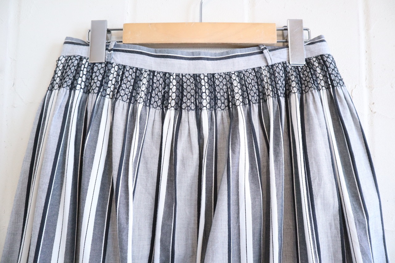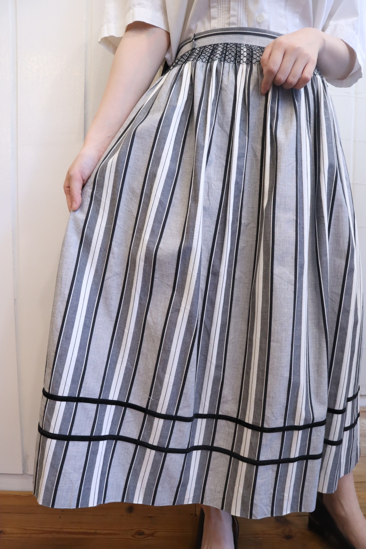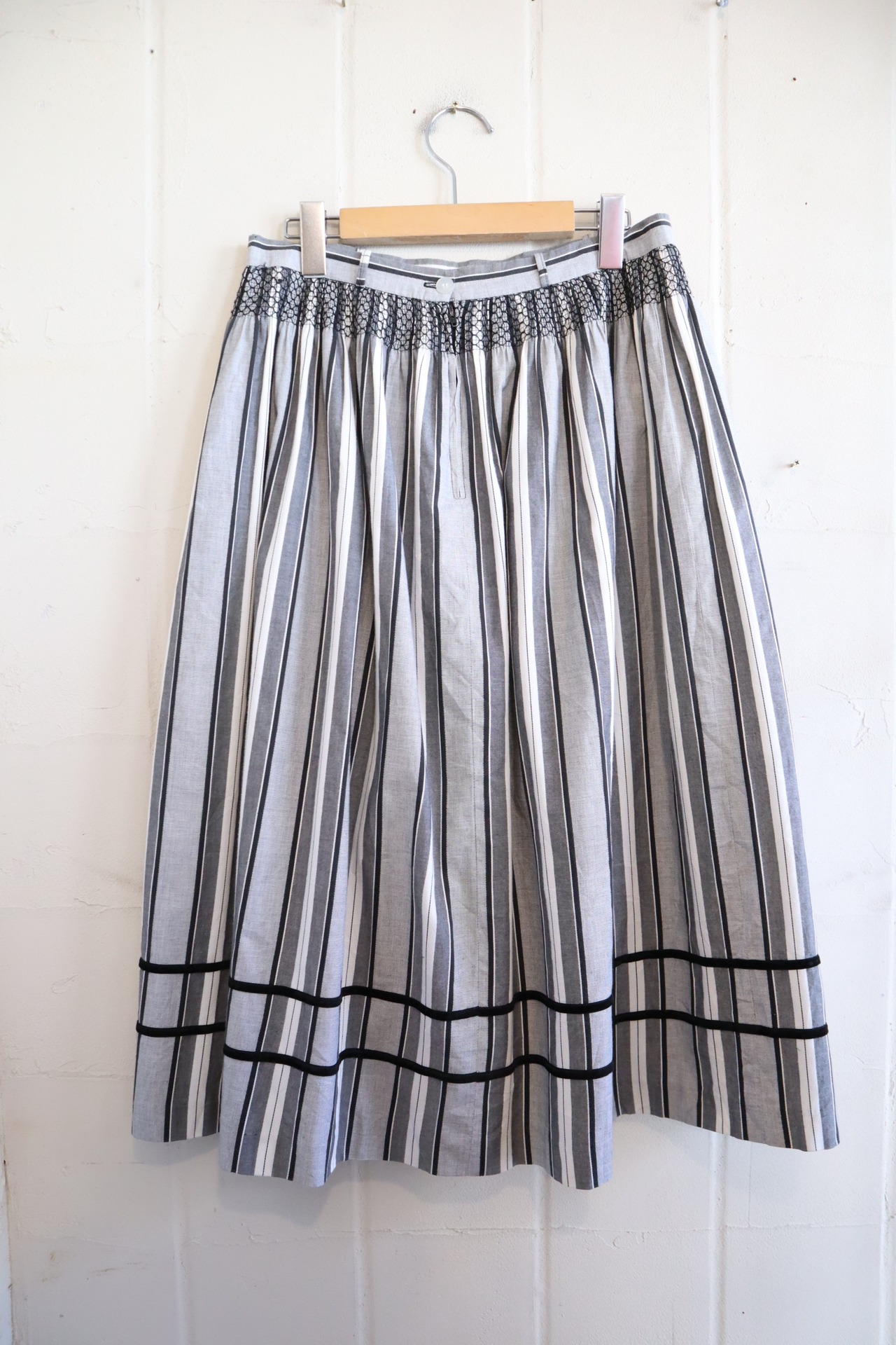 gray×white×black velour tape stripe tyrol skirt [l-3016]