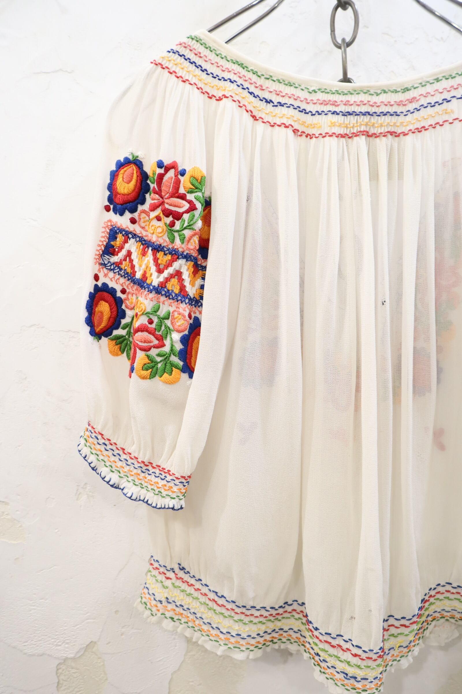 40s~ white×colorful flower Hungary embroidery tunic [l-3018]