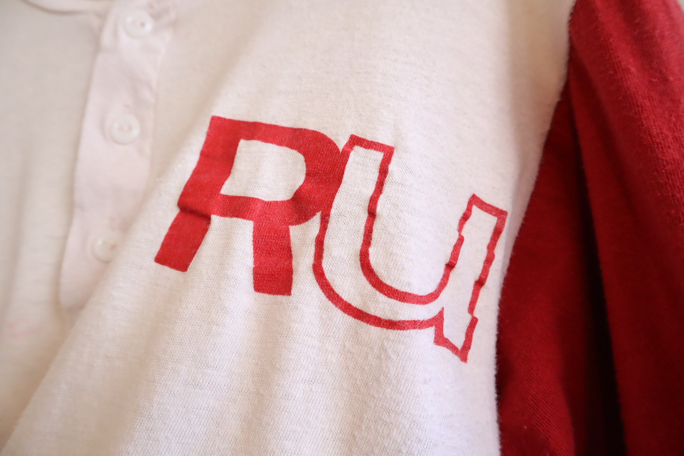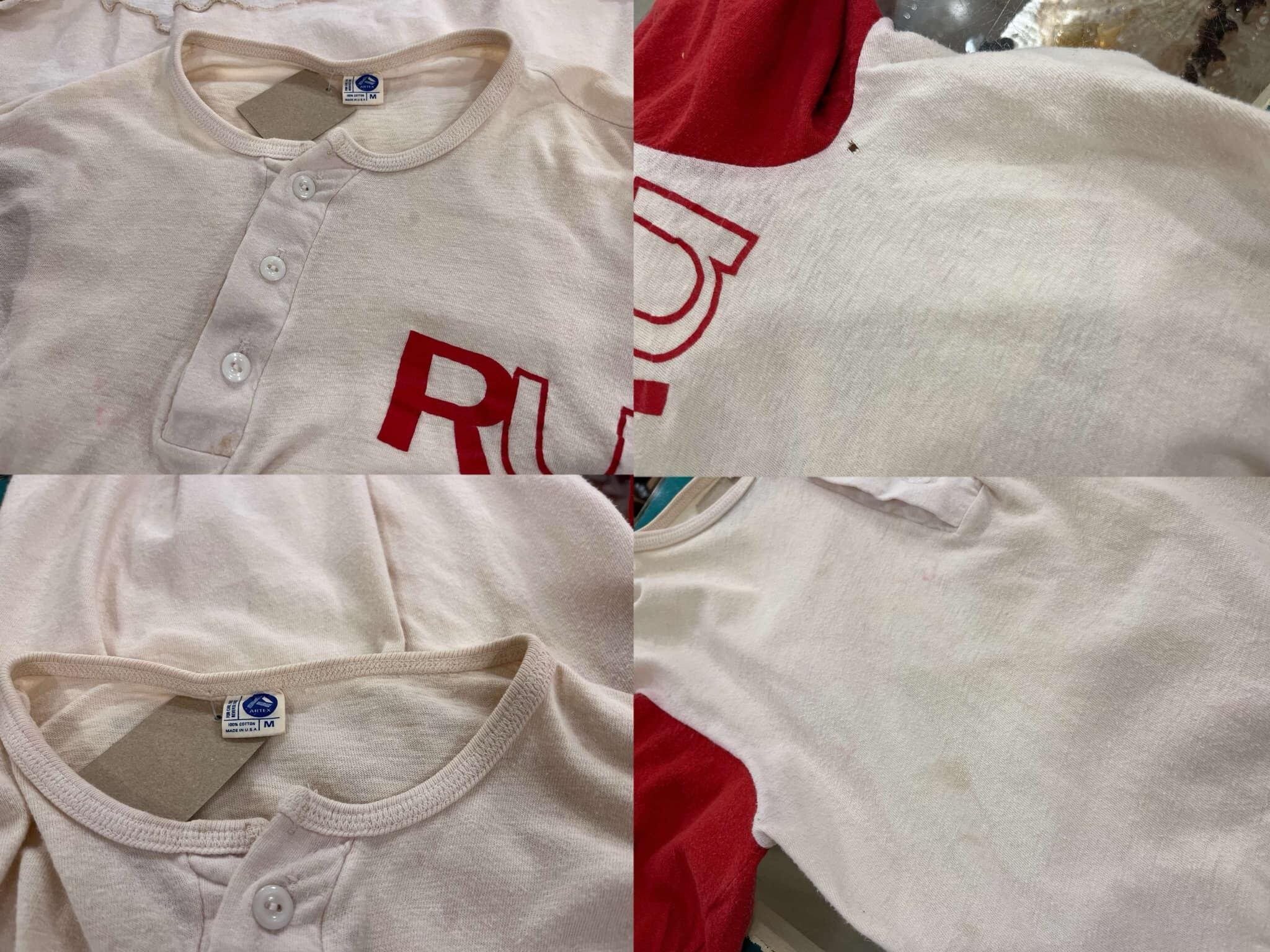 70s-80s ARTEX white×red print henley neck T-shirt [l-3021]