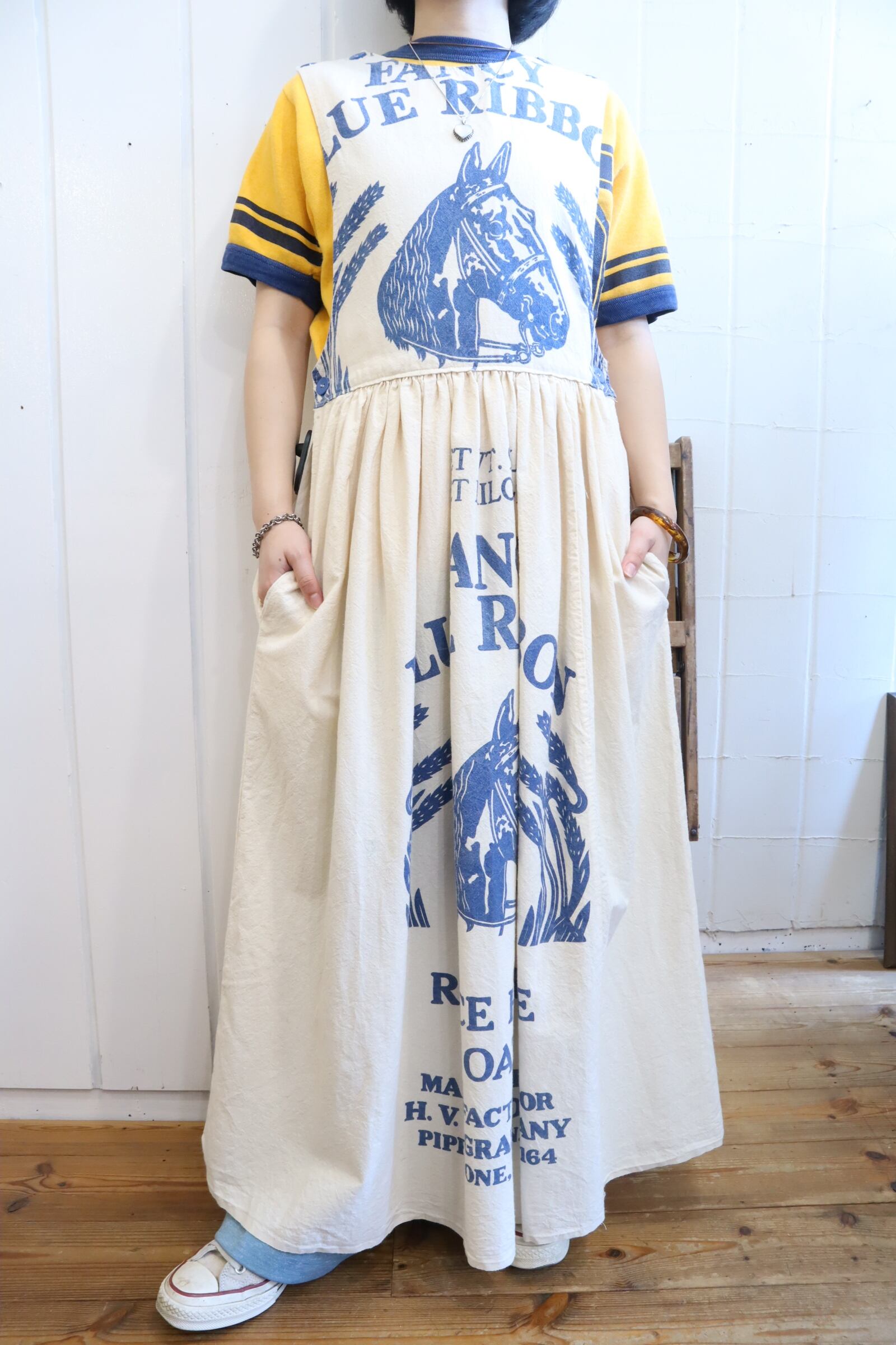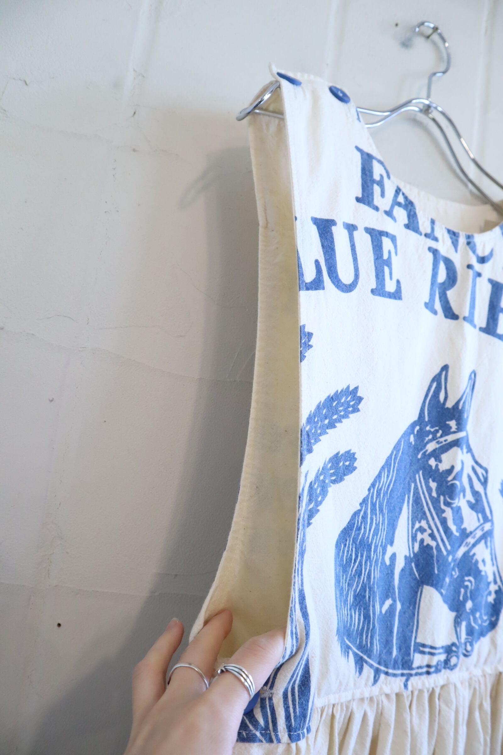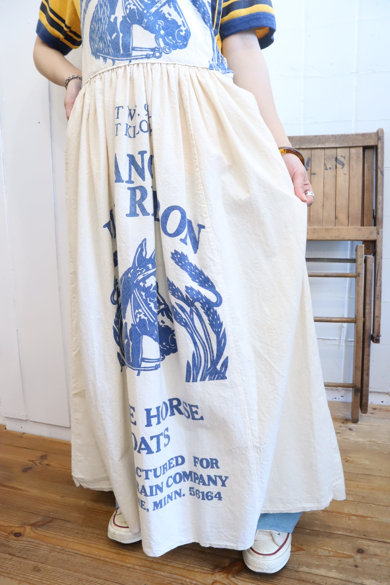 フロントはもちもん、後ろ側もぬかりない可愛さなフィードサックドレス。