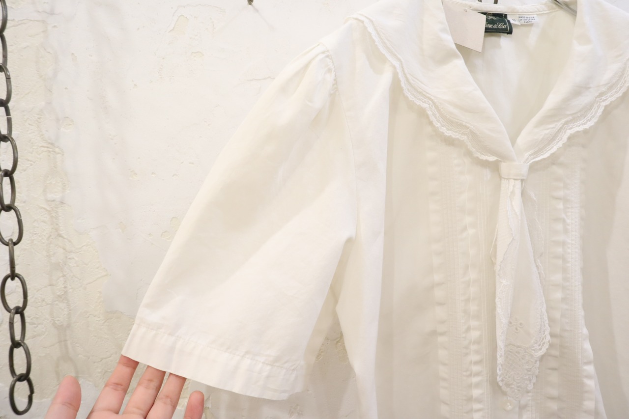 セーラーカラー風の襟が可愛いショートスリーブブラウス*