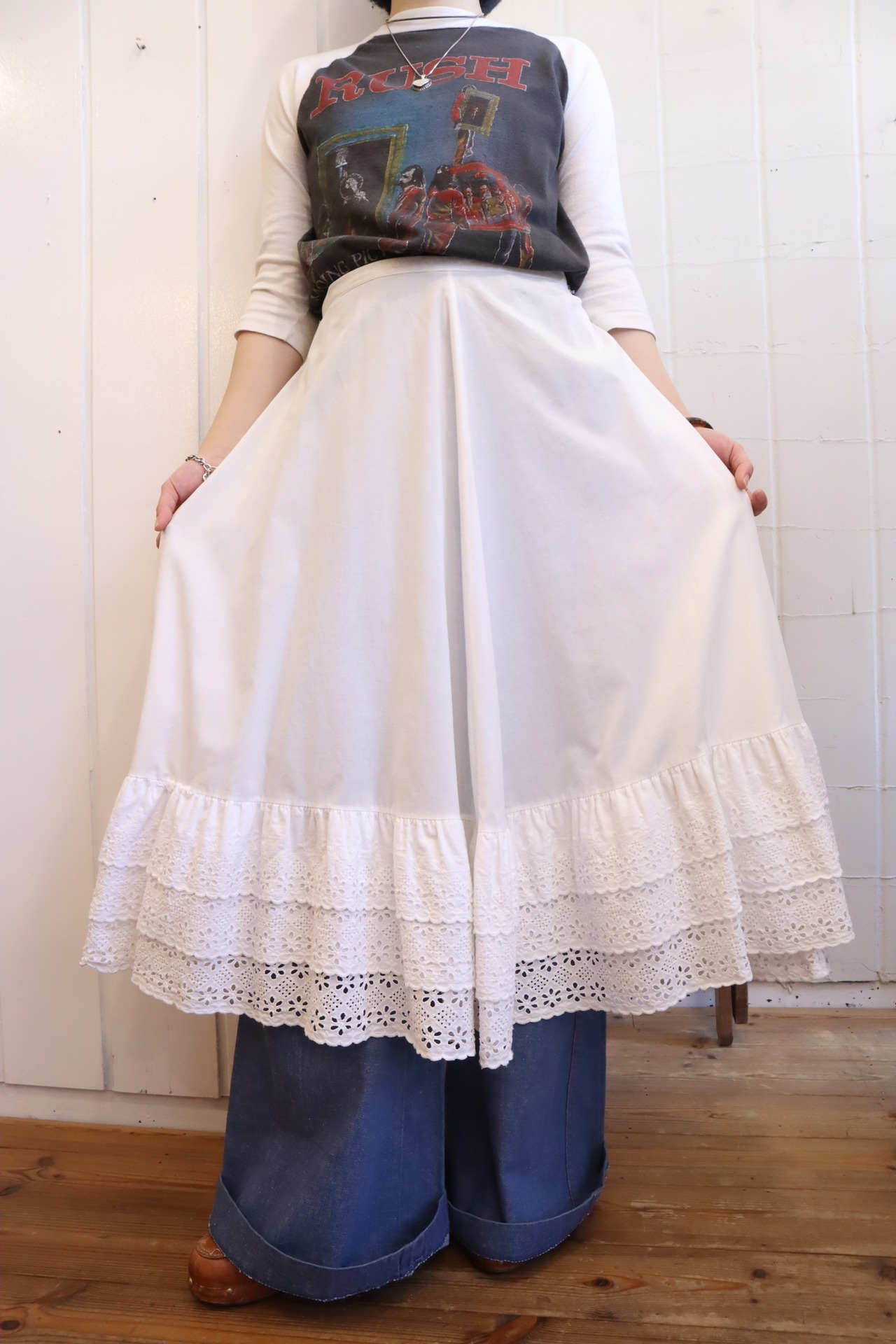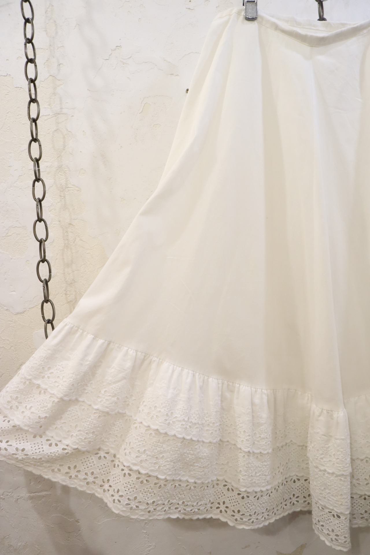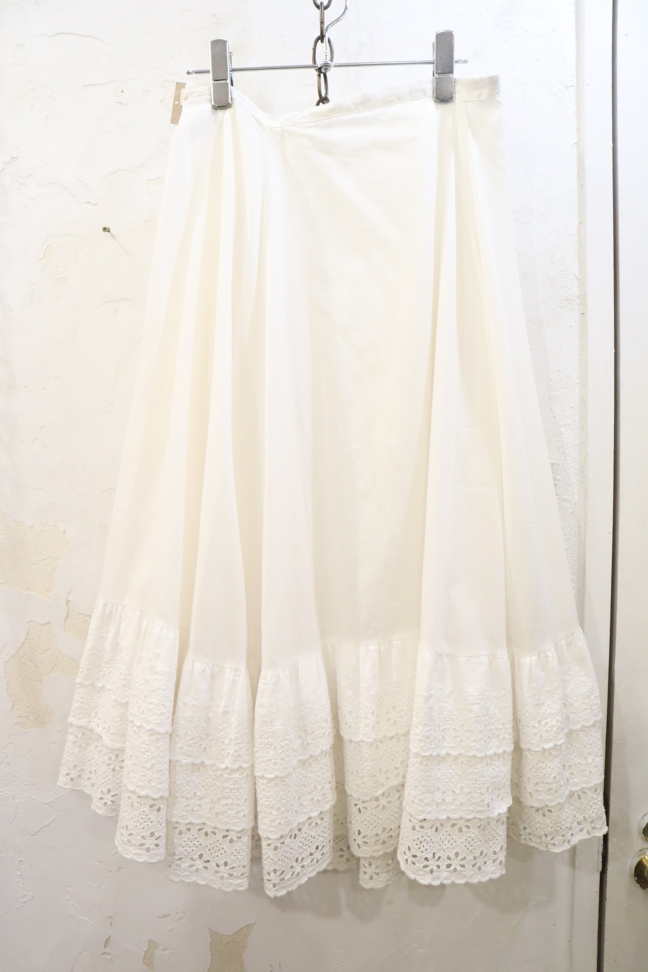 white eyelet lace frill hem skirt [l-3038]