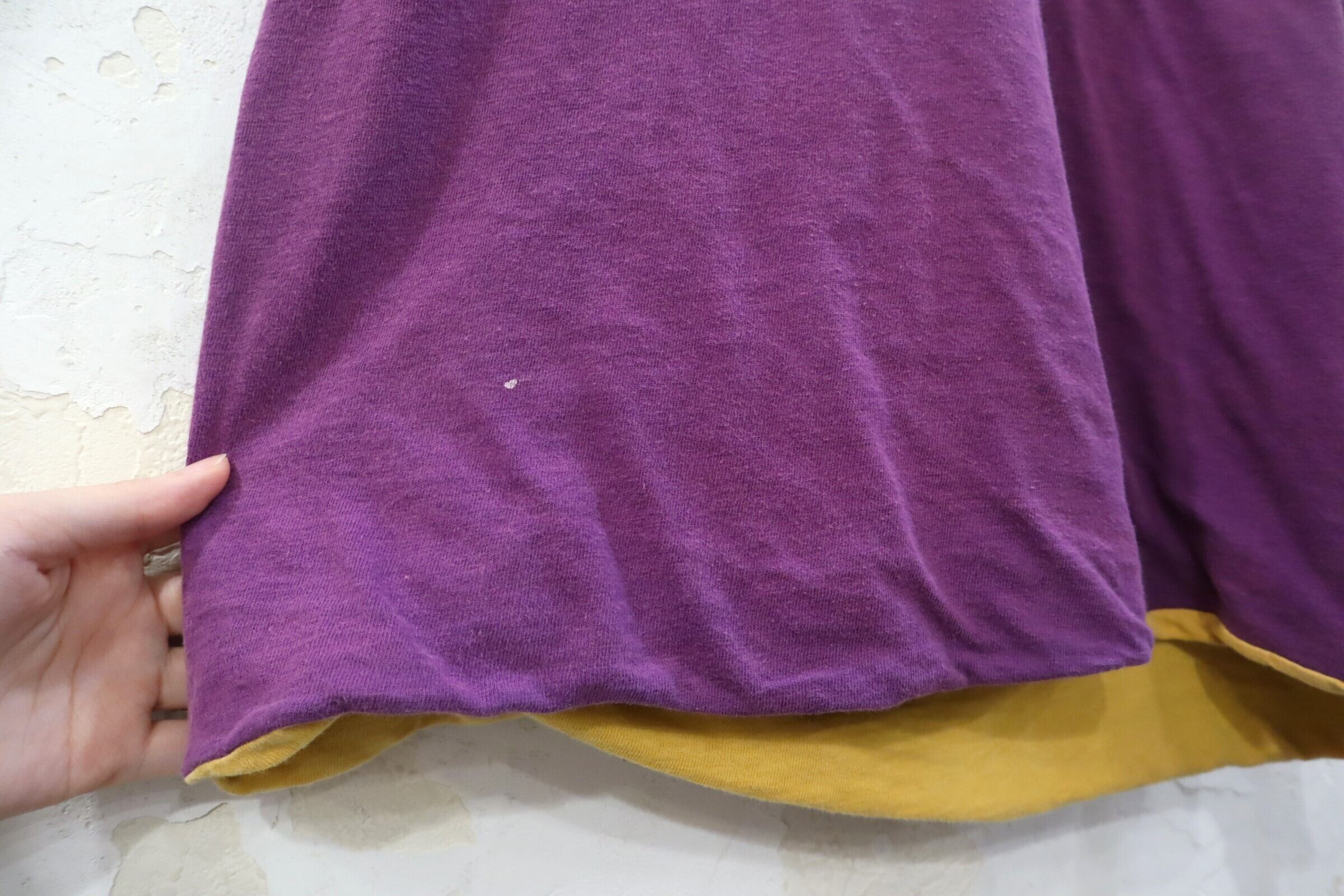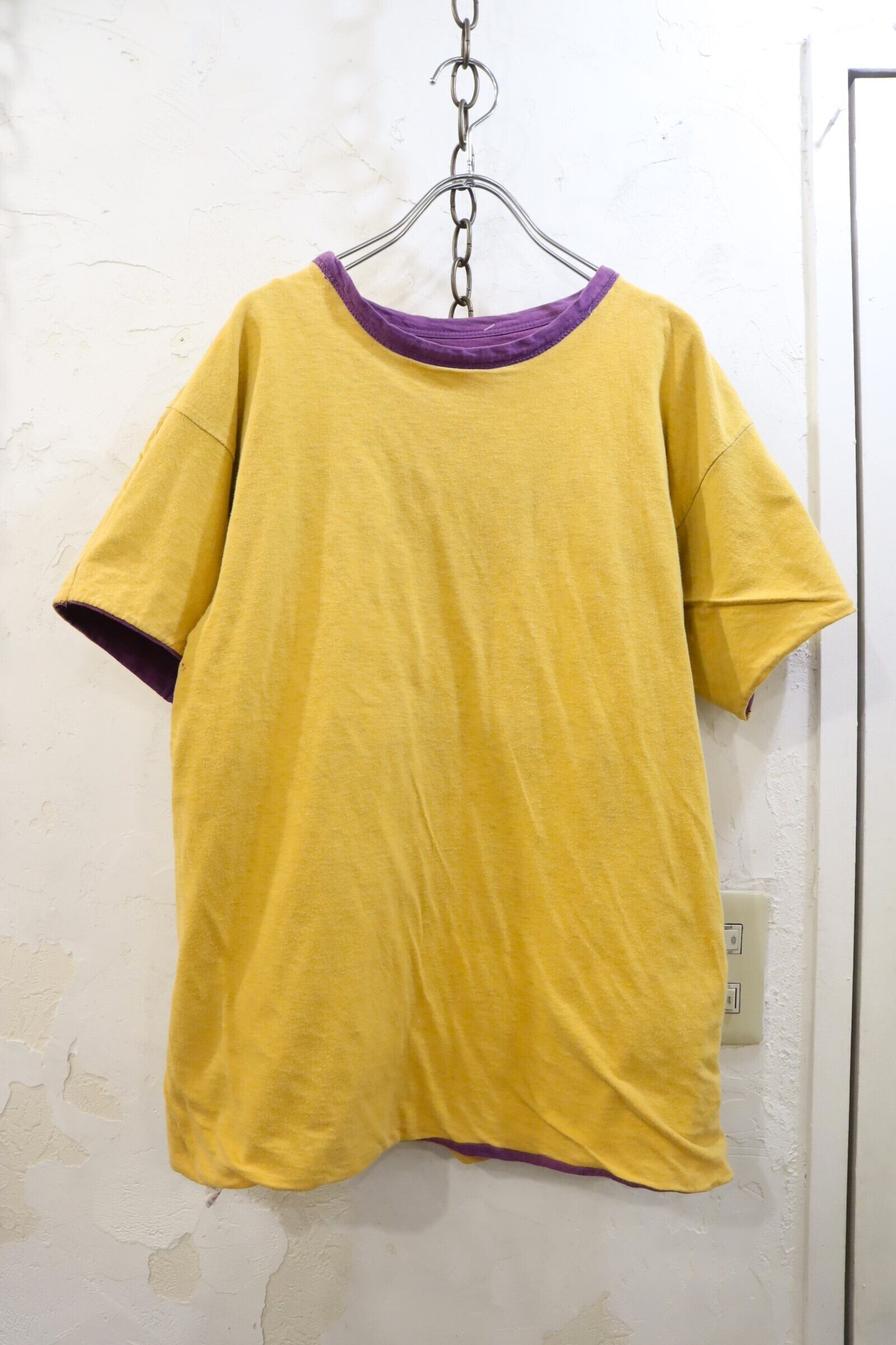 70-80s champion purple×yellow rubber print double face T-shirt [l-3043]