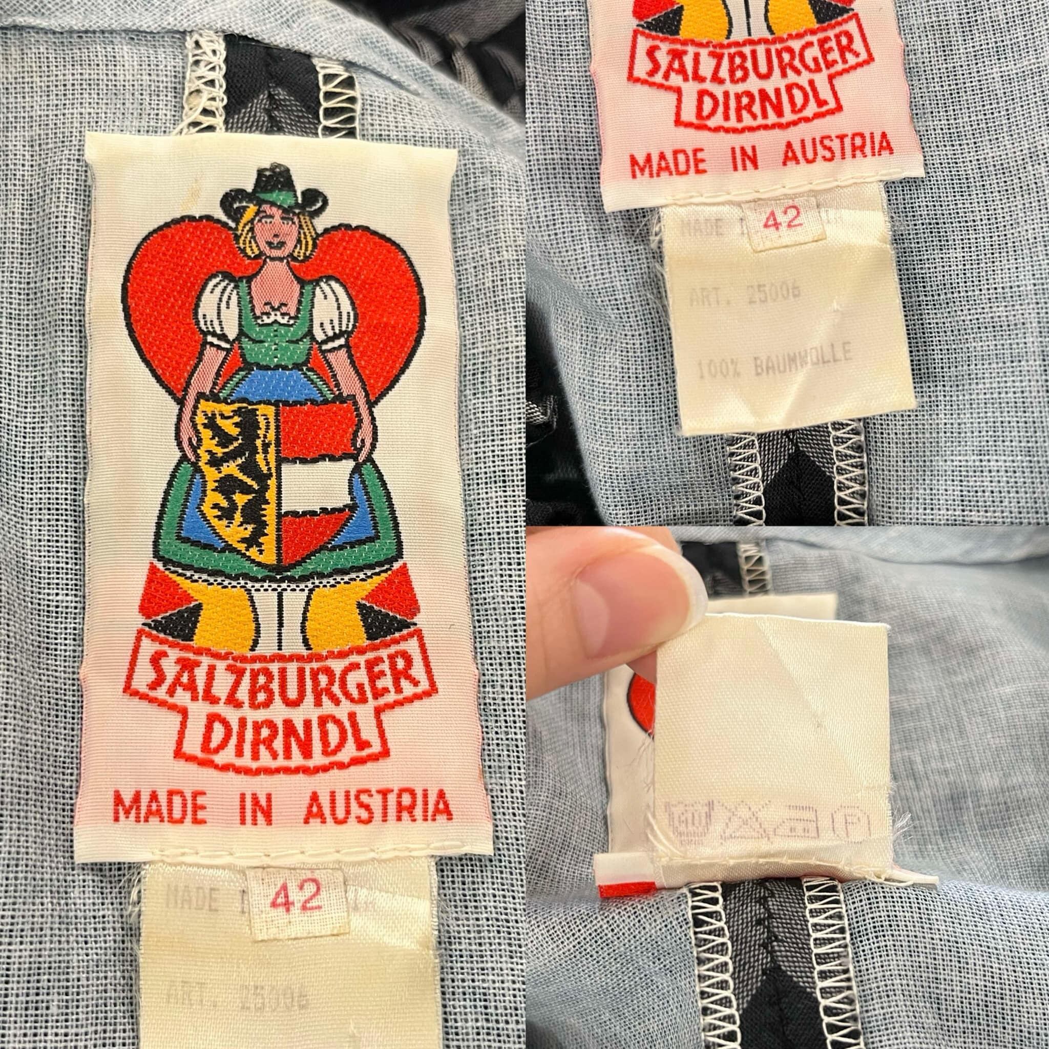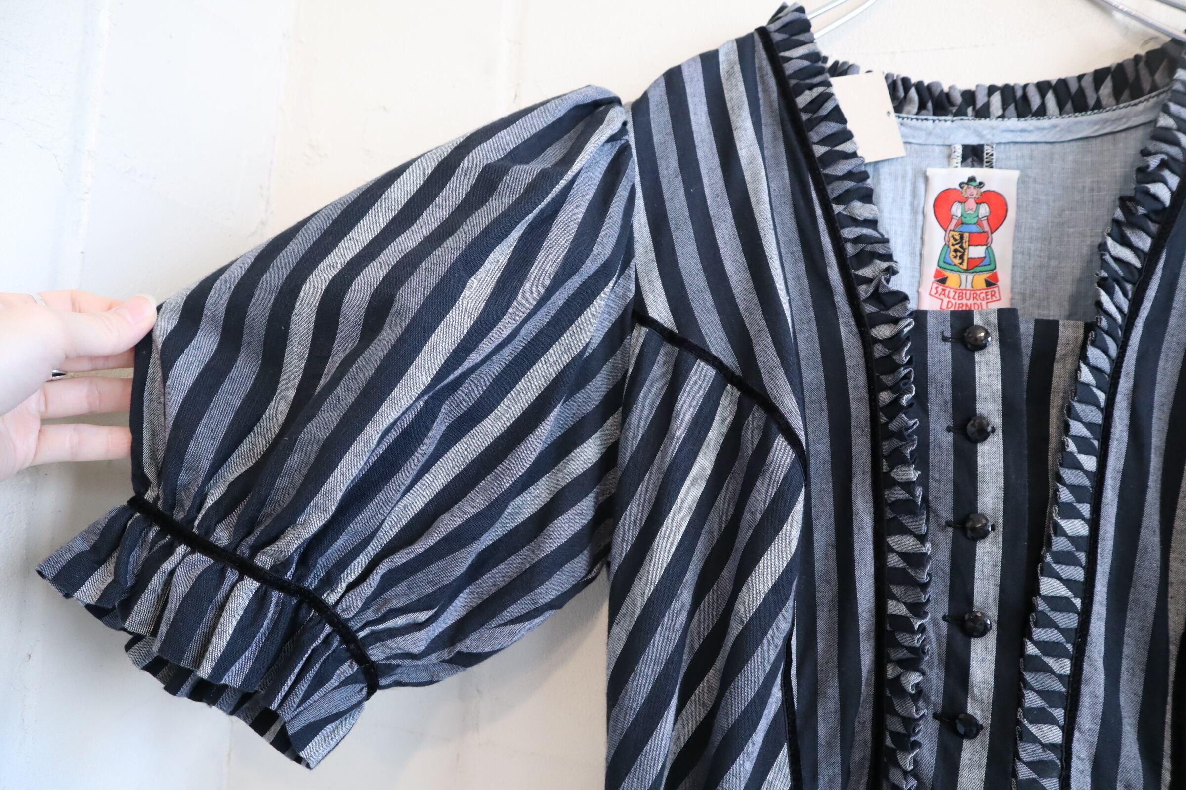 black×lightgray stripe puff sleeve tyrol dress [l-3047]