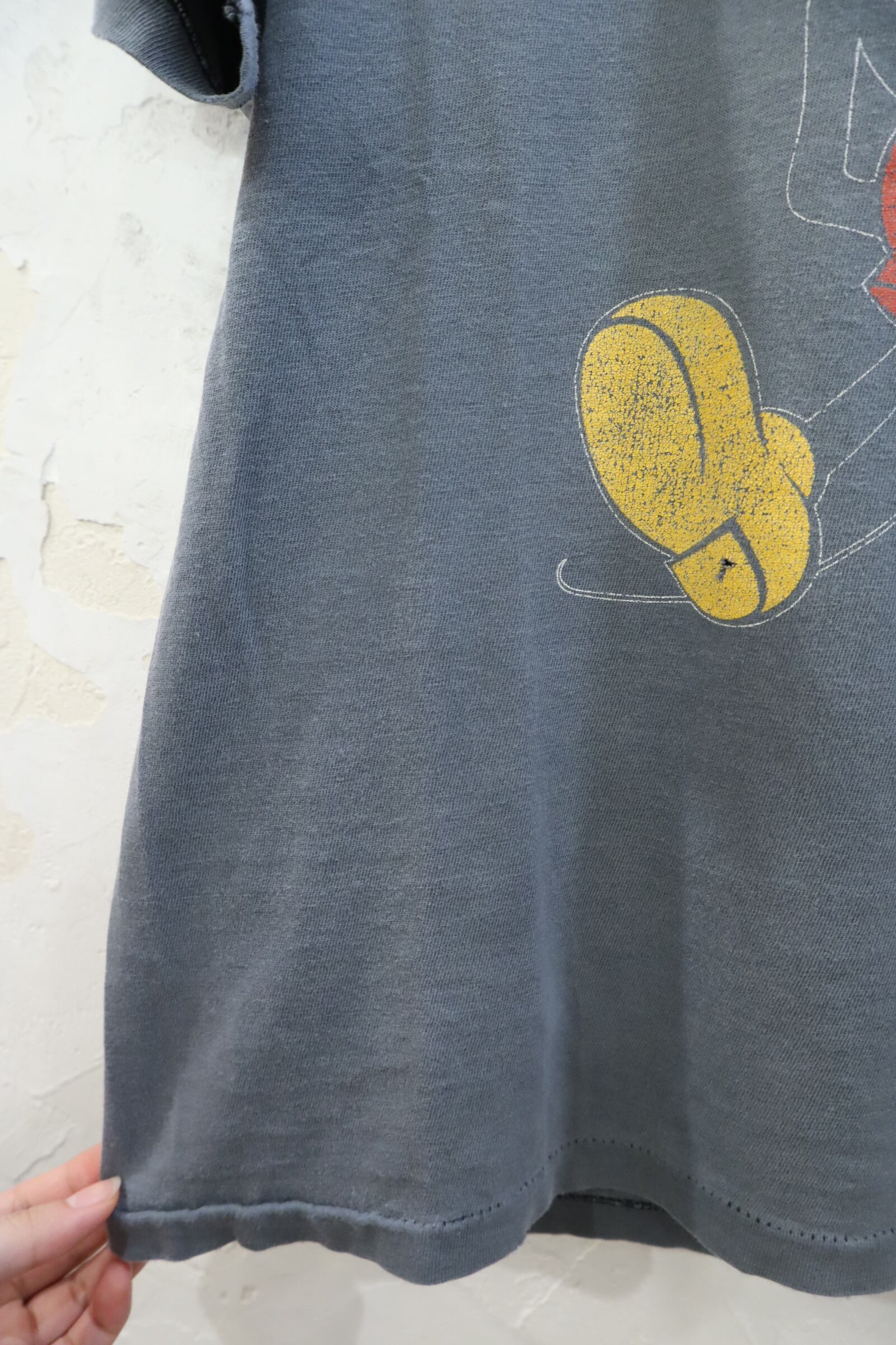 made in USA 80s gray×white×red character print T-shirt [l-3070]