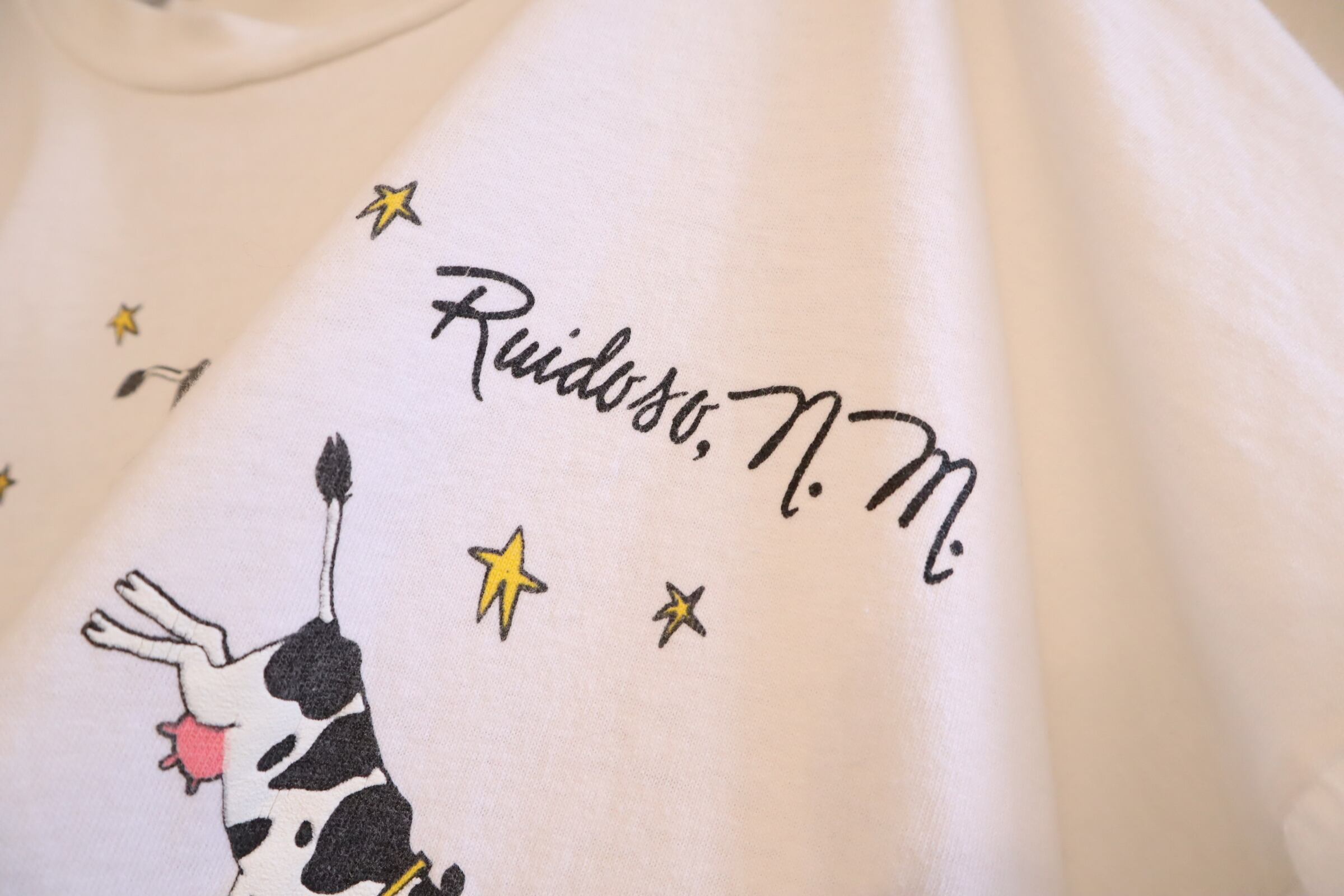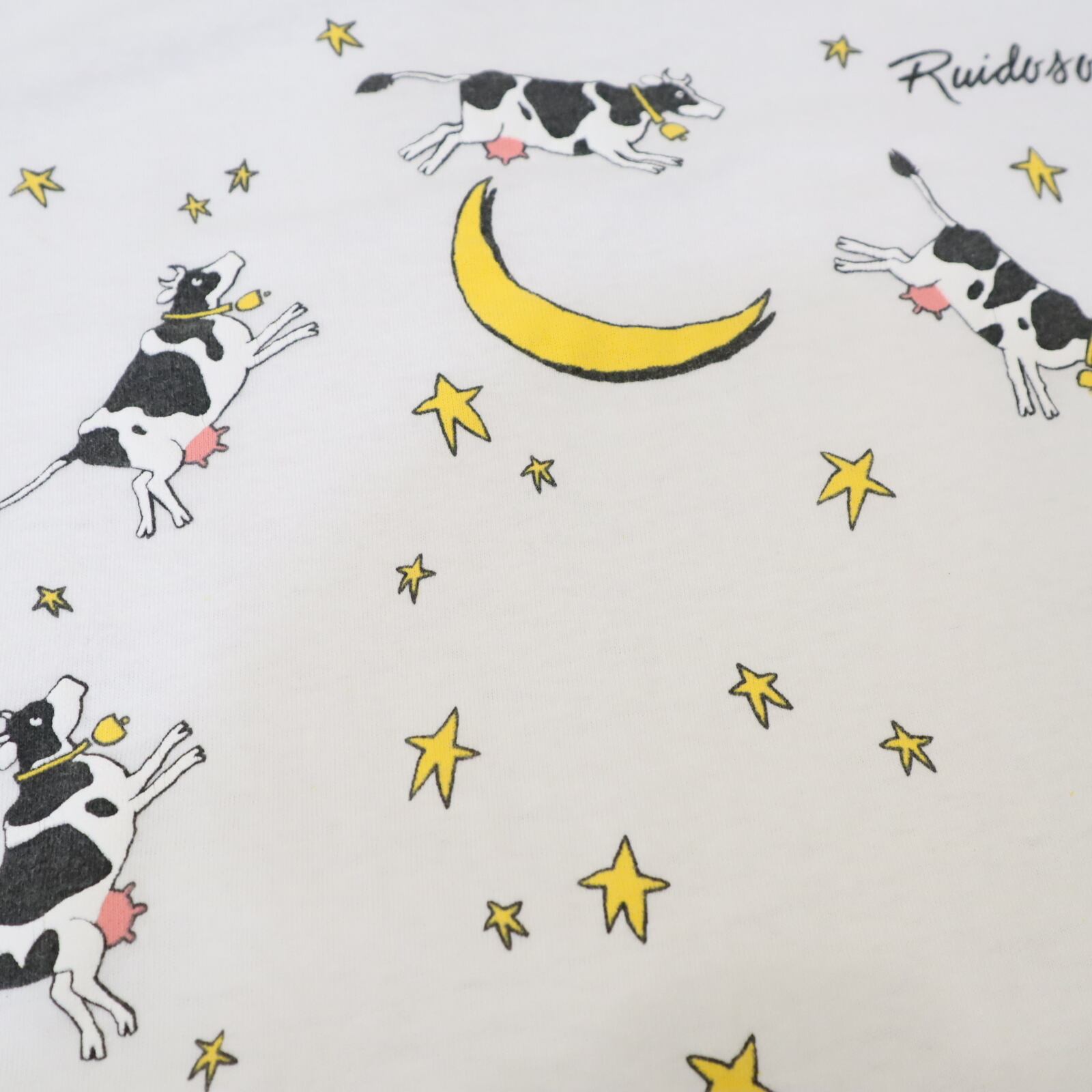 手描きタッチの星と牛のプリントが可愛いTシャツ*