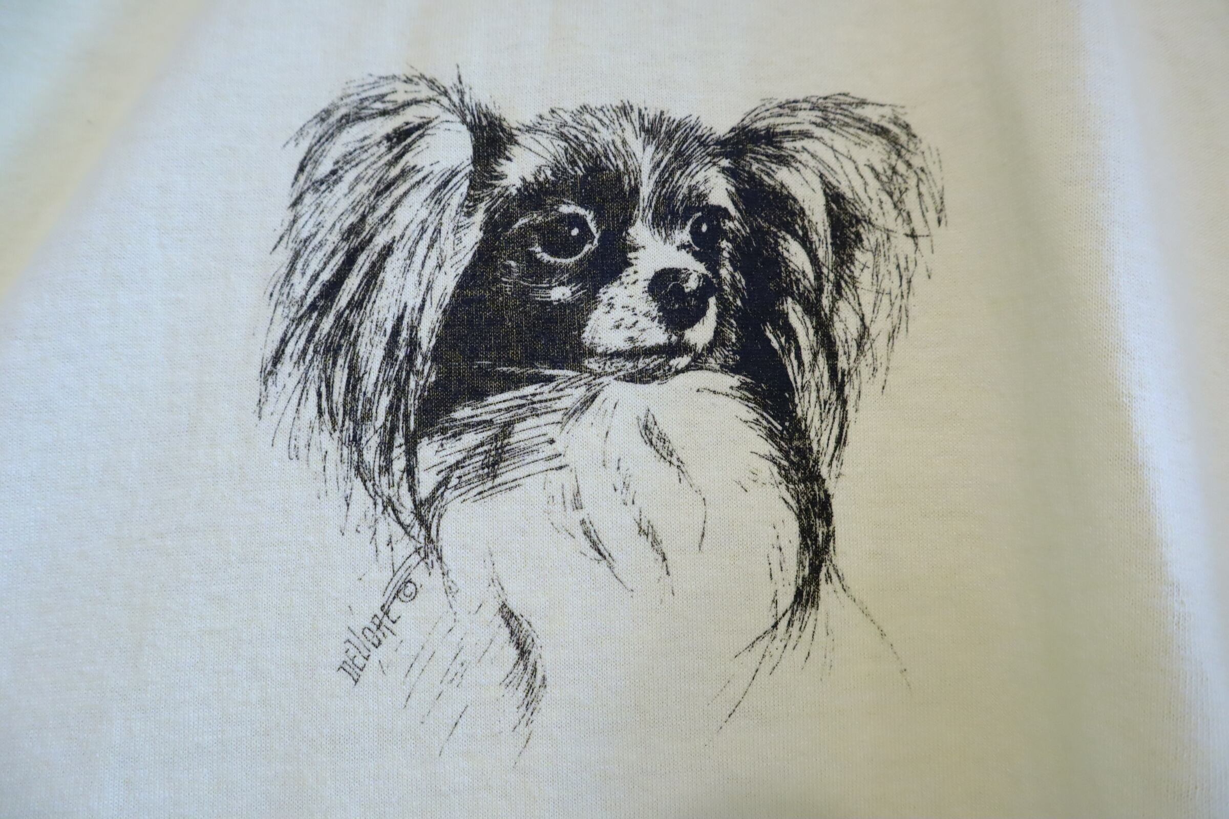 小さめな愛らしいパピヨンのプリントが可愛いJERZEESボディのTシャツ*