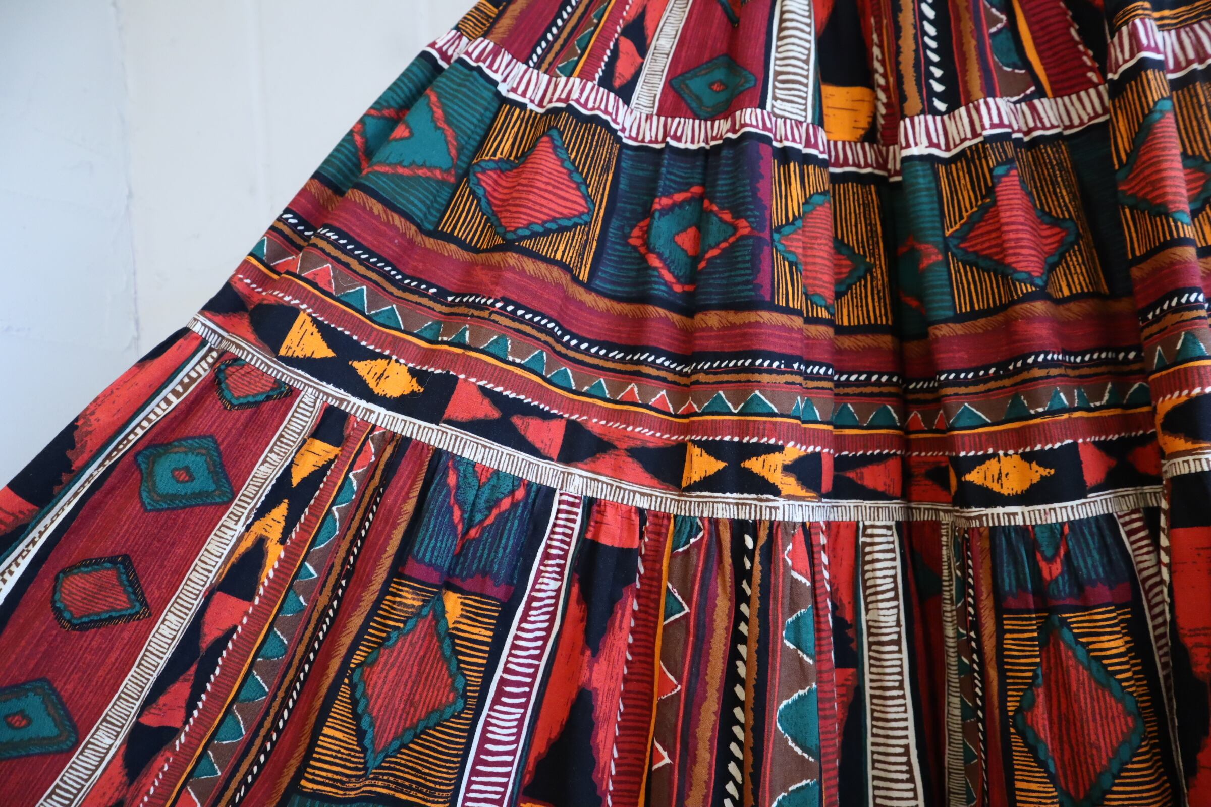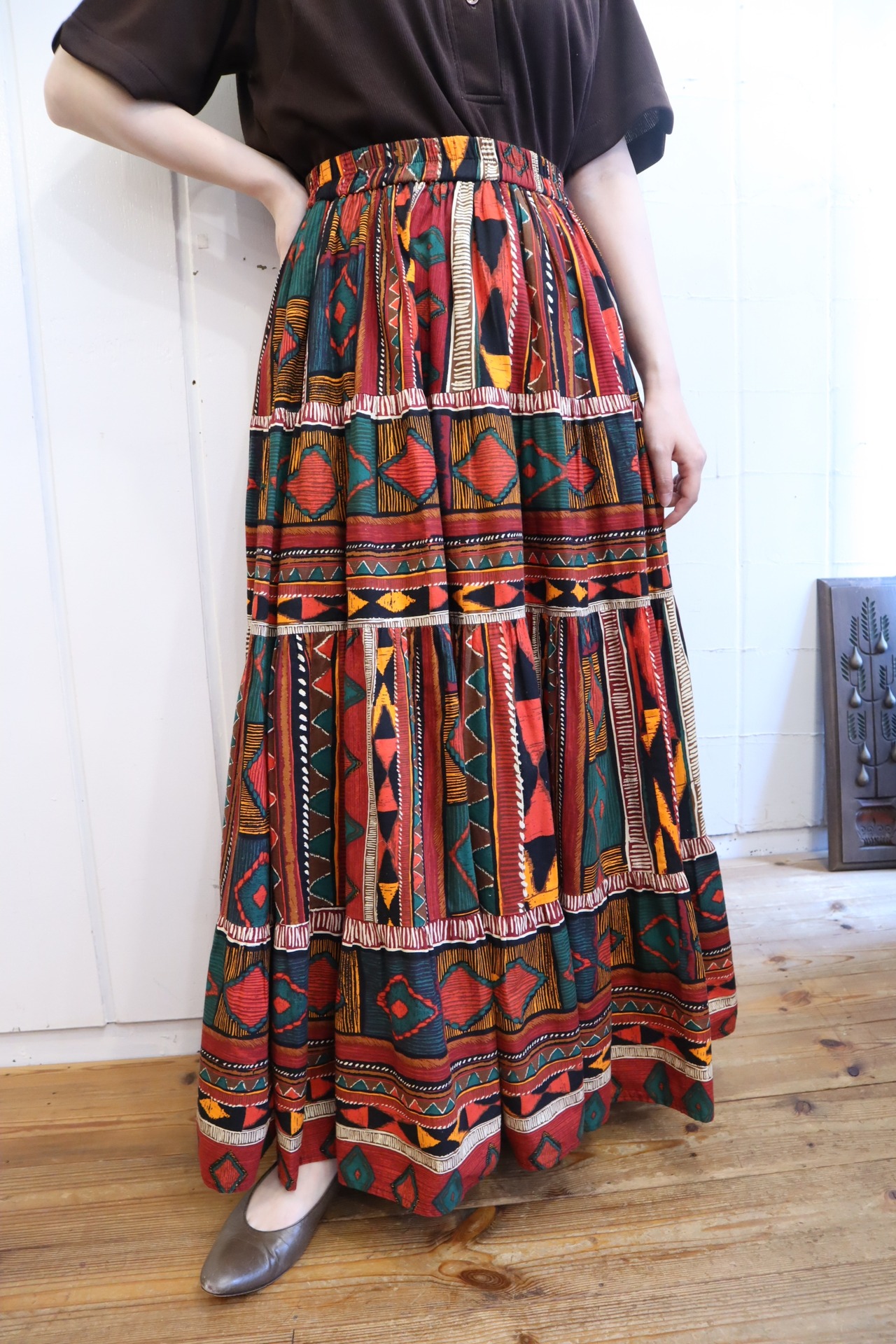 カラフルでありつつ大人っぽいカラーリングが素敵なUSA製のティアードスカート*