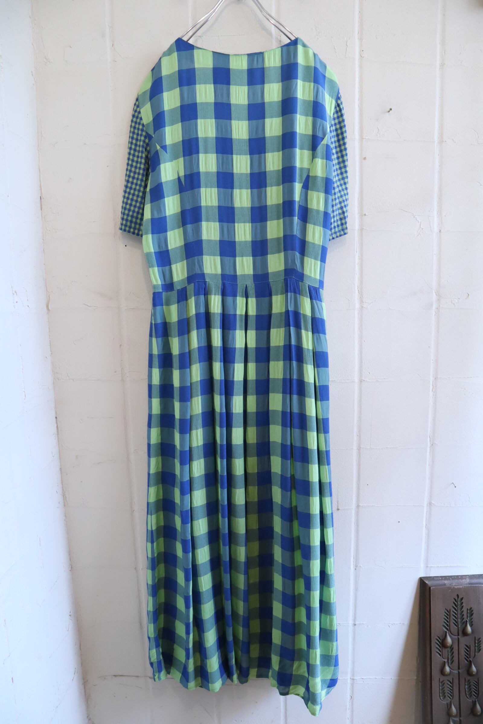 limegreen×blue front button plaid rayon dress dress [l-3122]