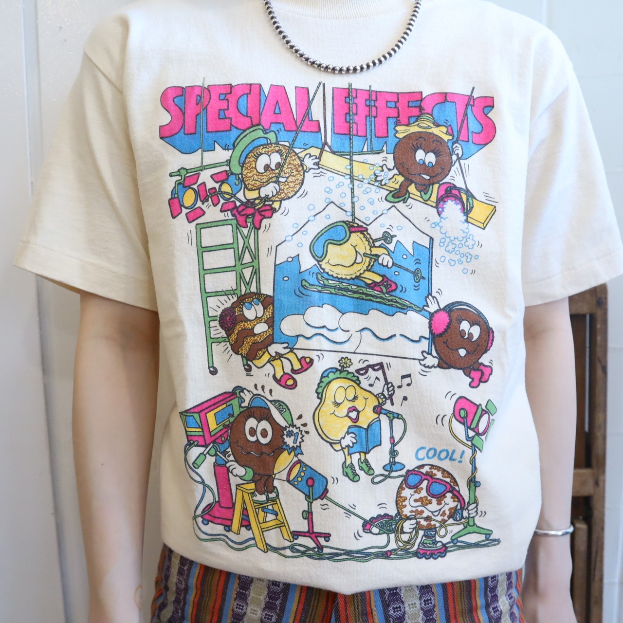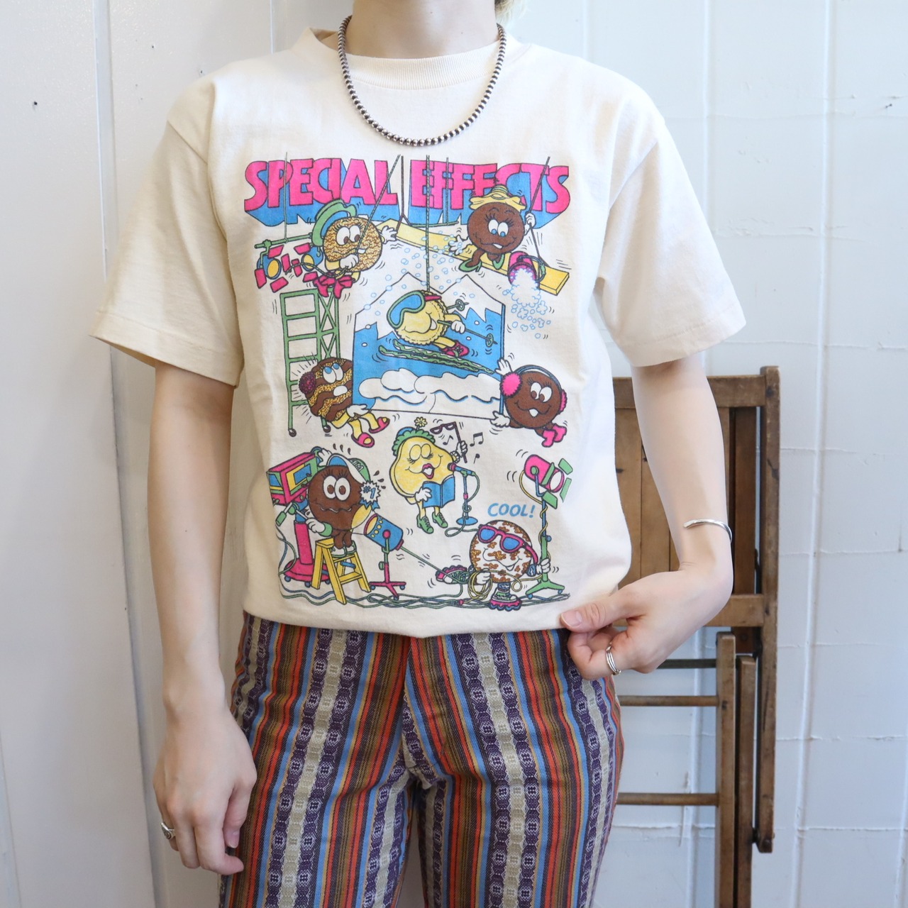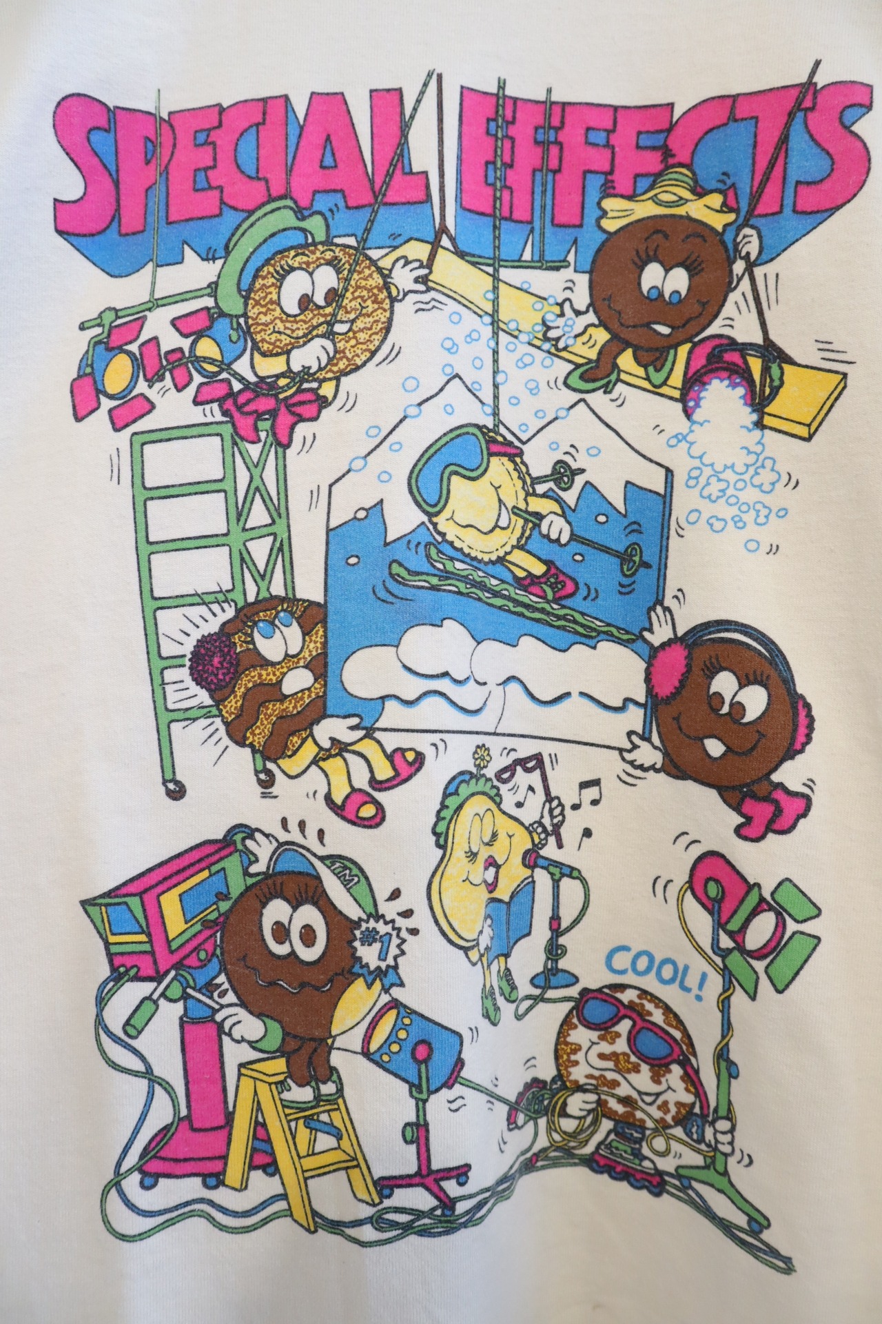90s ivory×pink cookie character print T-shirt [l-3140]