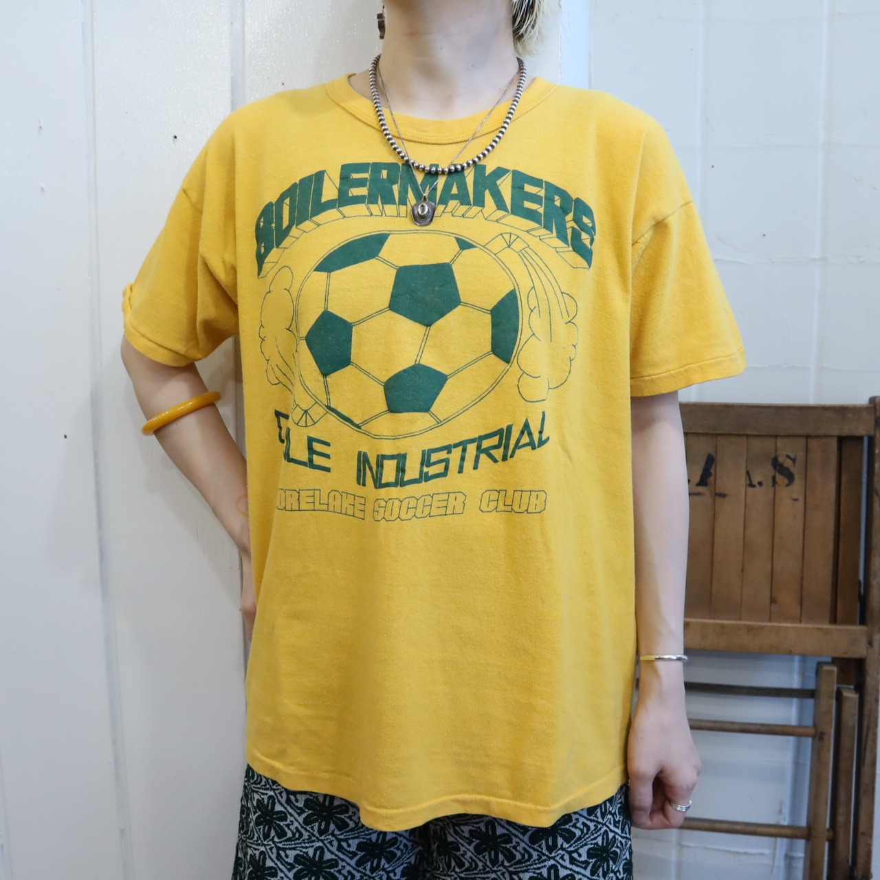 70s Russell athletic yellow×green soccerball T-shirt [l-3142]
