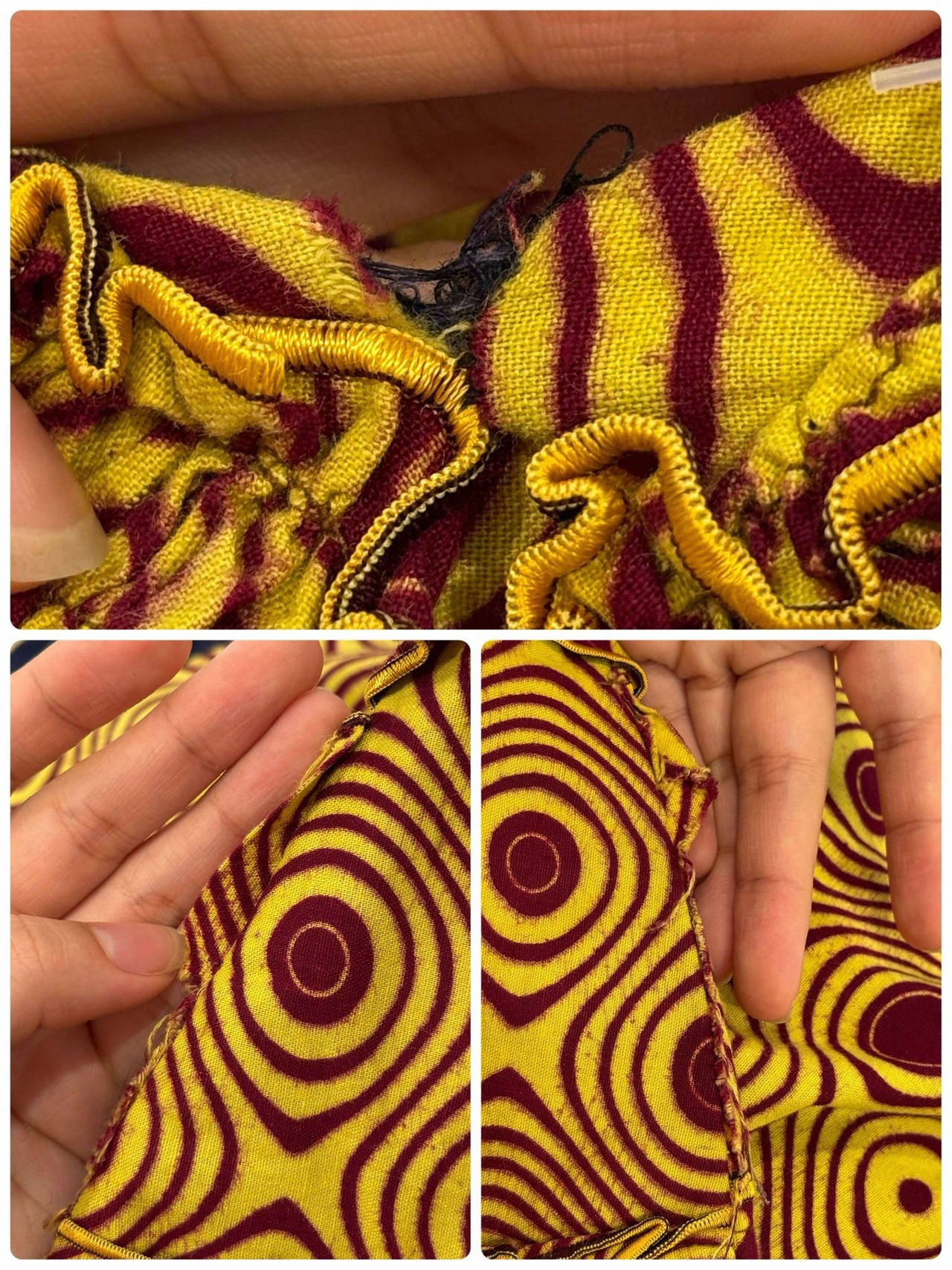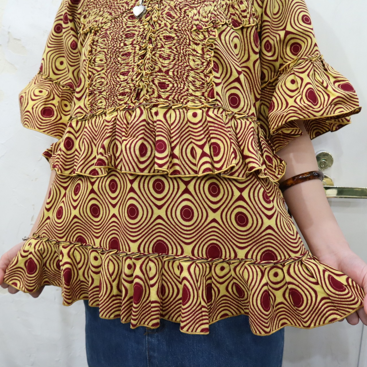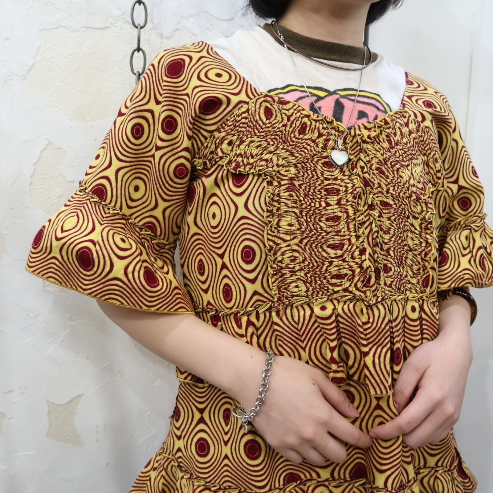 一部糸のホツレやフリル部分をカットしたと思われる切りっぱなしのダメージがございますが、古着の味として着て頂けるかと思われます。