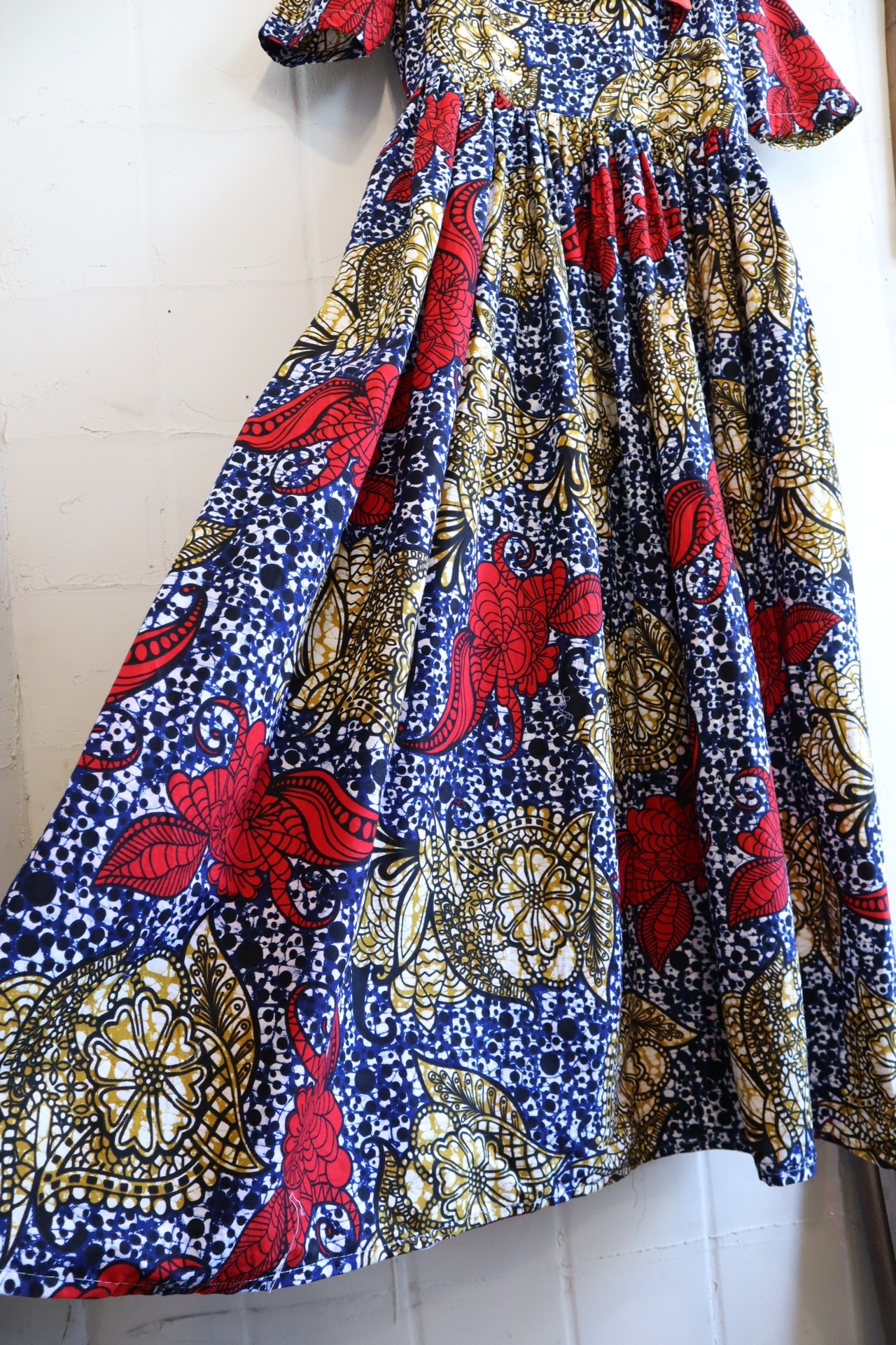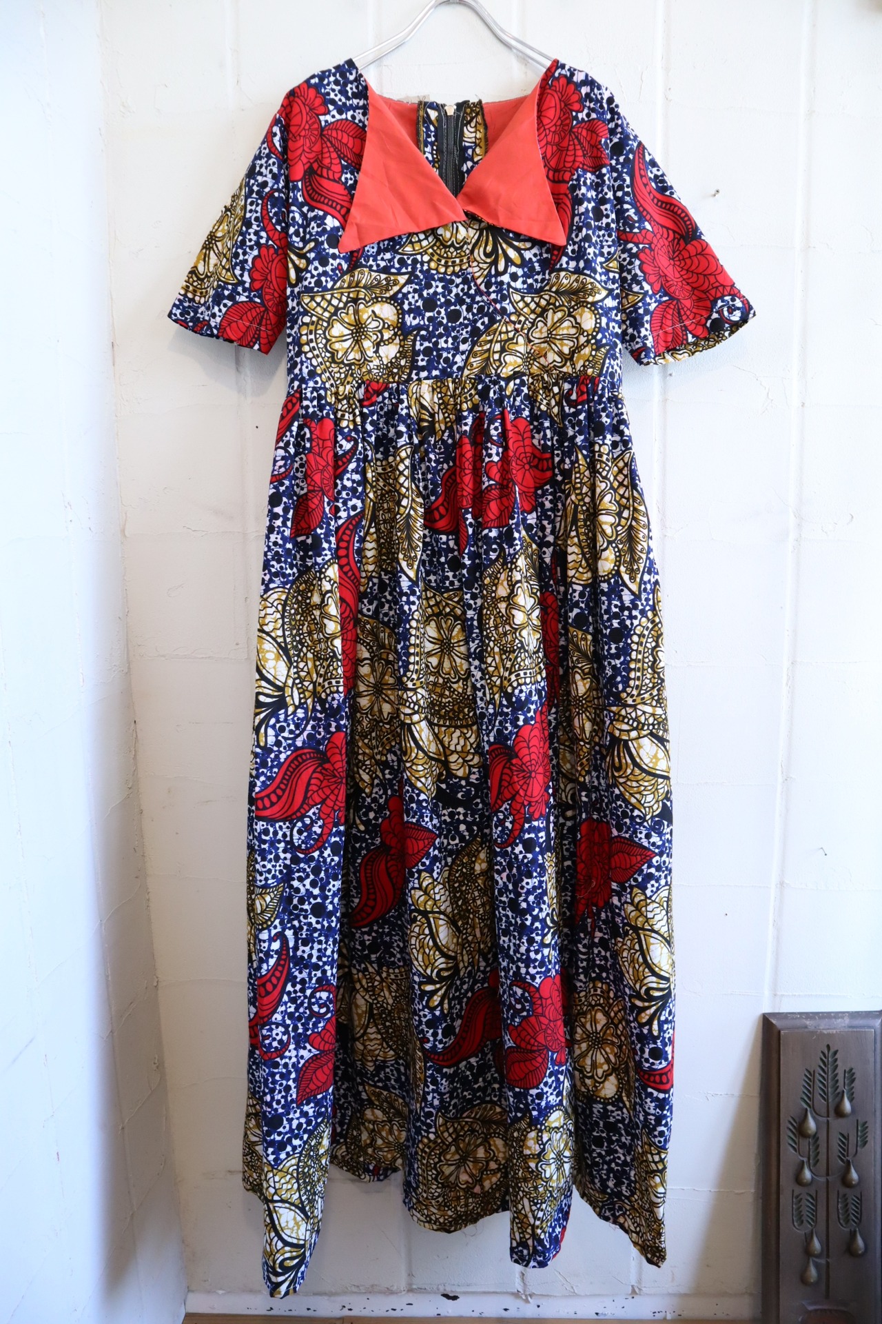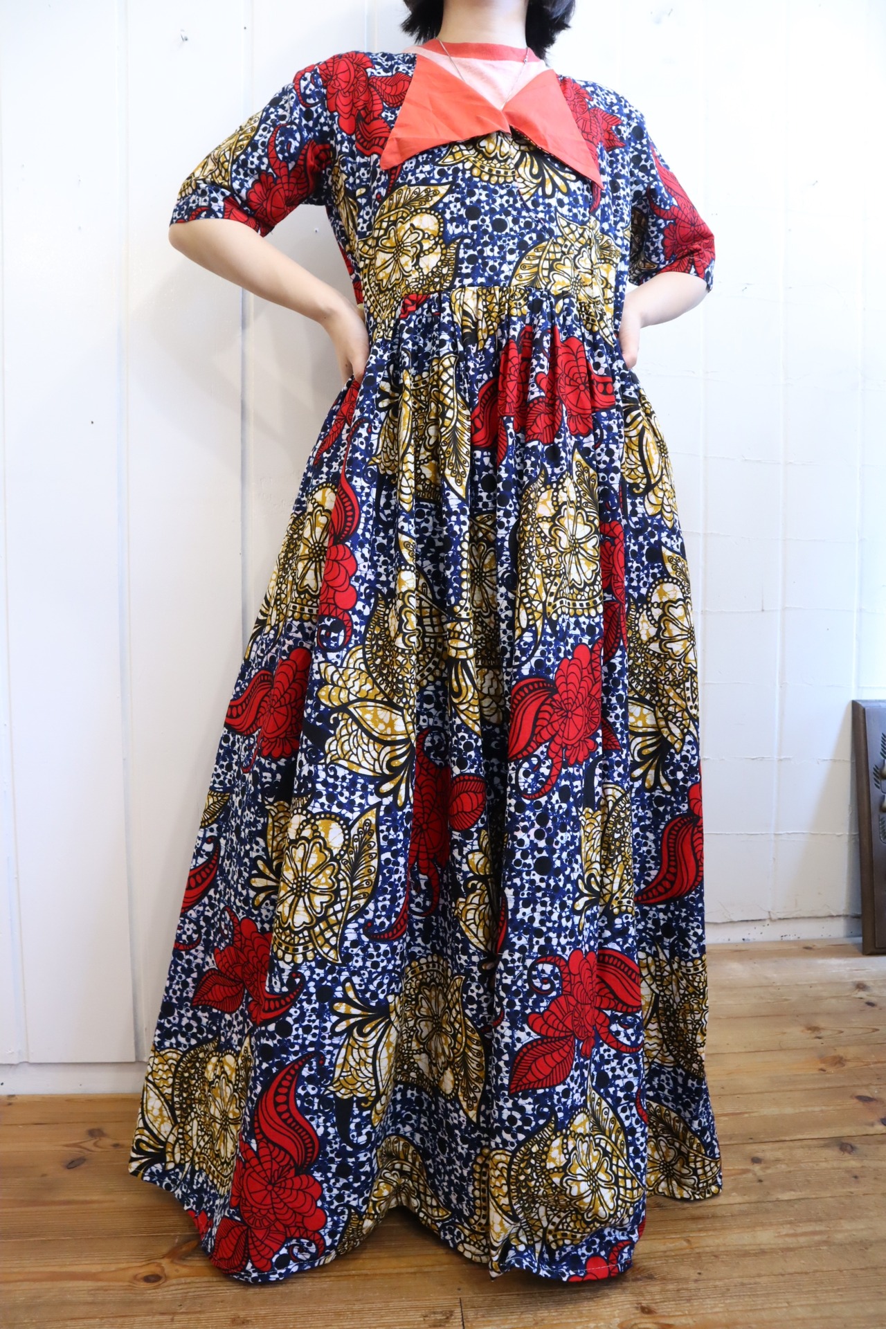 大人っぽいお色味が素敵なアフリカンバテイックドレスです。