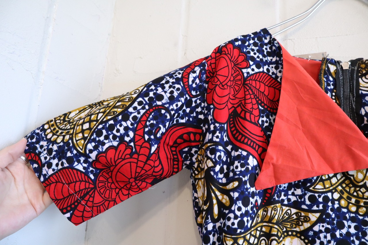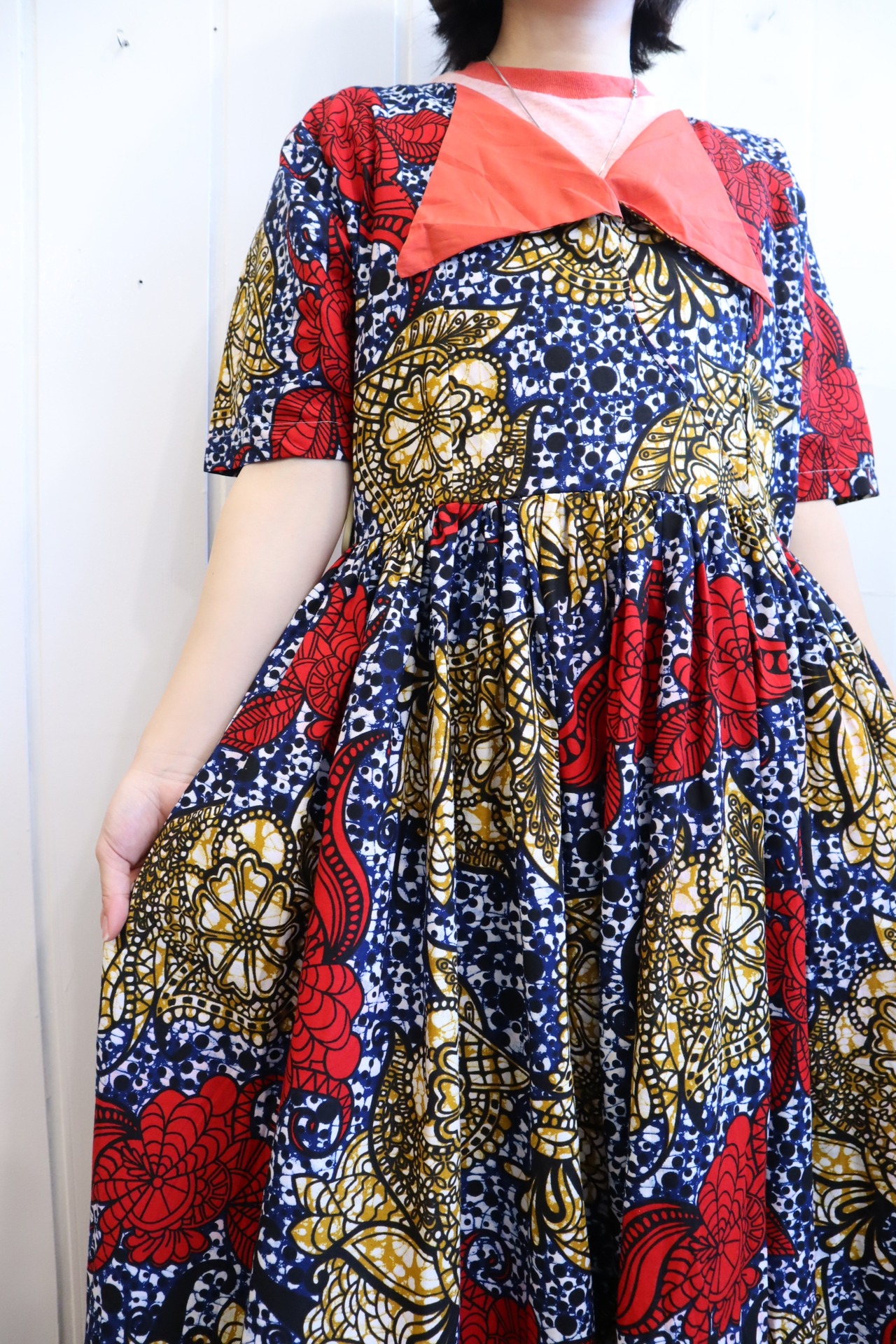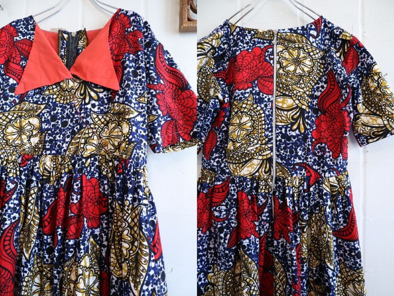 大人っぽいお色味が素敵なアフリカンバテイックドレスです。
