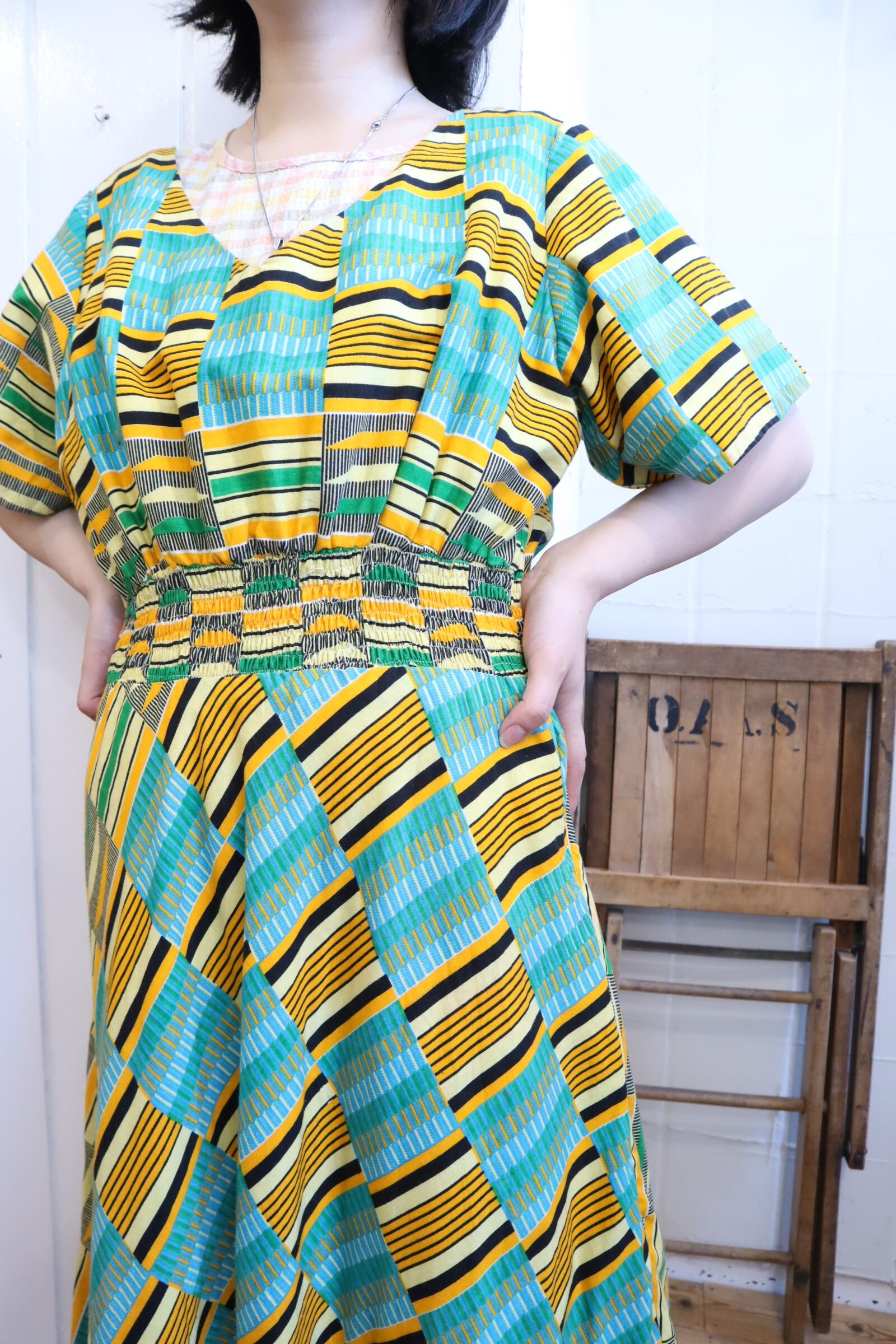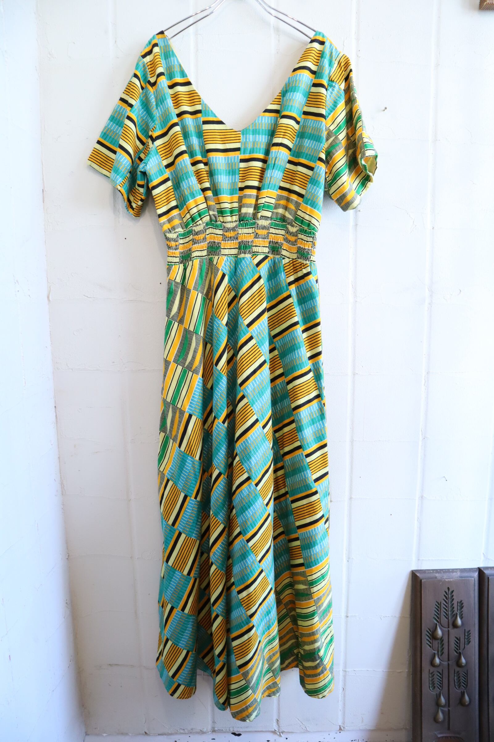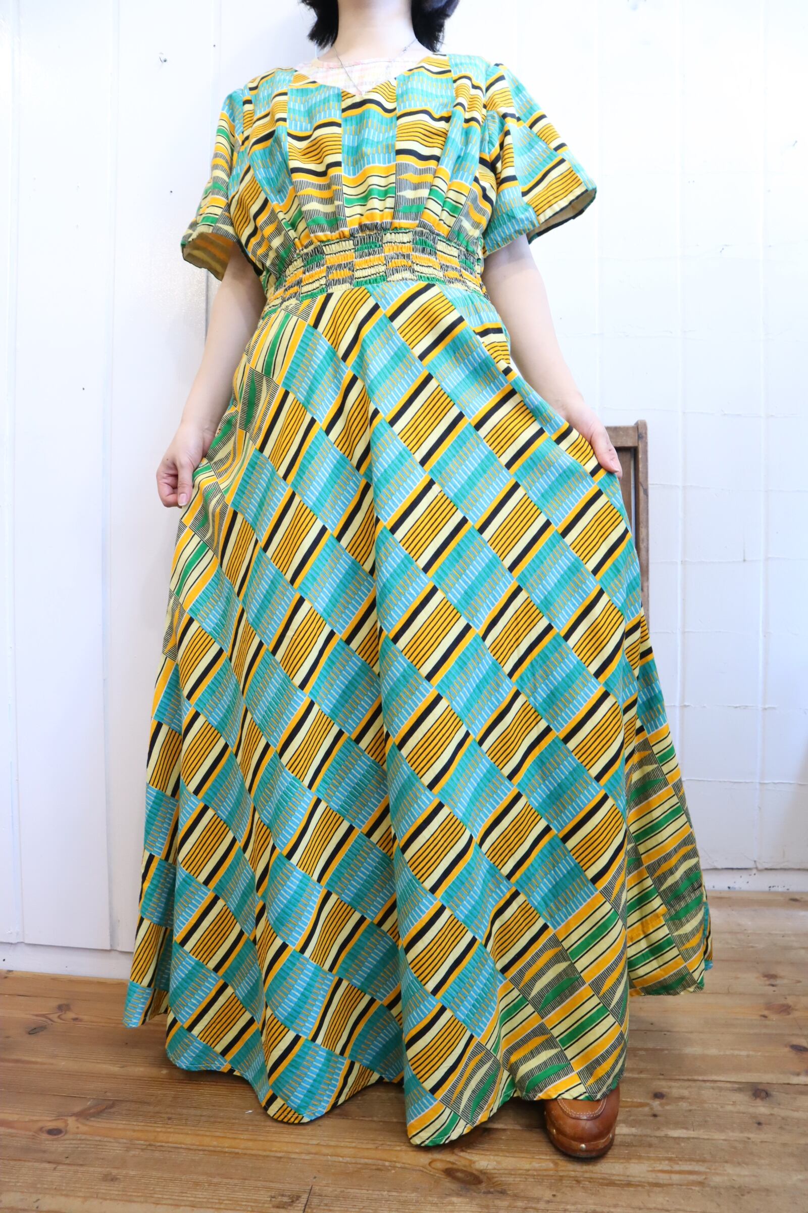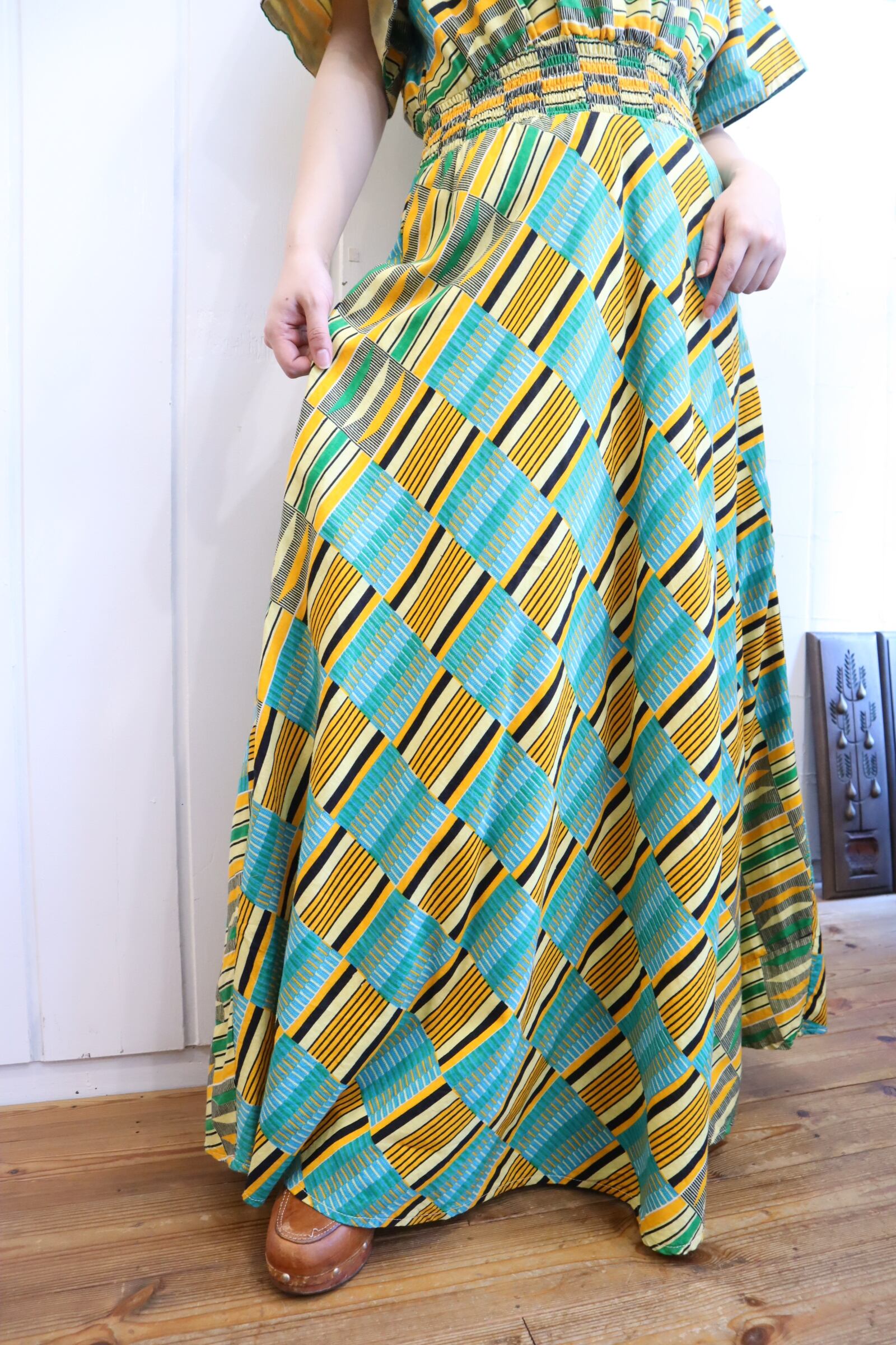 大人可愛いお色味と柄が素敵なアフリカンバティックドレスです♡
