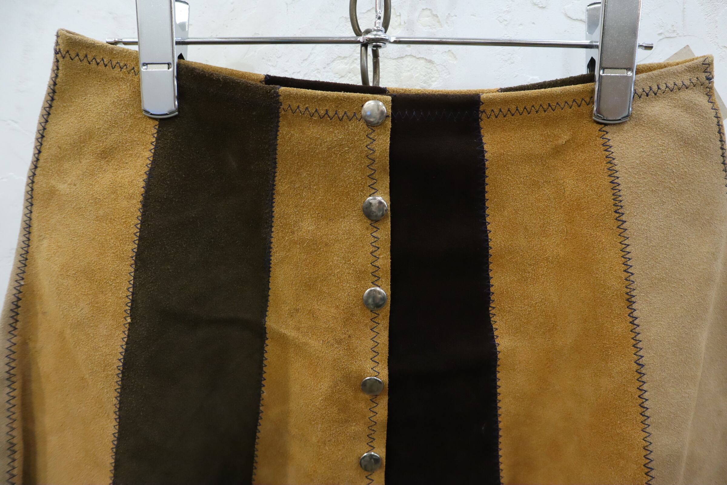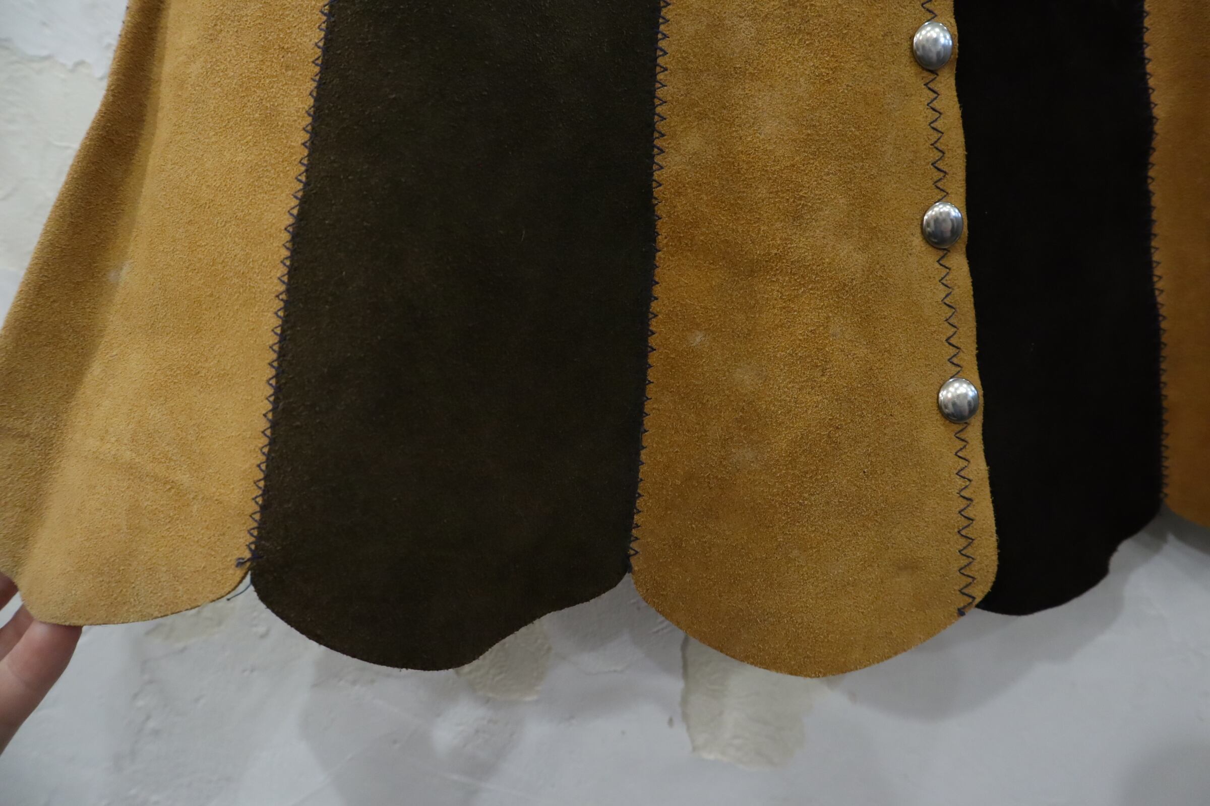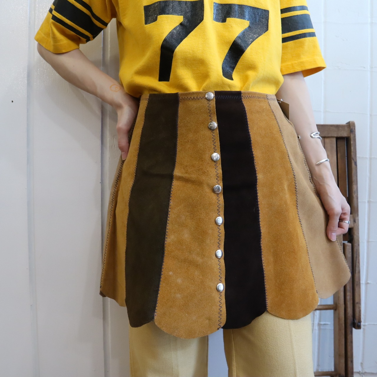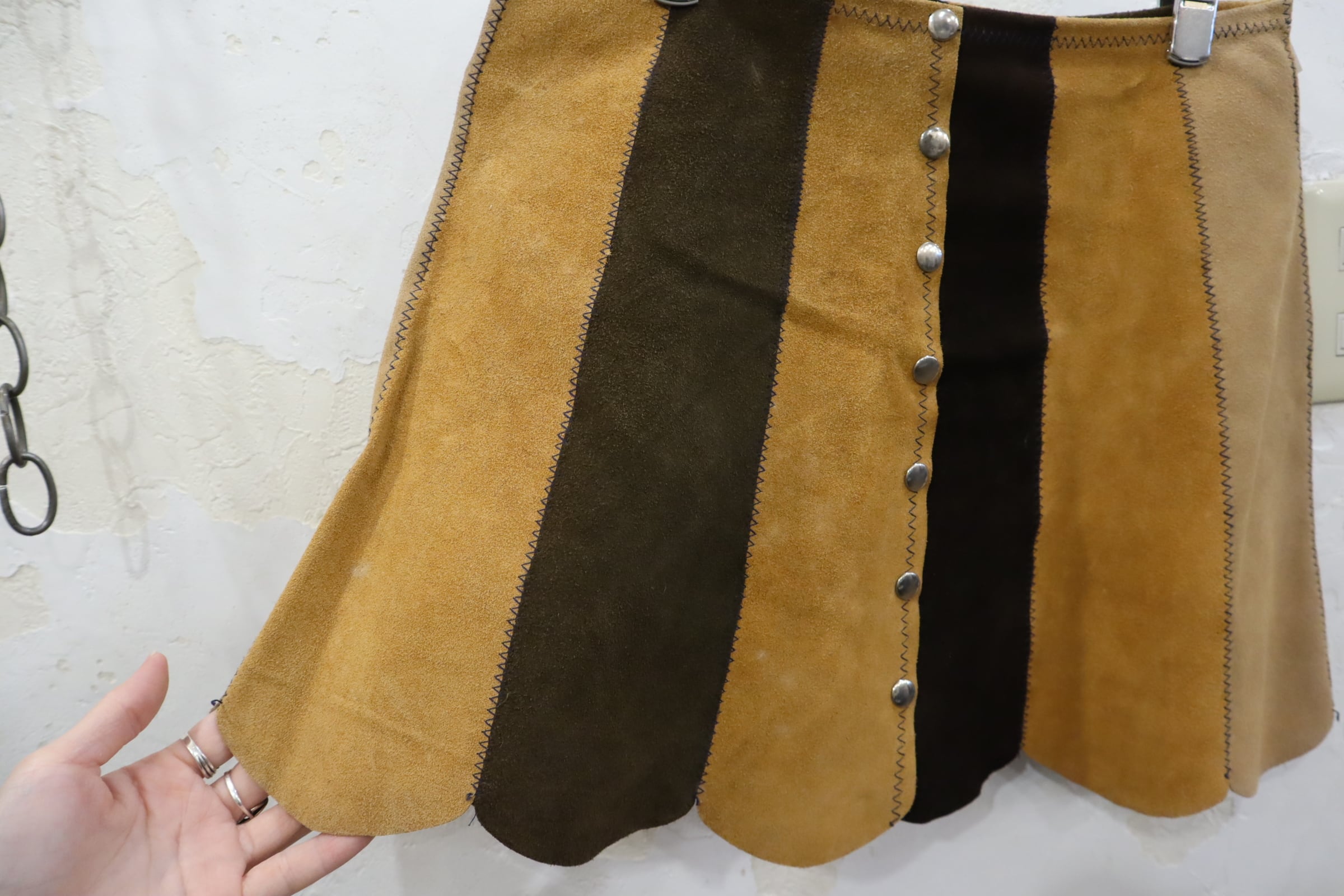 camel×khaki×brown patchwork leather mini skirt [l-3161]