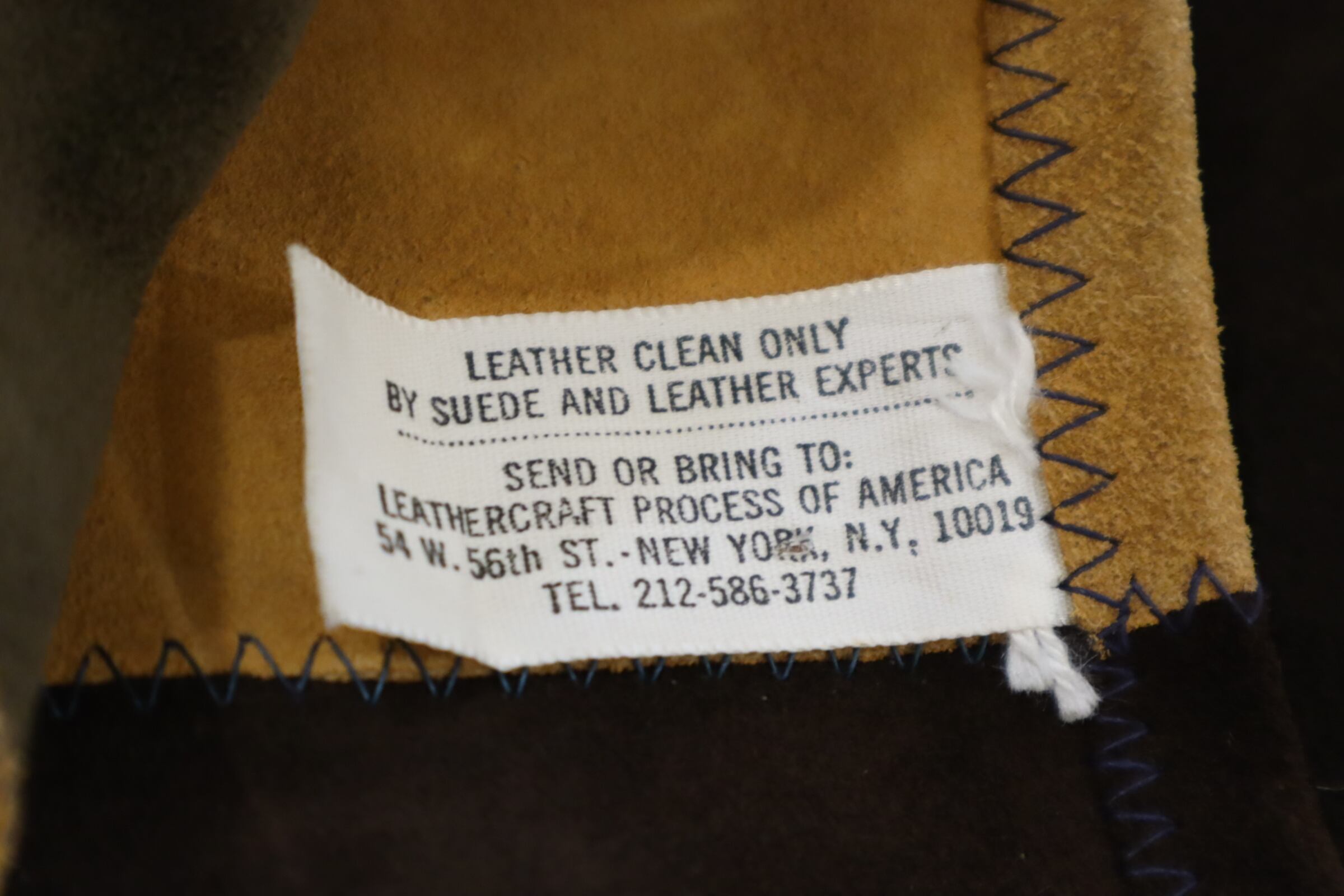 いくつか汚れや色褪せ、レザー素材特有の生地のシワや筋がございますが、古着の味として着て頂けるかと思われます。