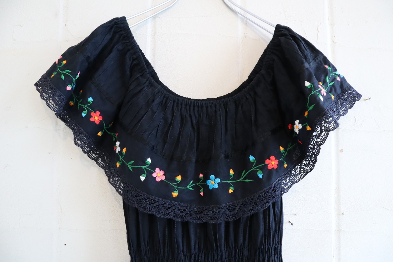 かぎ編みレースと刺繍のザ・メキシカンな組み合わせが可愛いドレス。