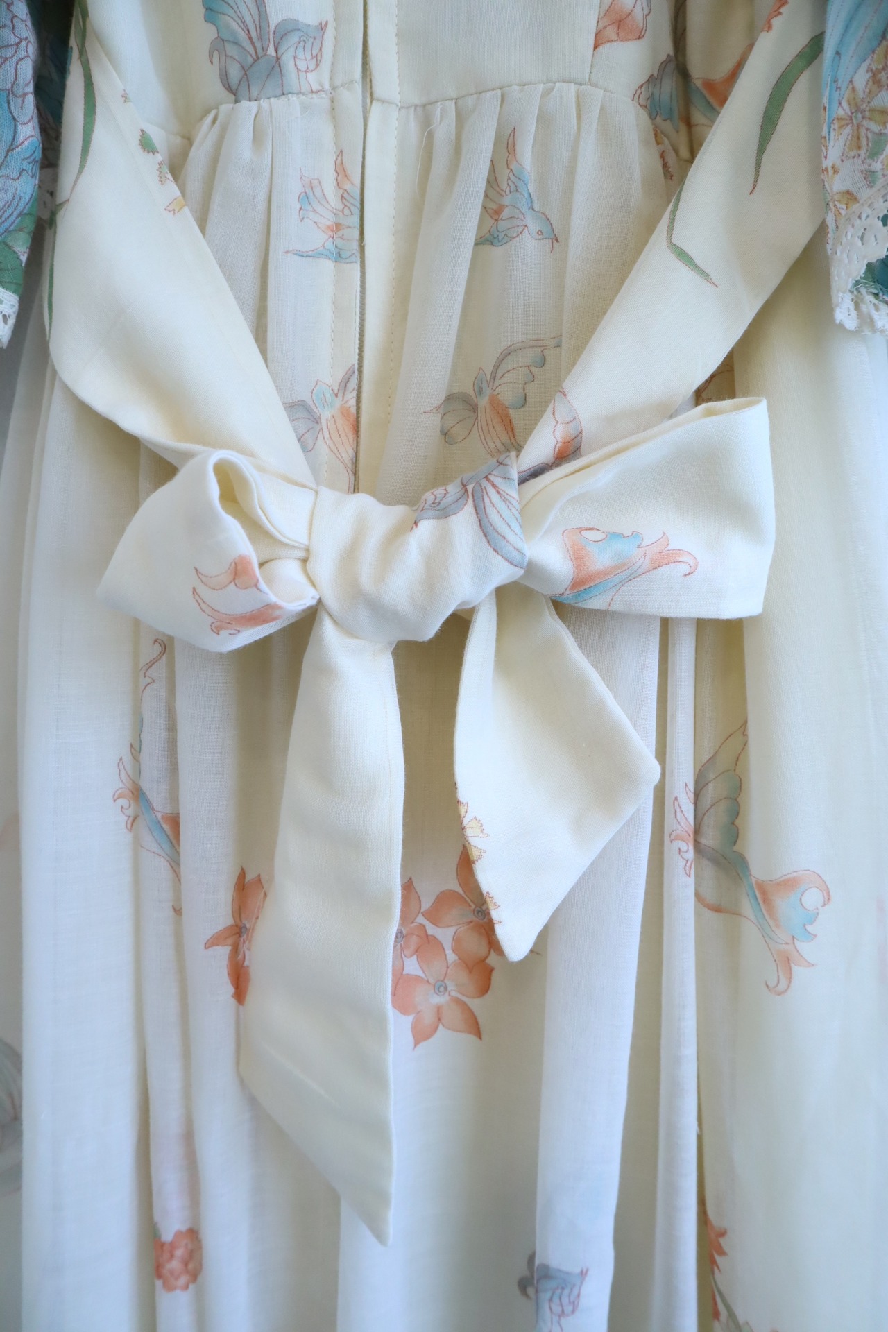裾から広がるテキスタイルがとっても可愛いですし、お花や葉っぱのようにも見える鳥の柄もユーモアがあって良いです。