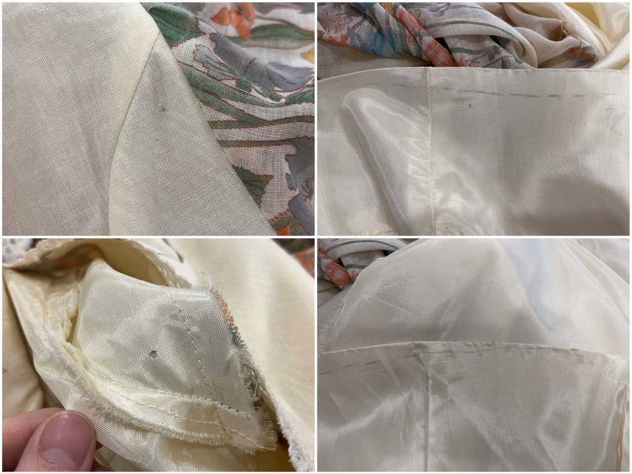 また裏地の裾に汚れ・裏地に小穴が開いており表側からも分かりますが、こちらもあまり気にならない程度かと思います。