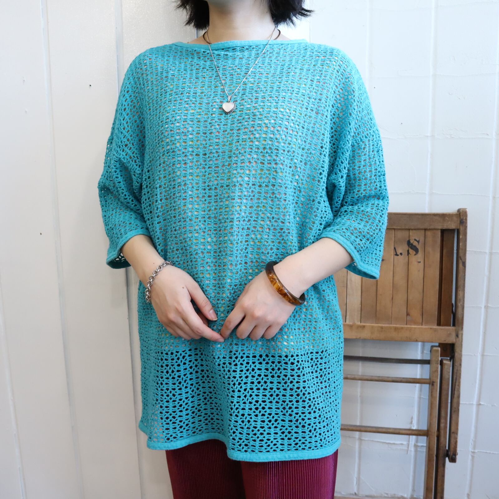 ターコイズブルーのお色味が可愛いメッシュトップス*