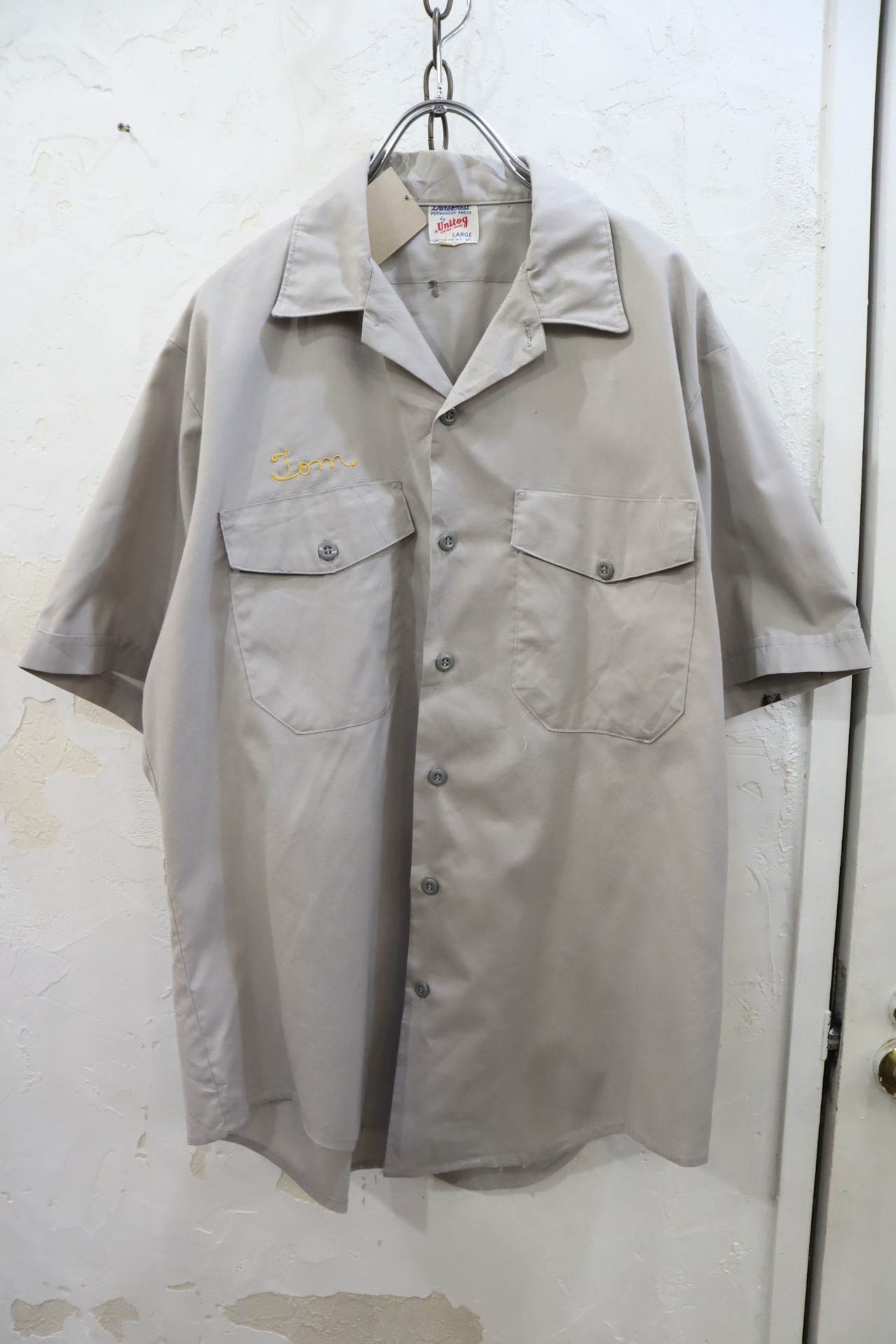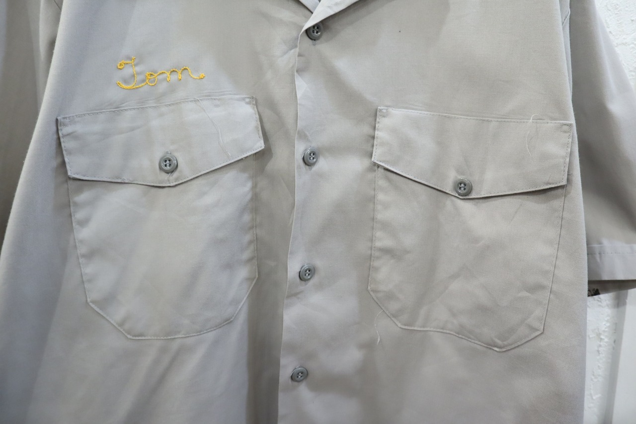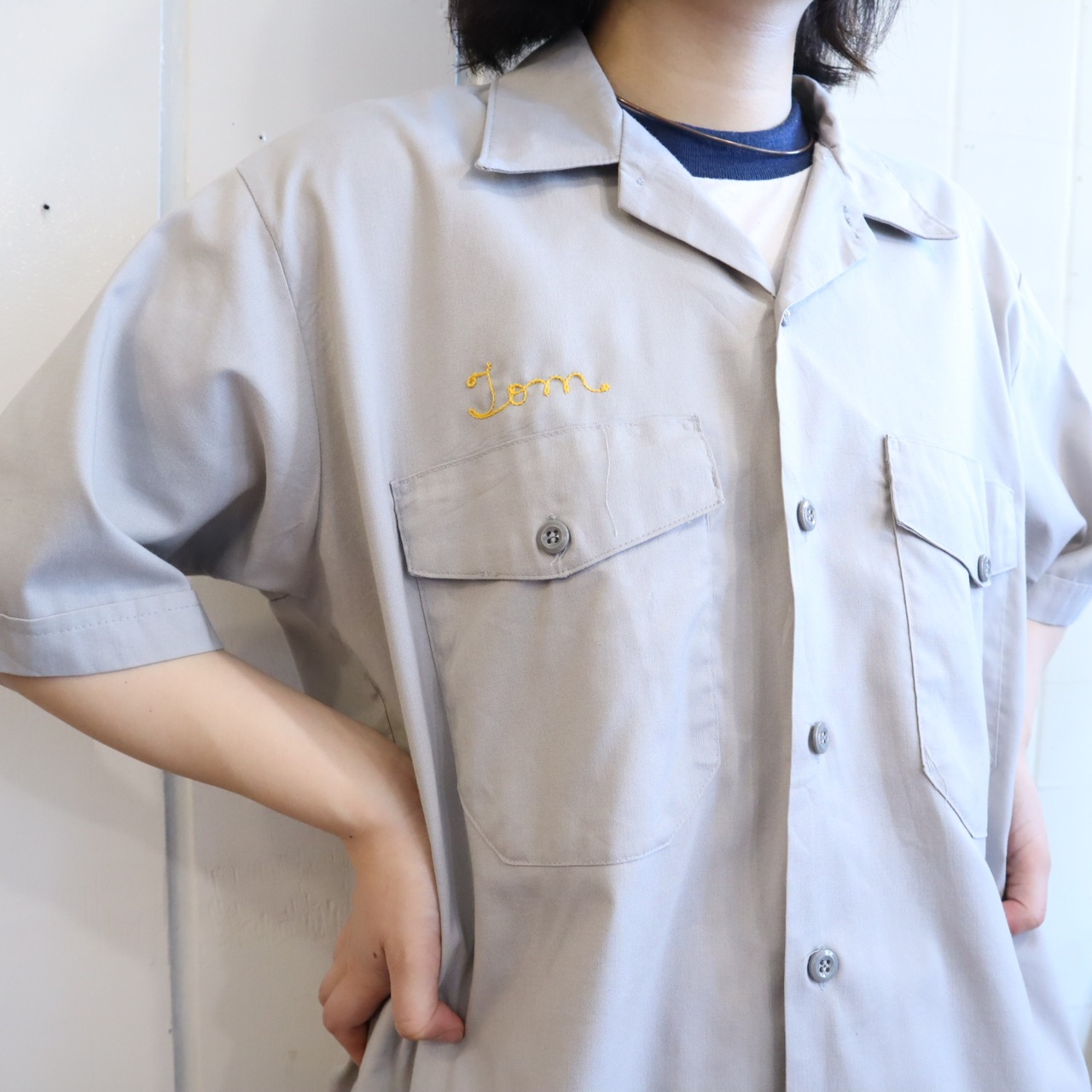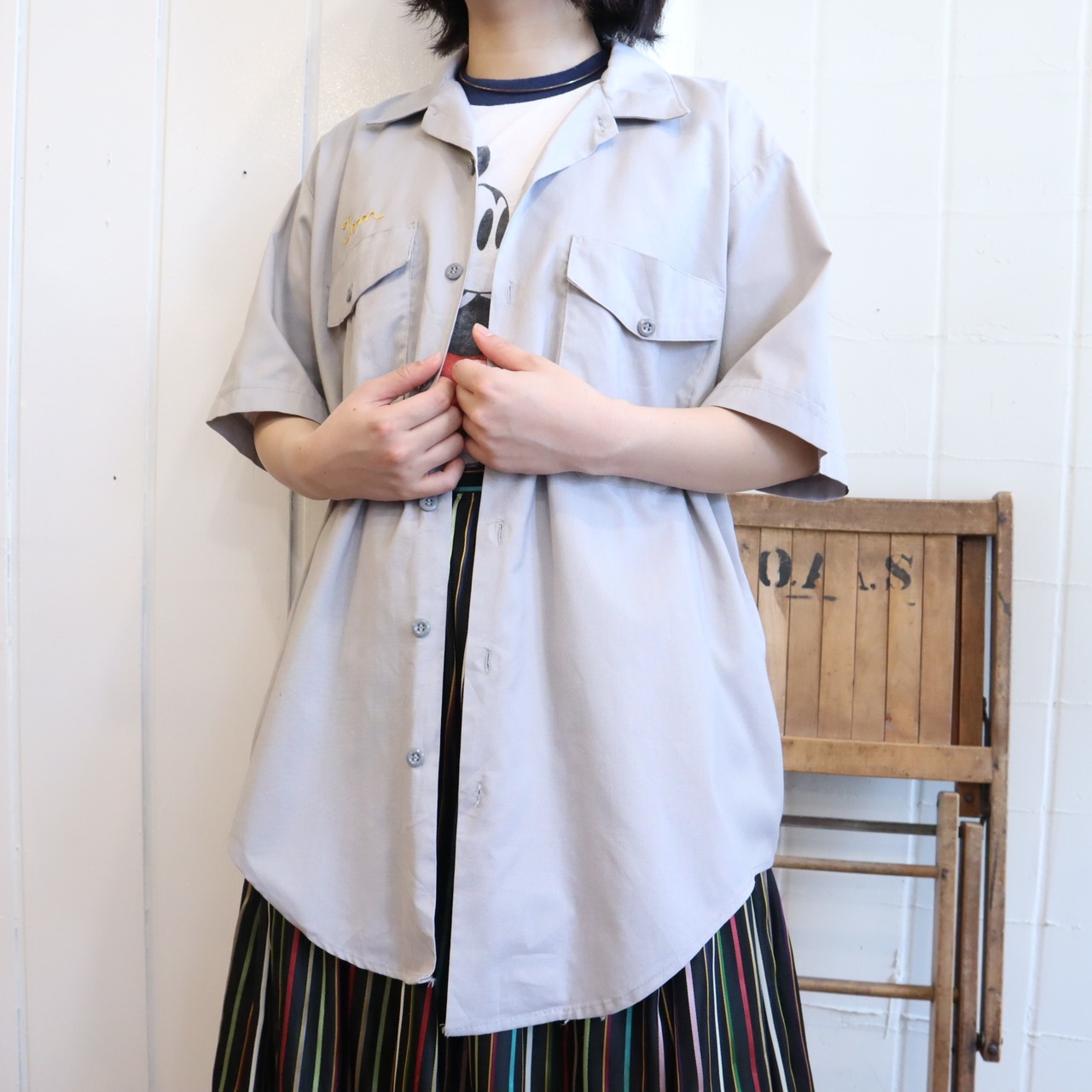 70-80s lightgray×yellow embroidery work shirt [k-3181]