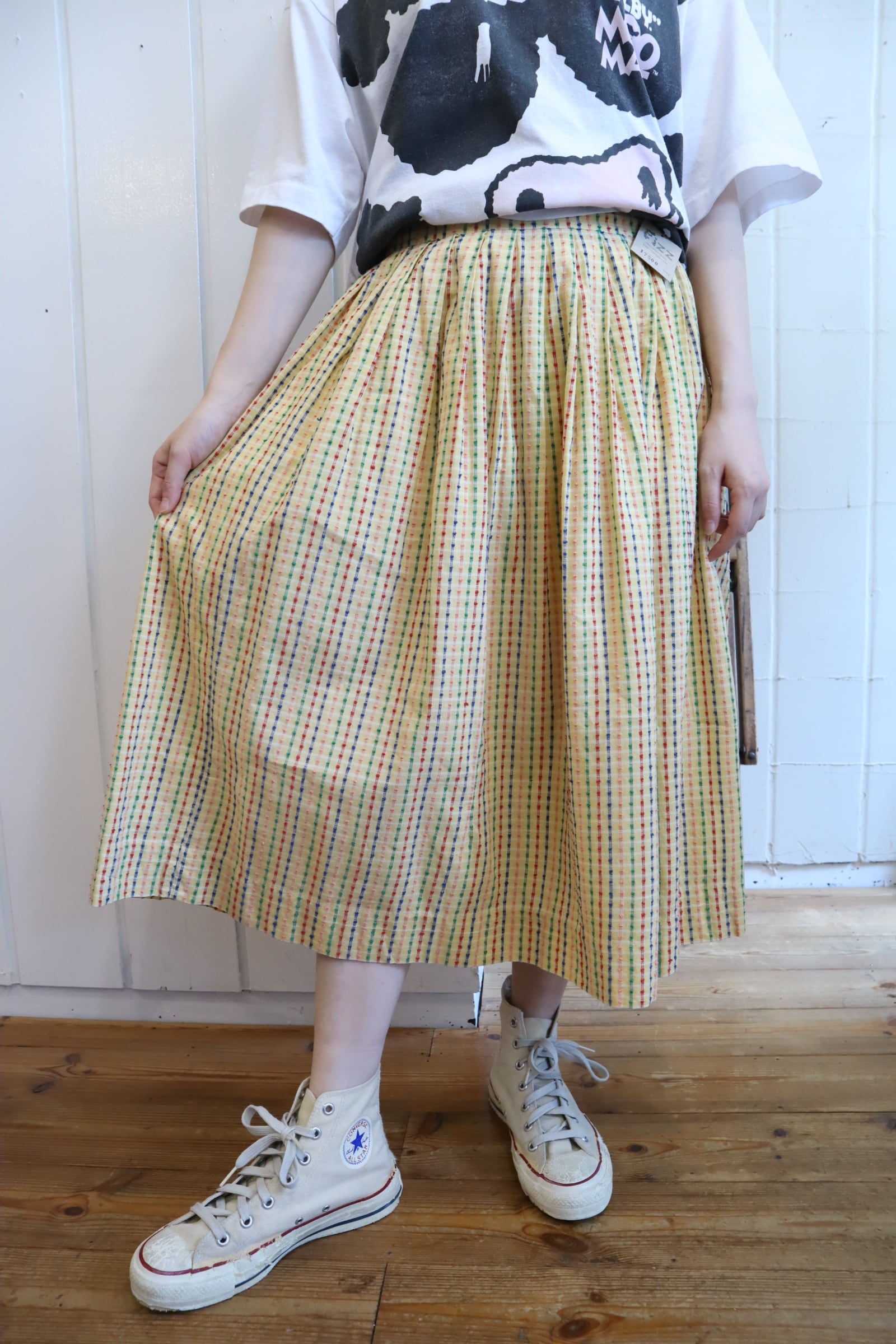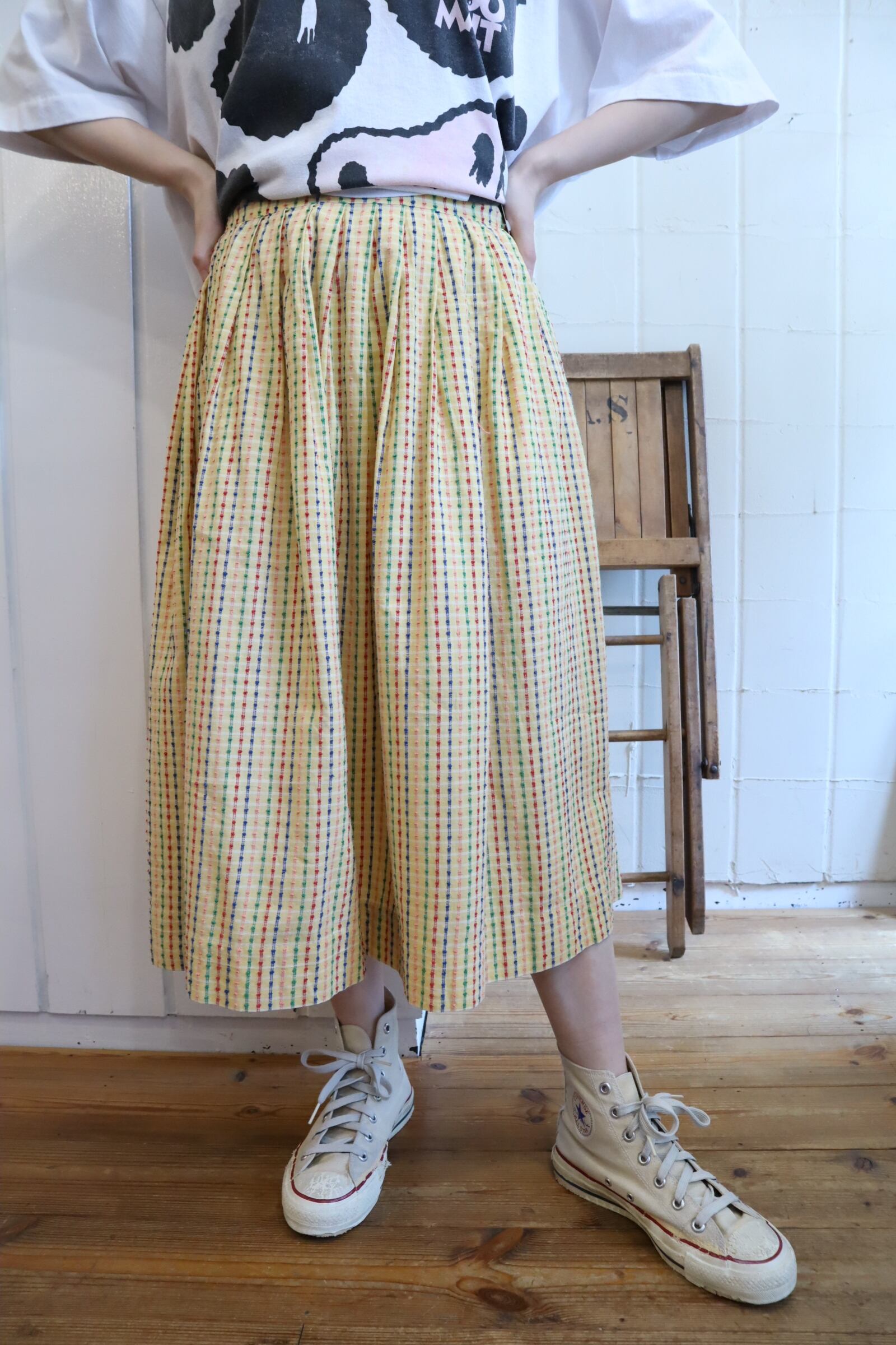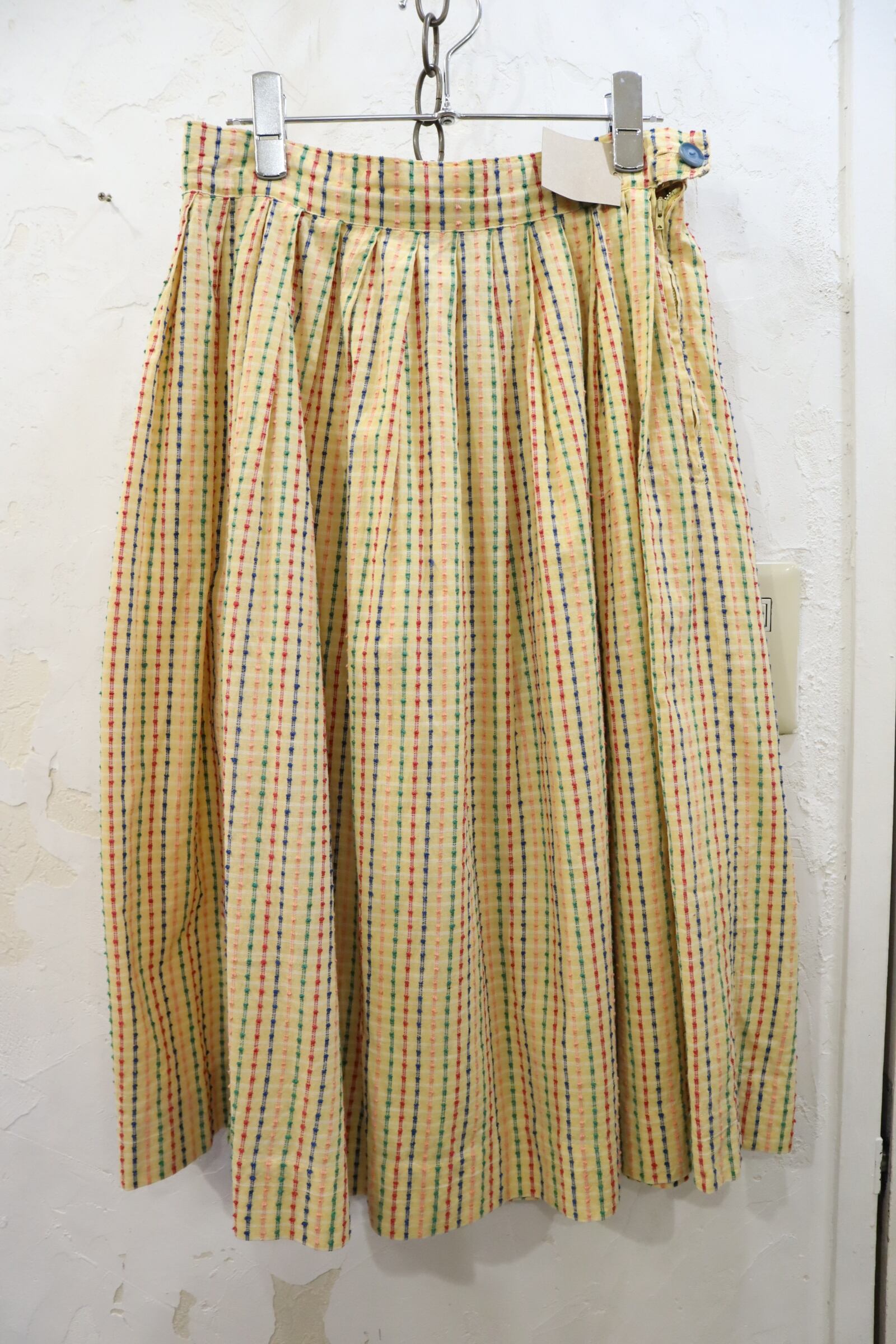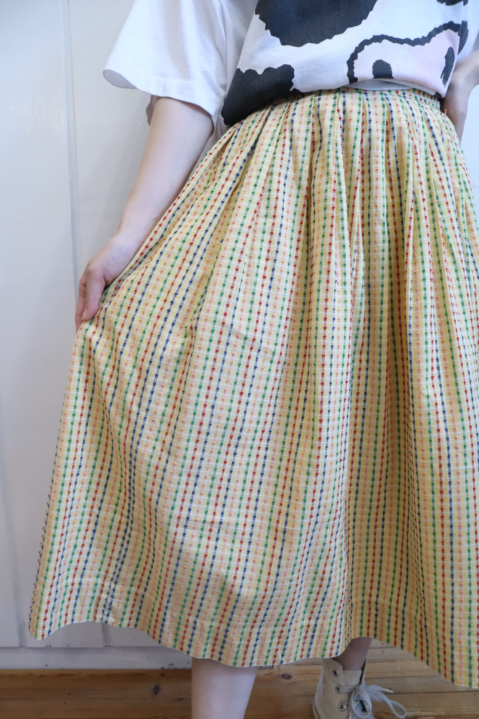 50s-60s yellow×colorful stripe embroidery skirt [l-3191]