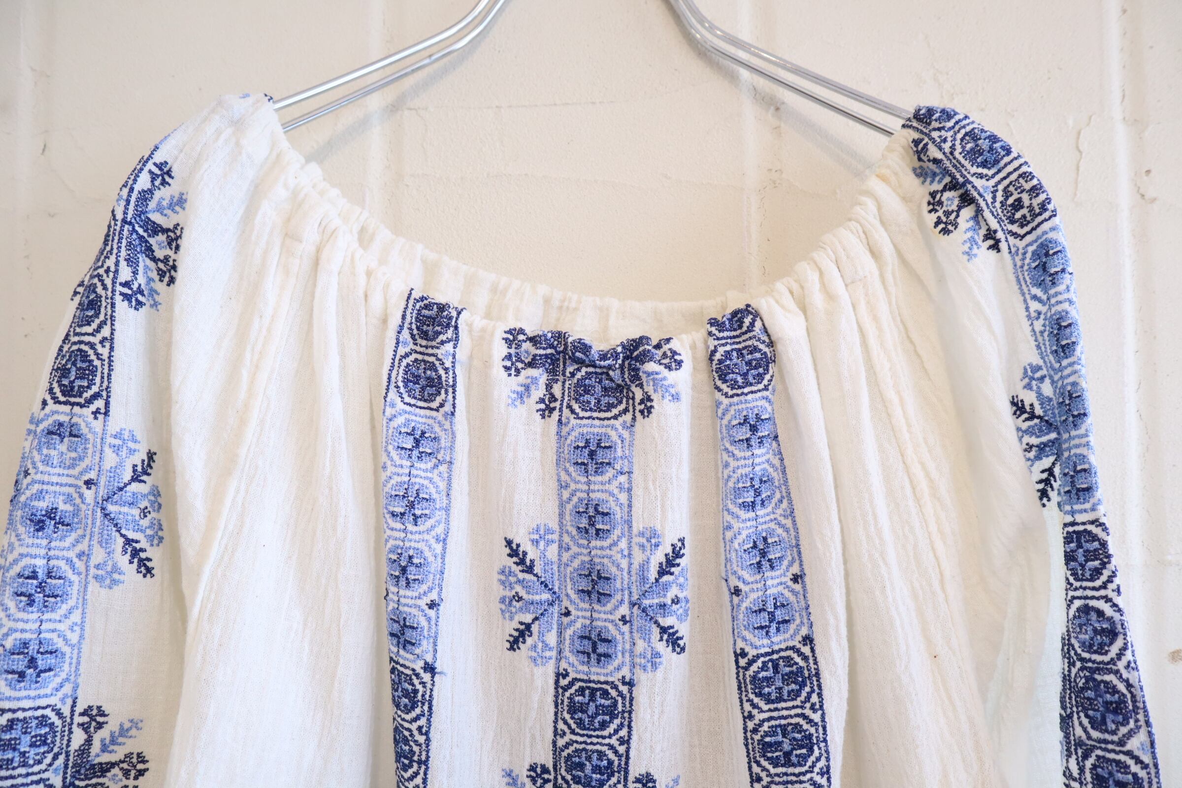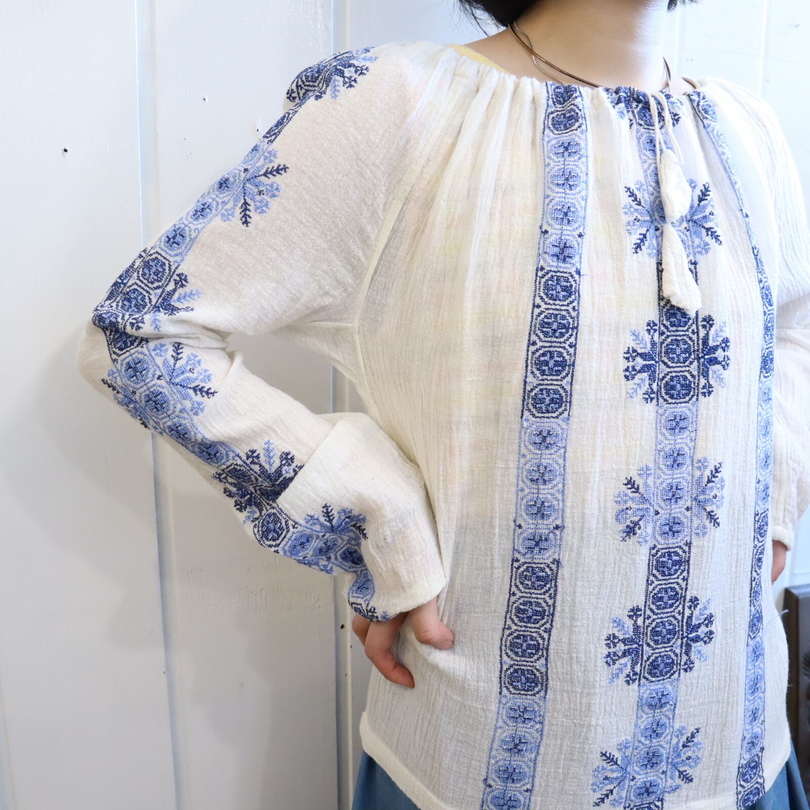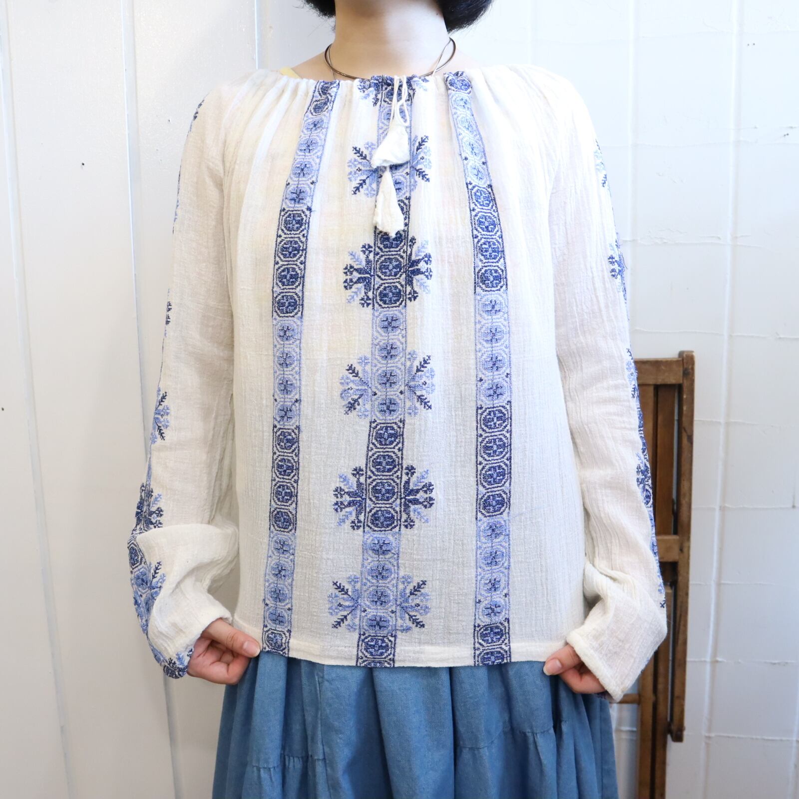 濃淡のあるブルーの刺繍が素敵なルーマニア刺繍チュニック*
