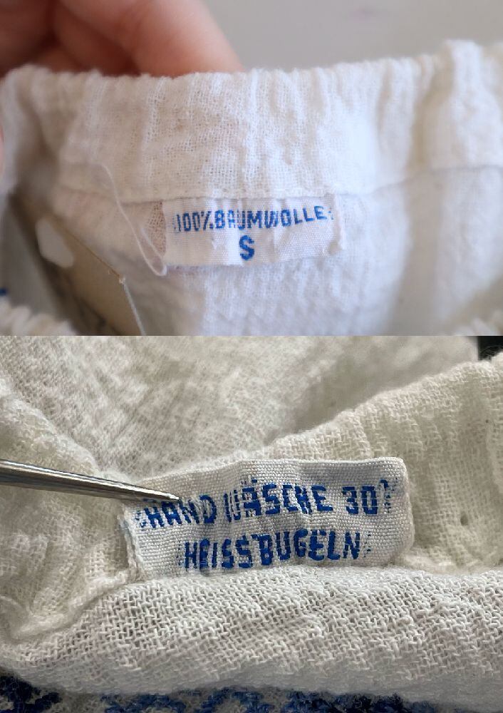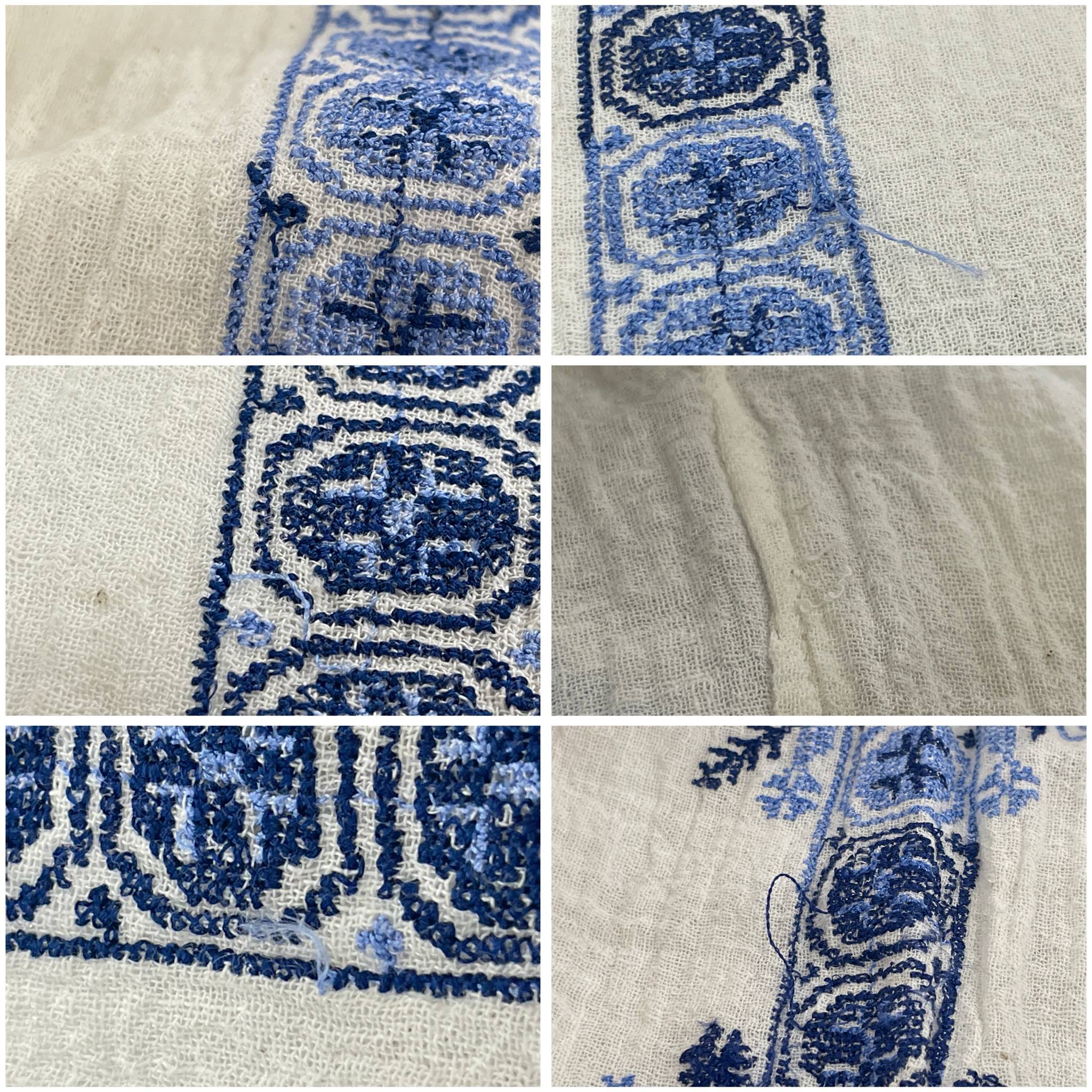 いくつかシミ・素材特有の他繊維の混ざり・刺繍のホツレ・ツレがございますが、古着の味として着て頂けるかと思われます。