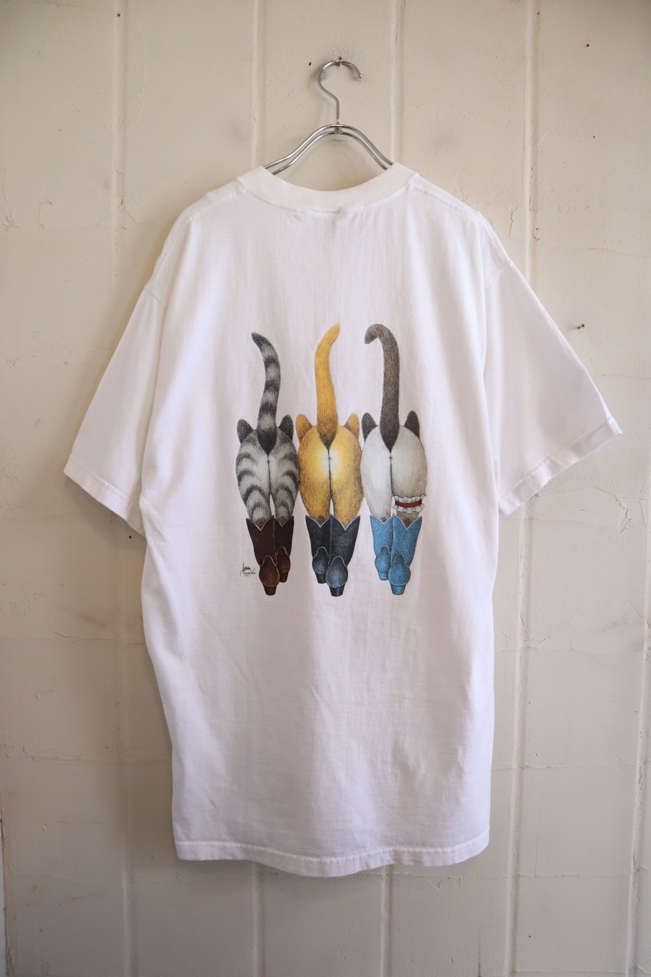 ネイティブ感のあるネコちゃん3匹が特徴的なプリントTシャツ。