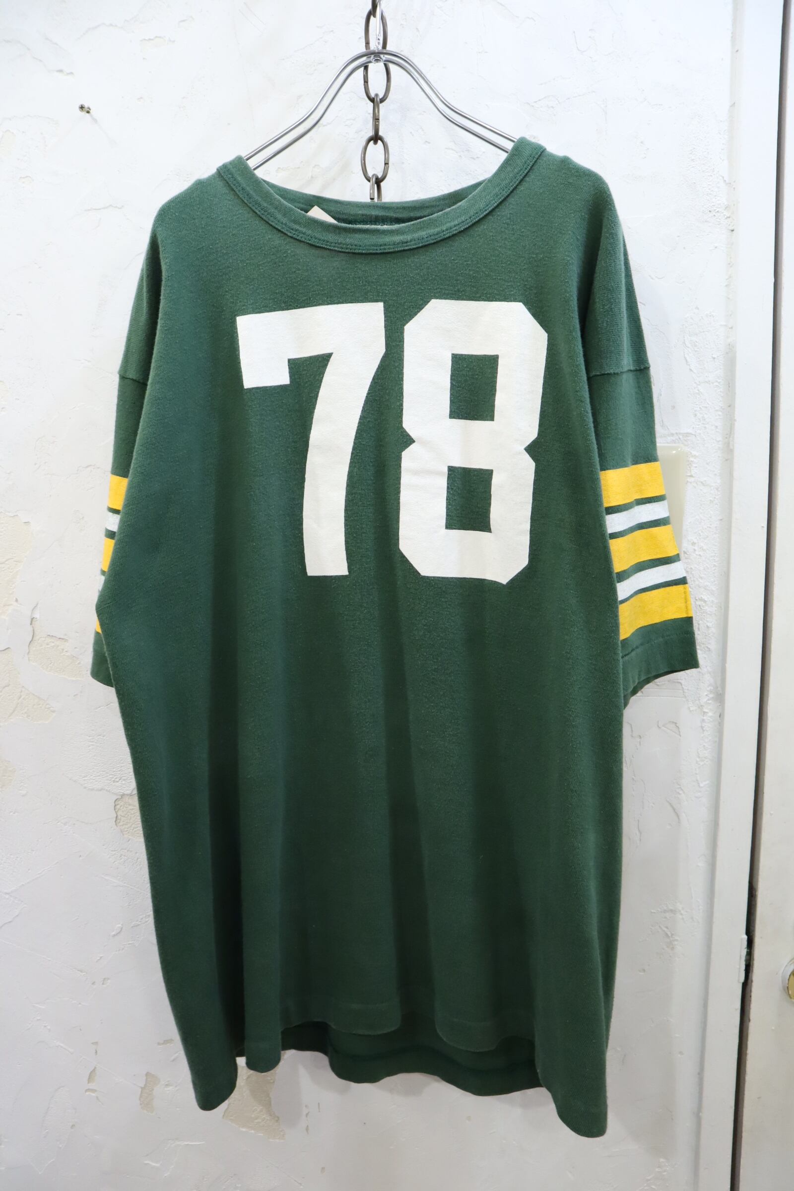 70s-80s Champion green×white×yellow numbering print T-shirt [k-3200]