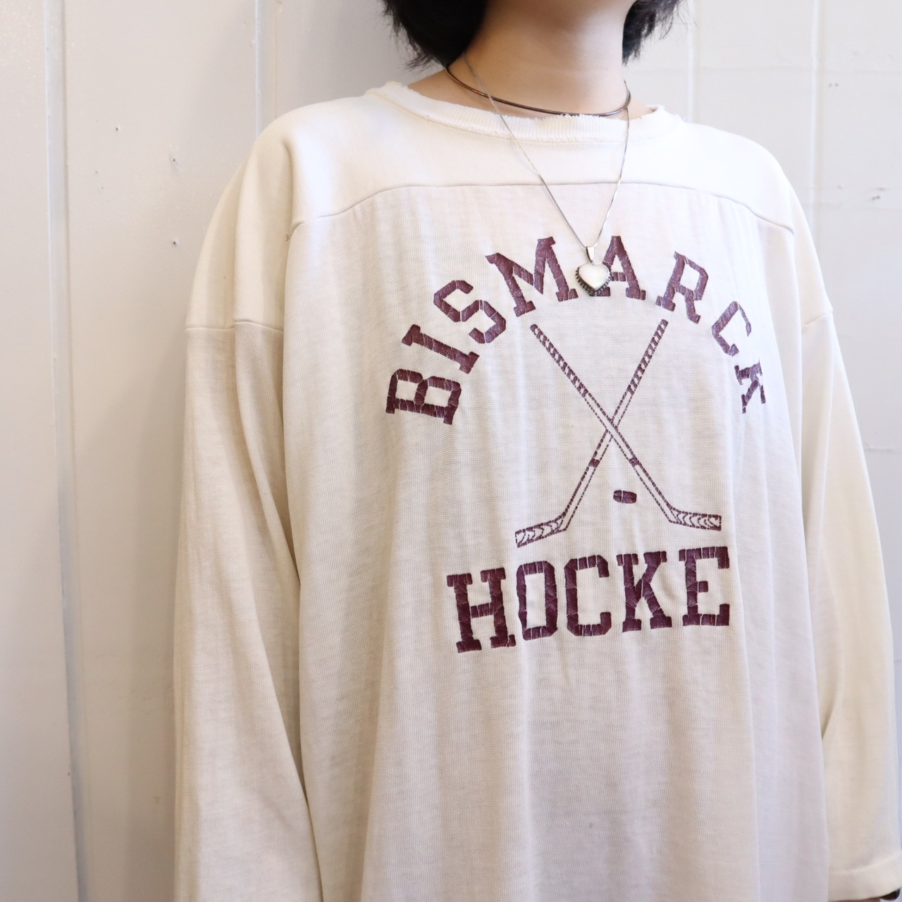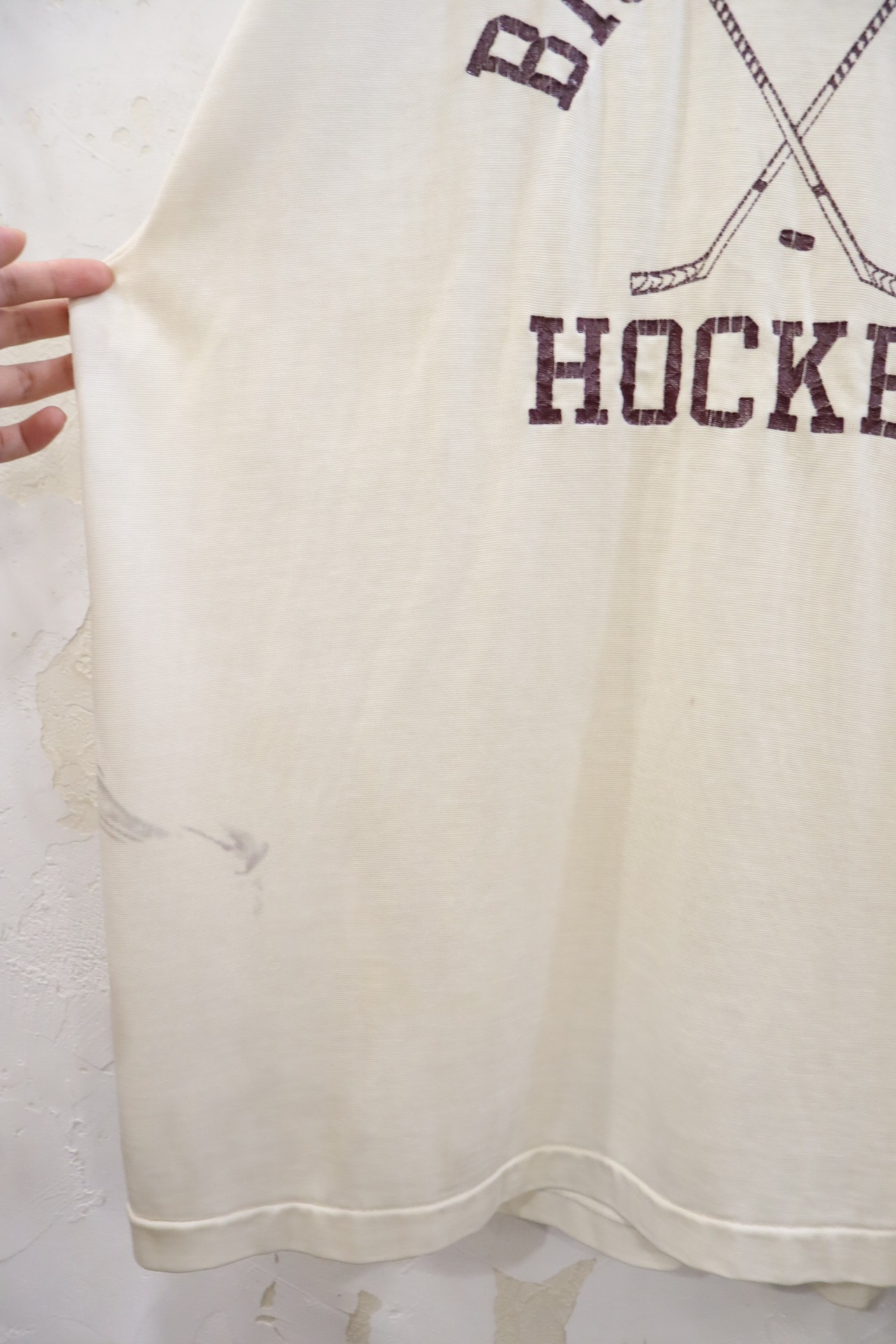 60s-70s Champion offwhite×bordeaux rubber print hockey T-shirt [k-3201]