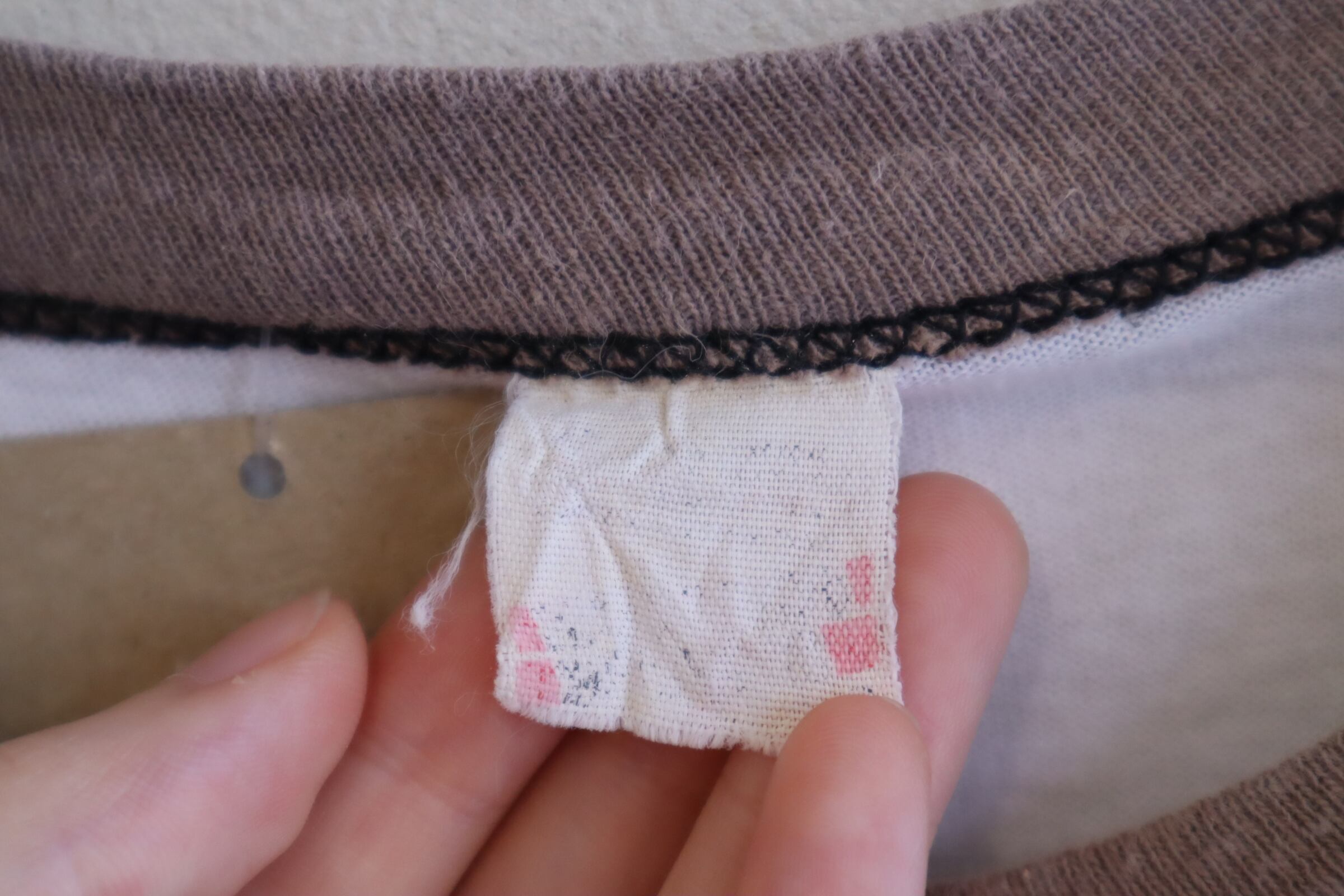 リブに若干毛羽立ち、袖に小さなシミがございますが、あまり気にならないかと思います。