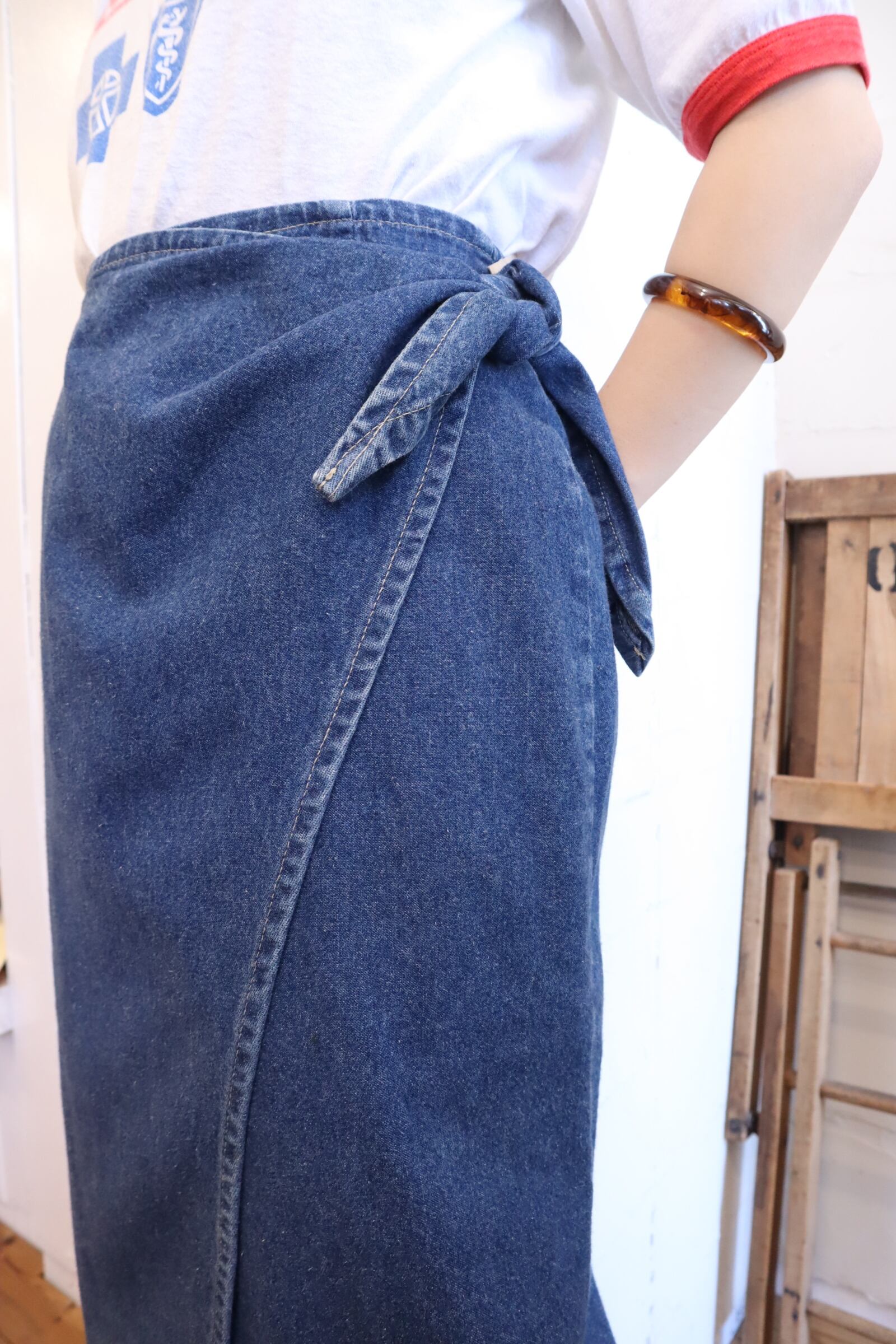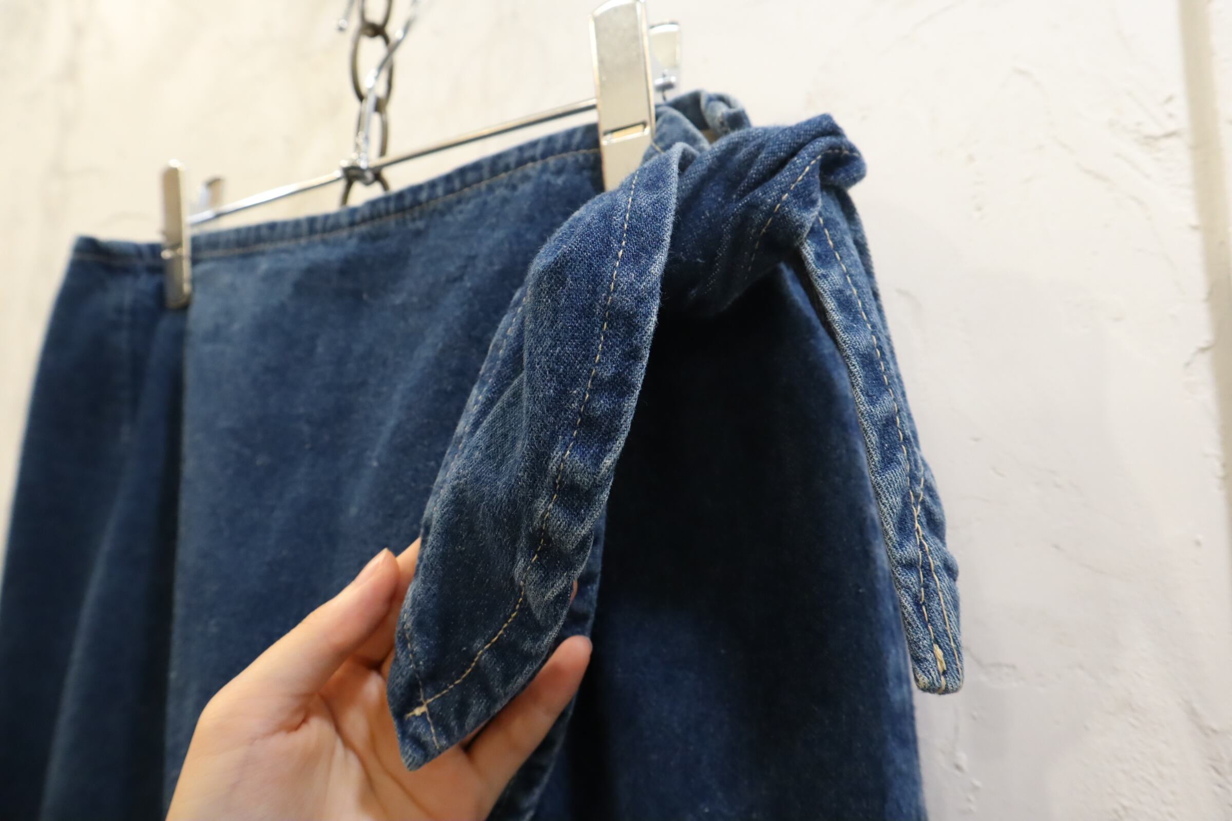 made in USA indigoblue plain wrap denim skirt [l-3234]