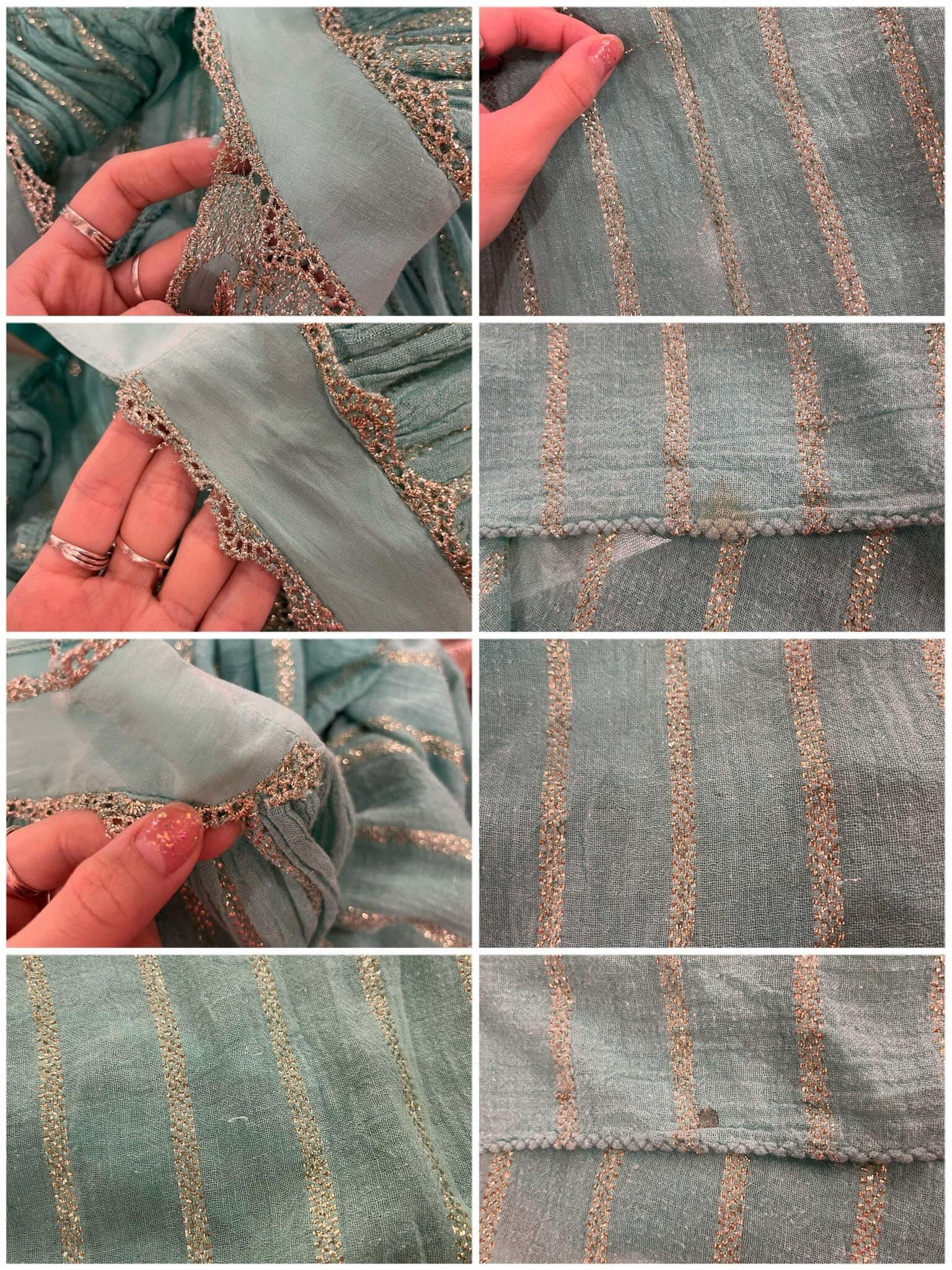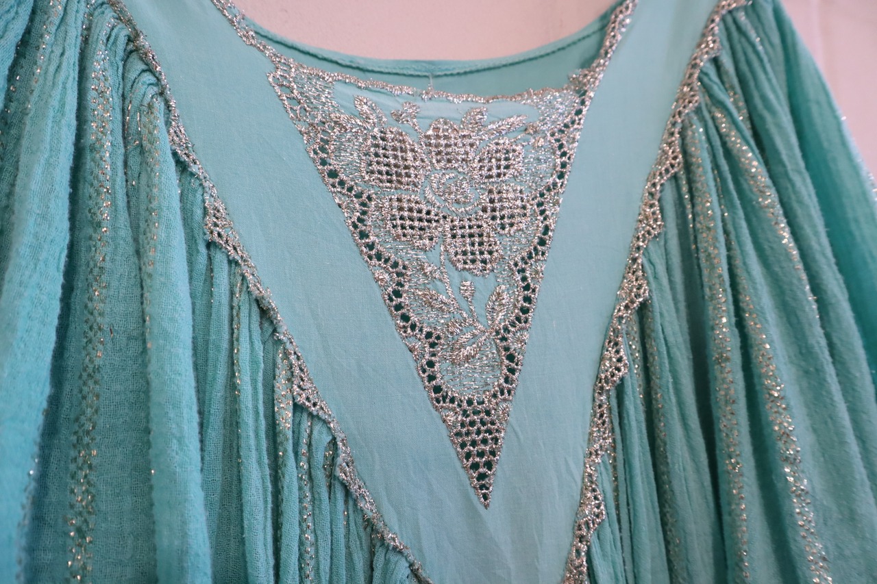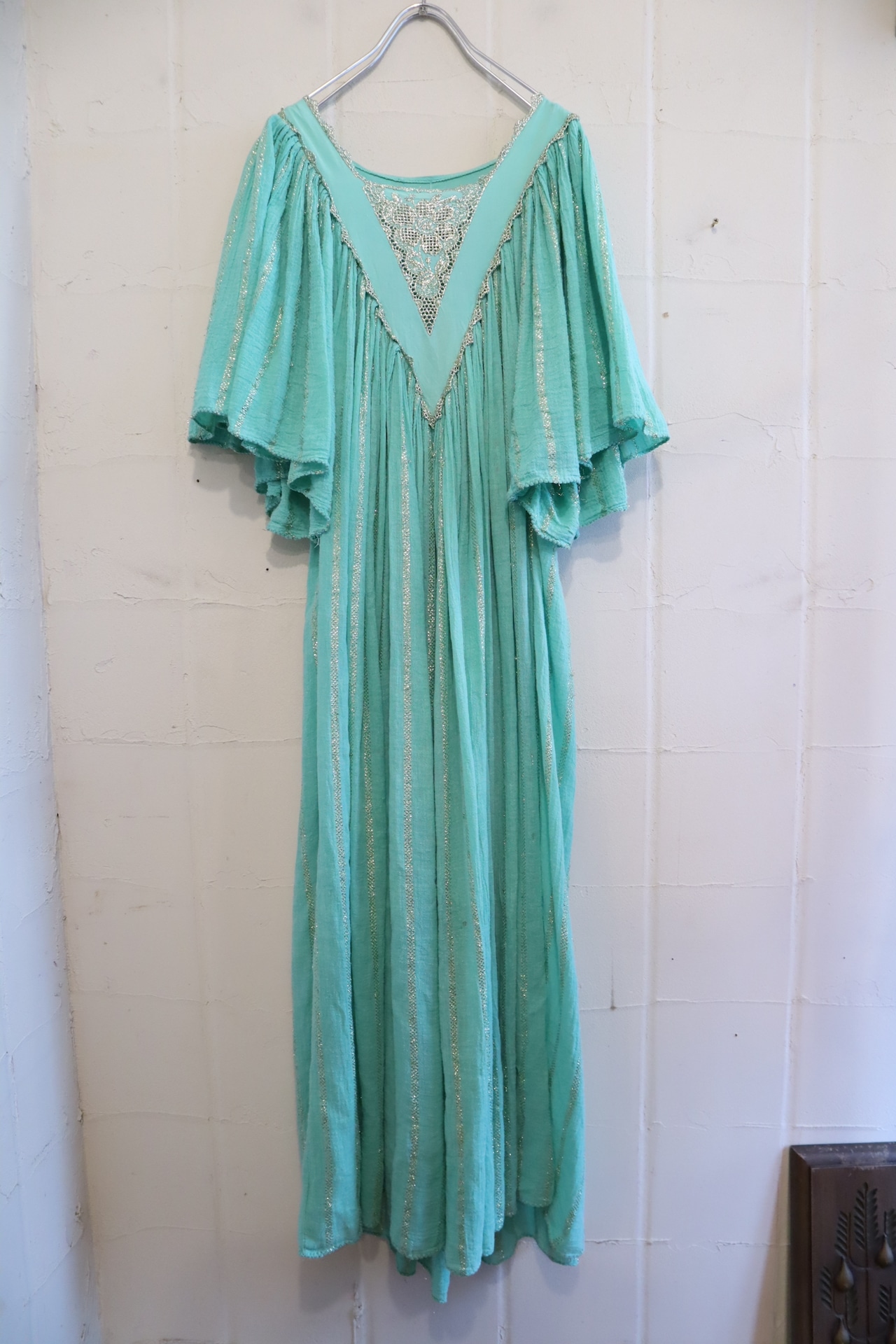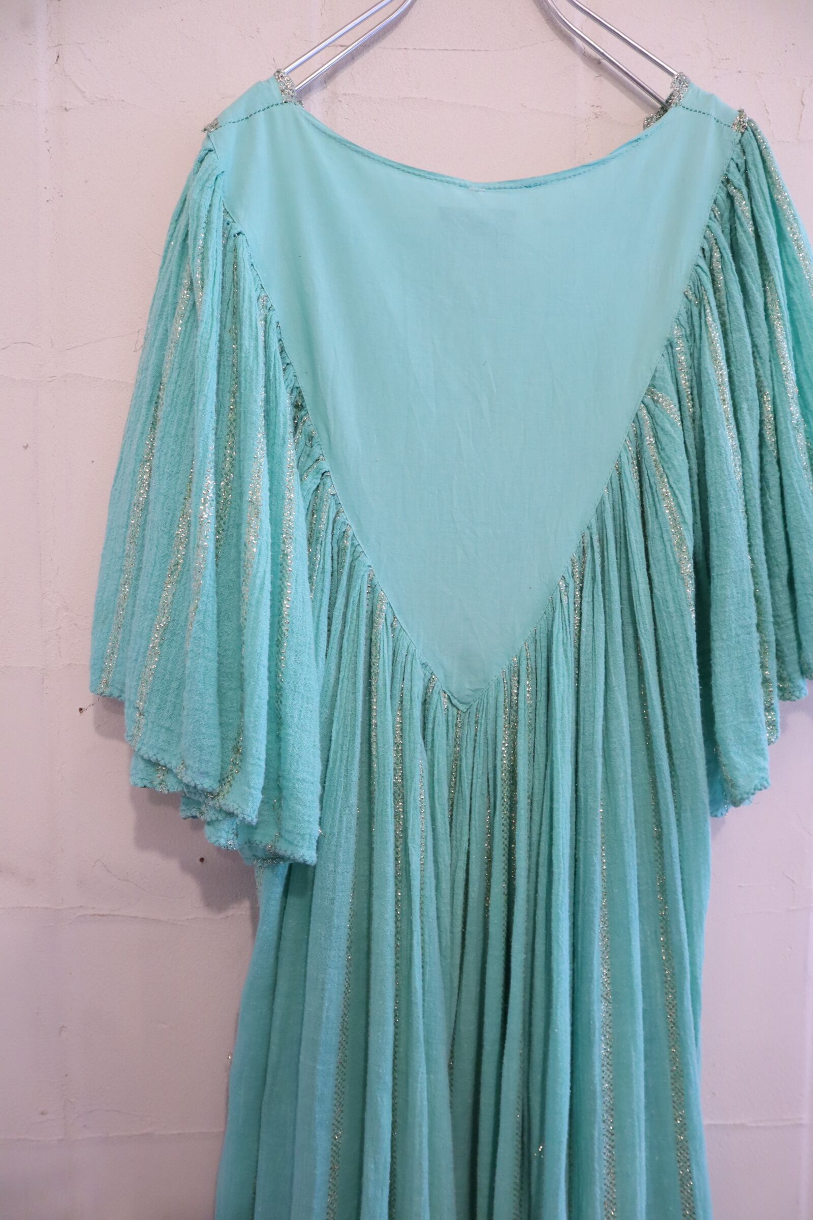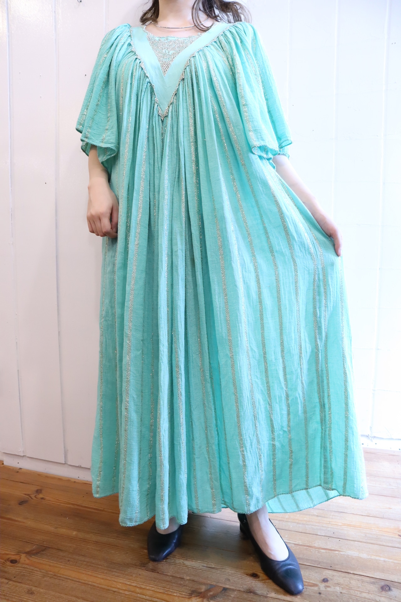 turquoisegreen lame stripe Greece gauze dress [l-3237]