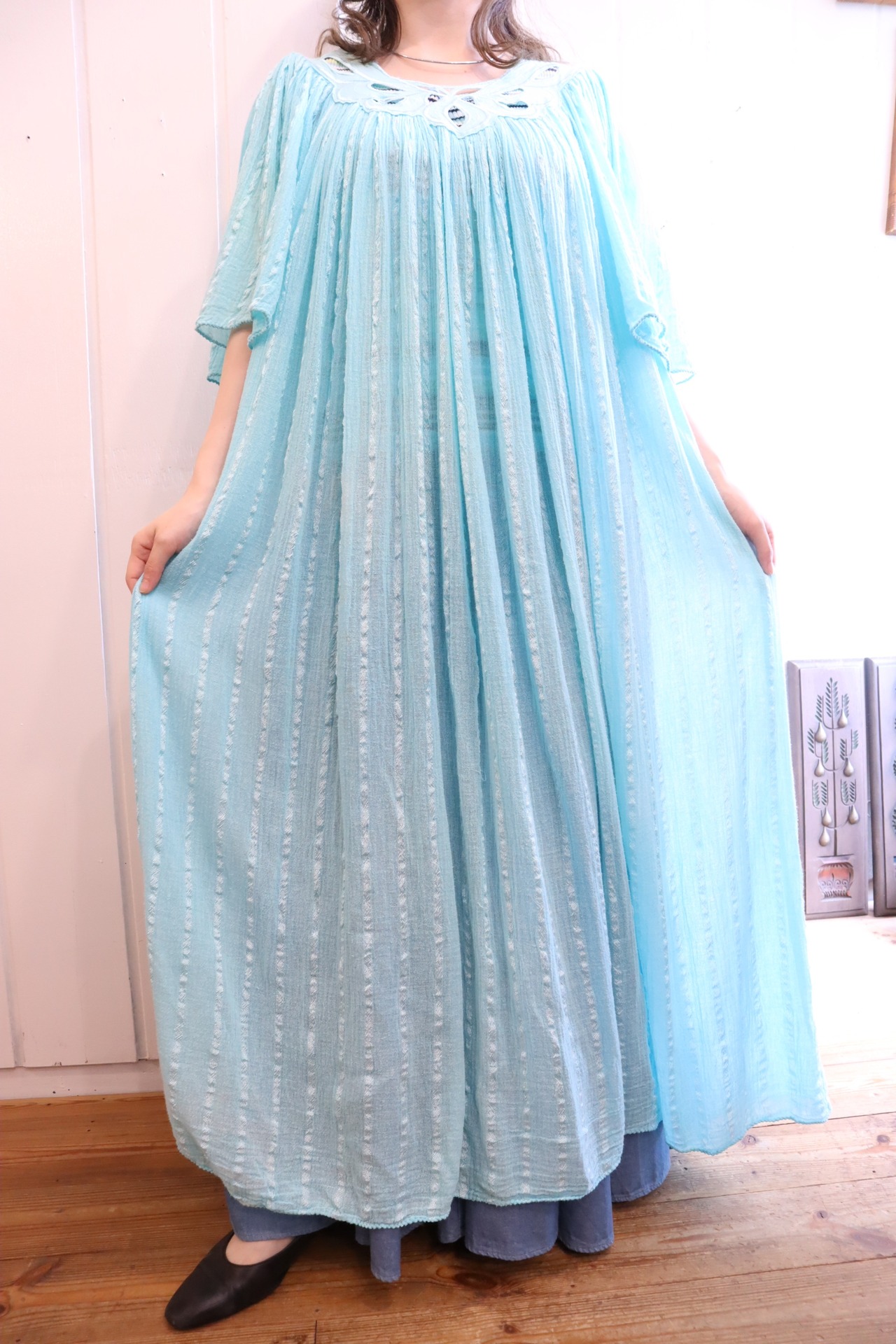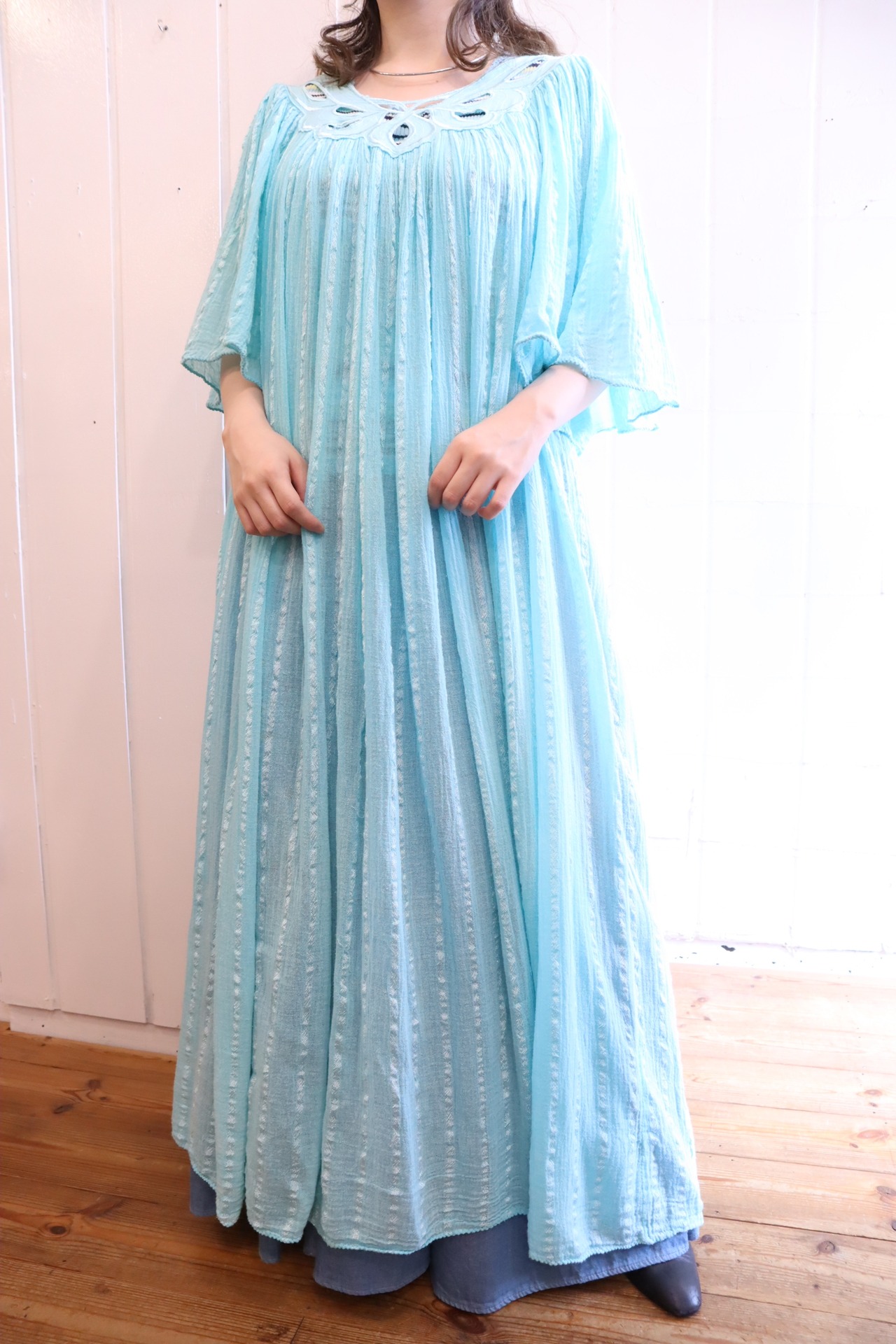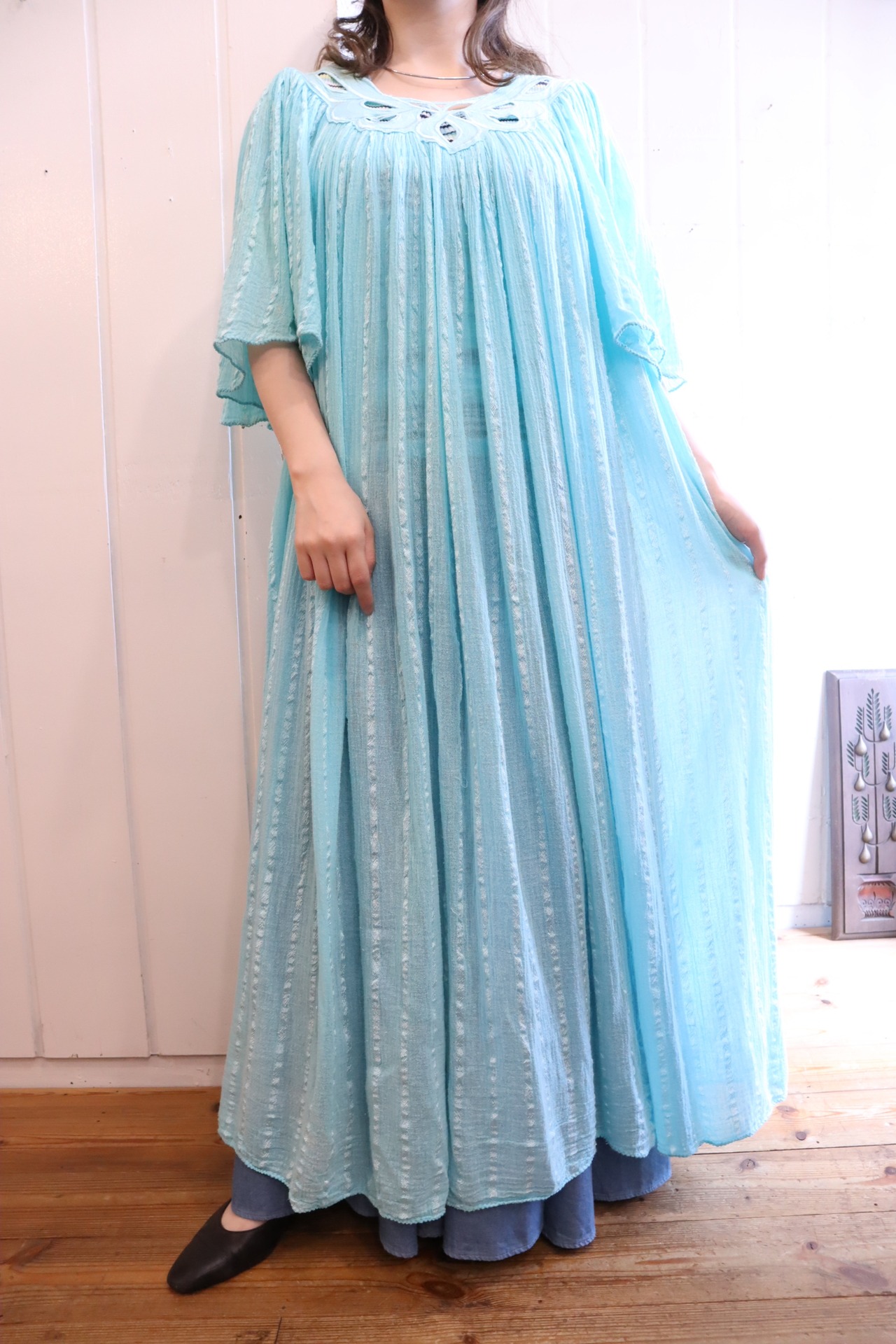 胸元から広がるボリュームたっぷりな生地感が素敵なガーゼドレス。