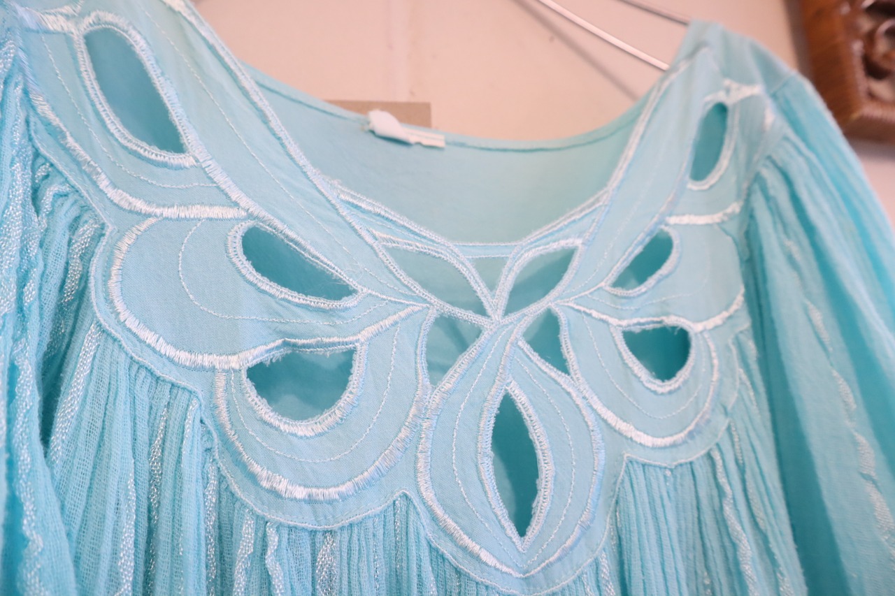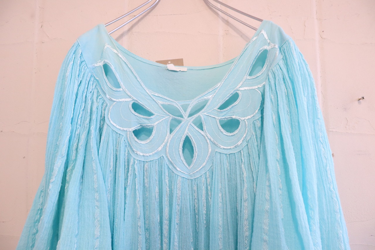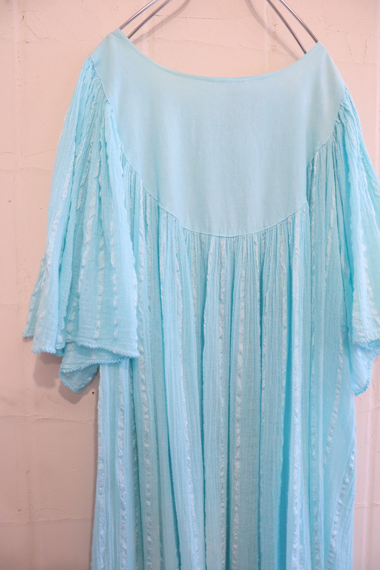 胸元から広がるボリュームたっぷりな生地感が素敵なガーゼドレス。