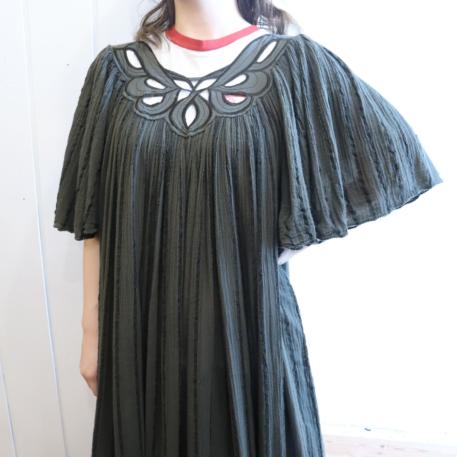 落ち着いたカラーで大人に着こなせるガーゼドレス。