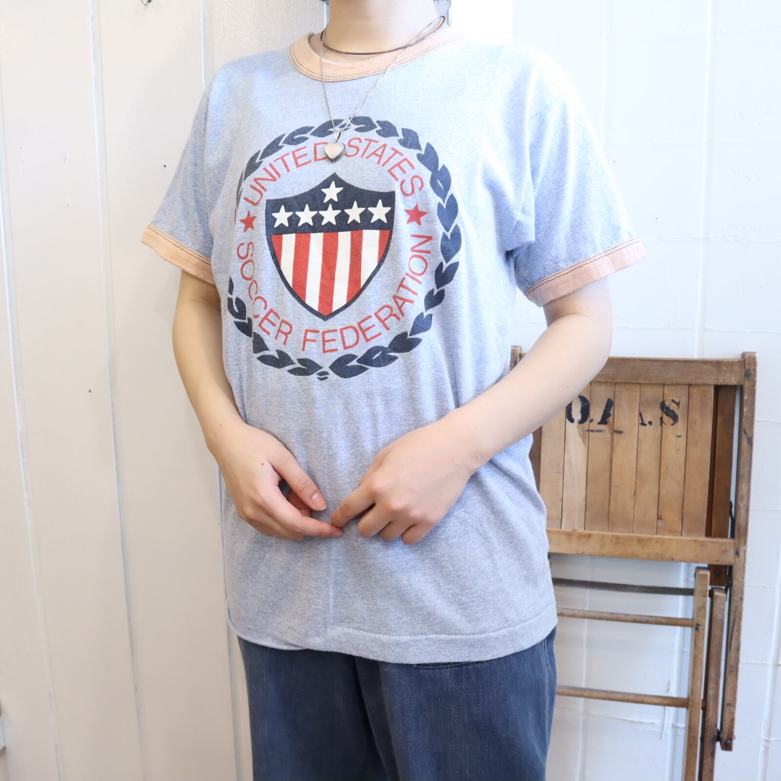 どなたでも着て頂きやすいプリントのリンガーTシャツです。