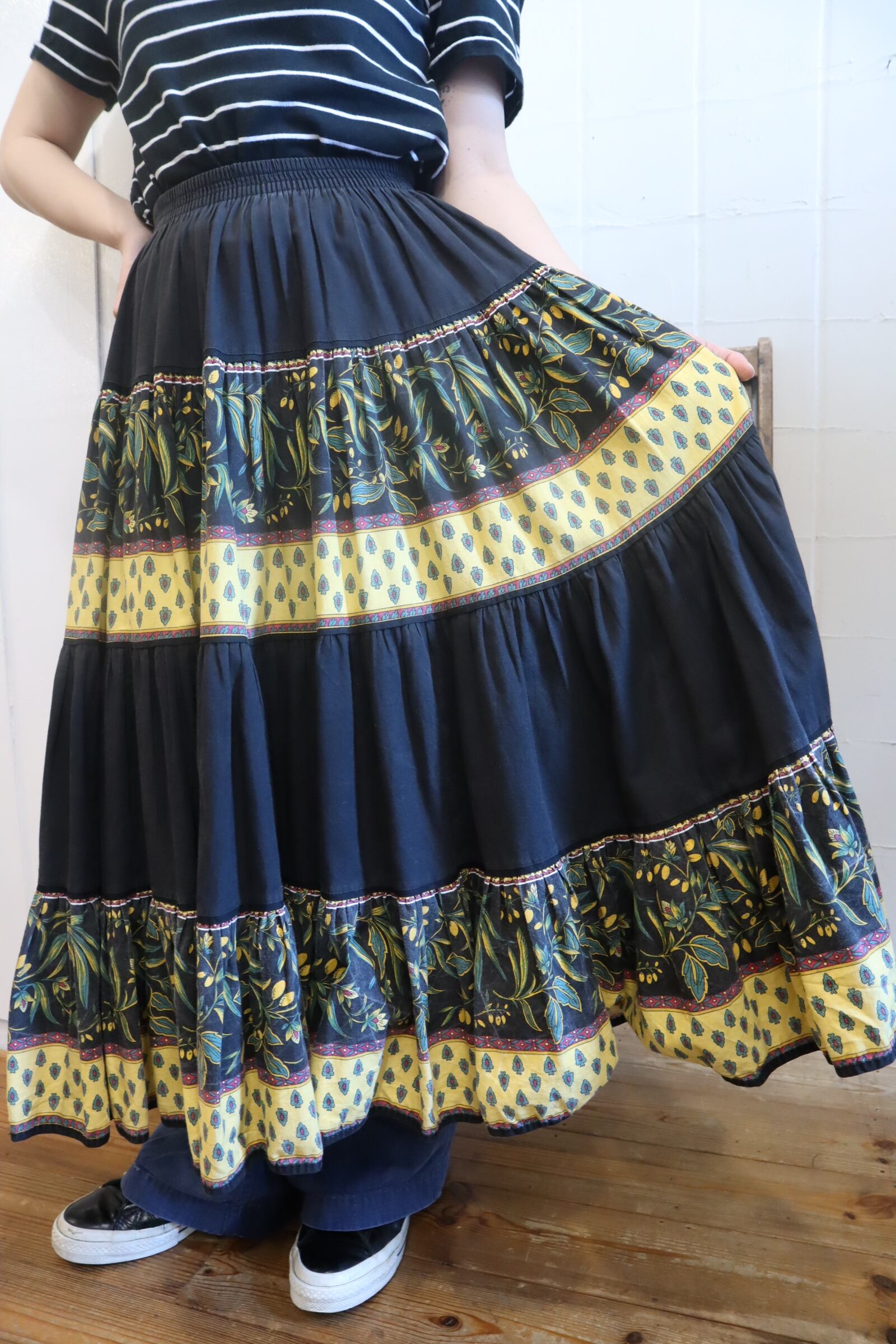 ブラックにイエローが珍しく、無地とボタニカル柄のコントラストが大人に着こなせるポイントです◎