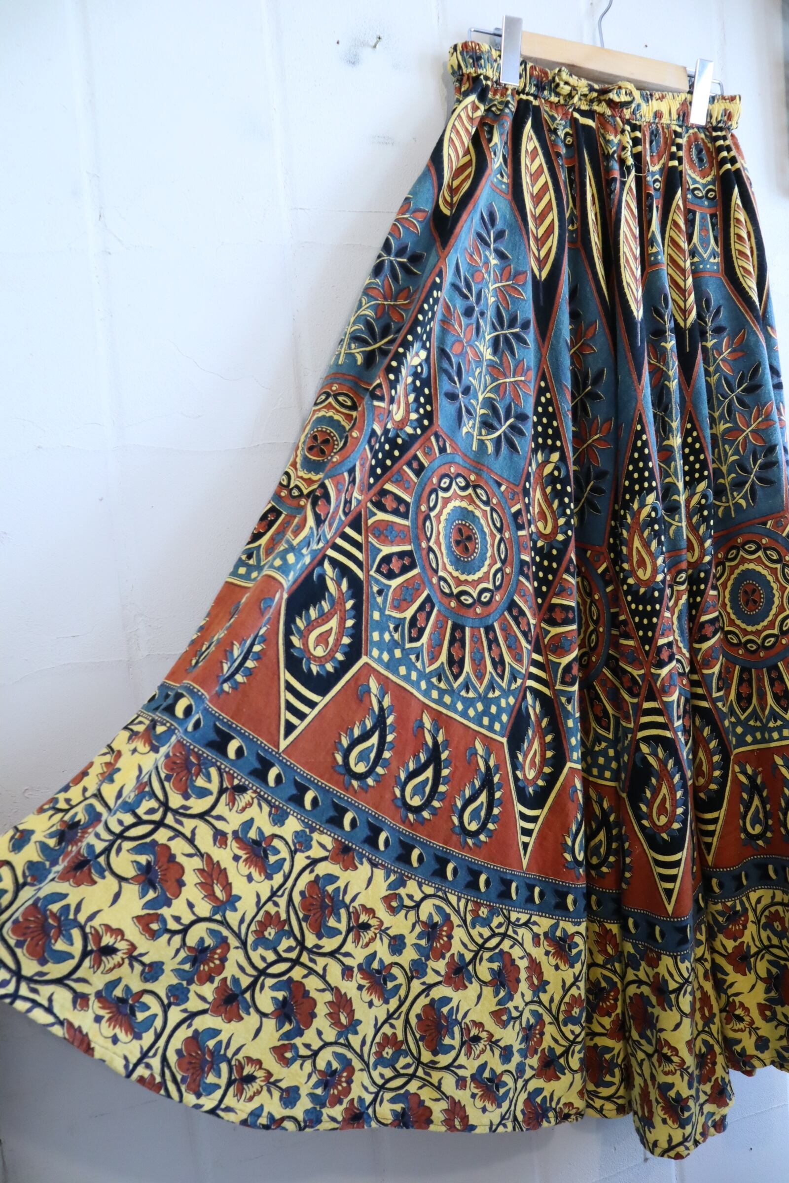 アシンメトリーな裾のデザインが素敵なエスニックスカート。