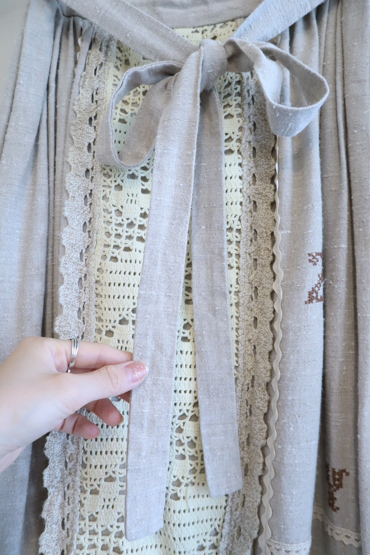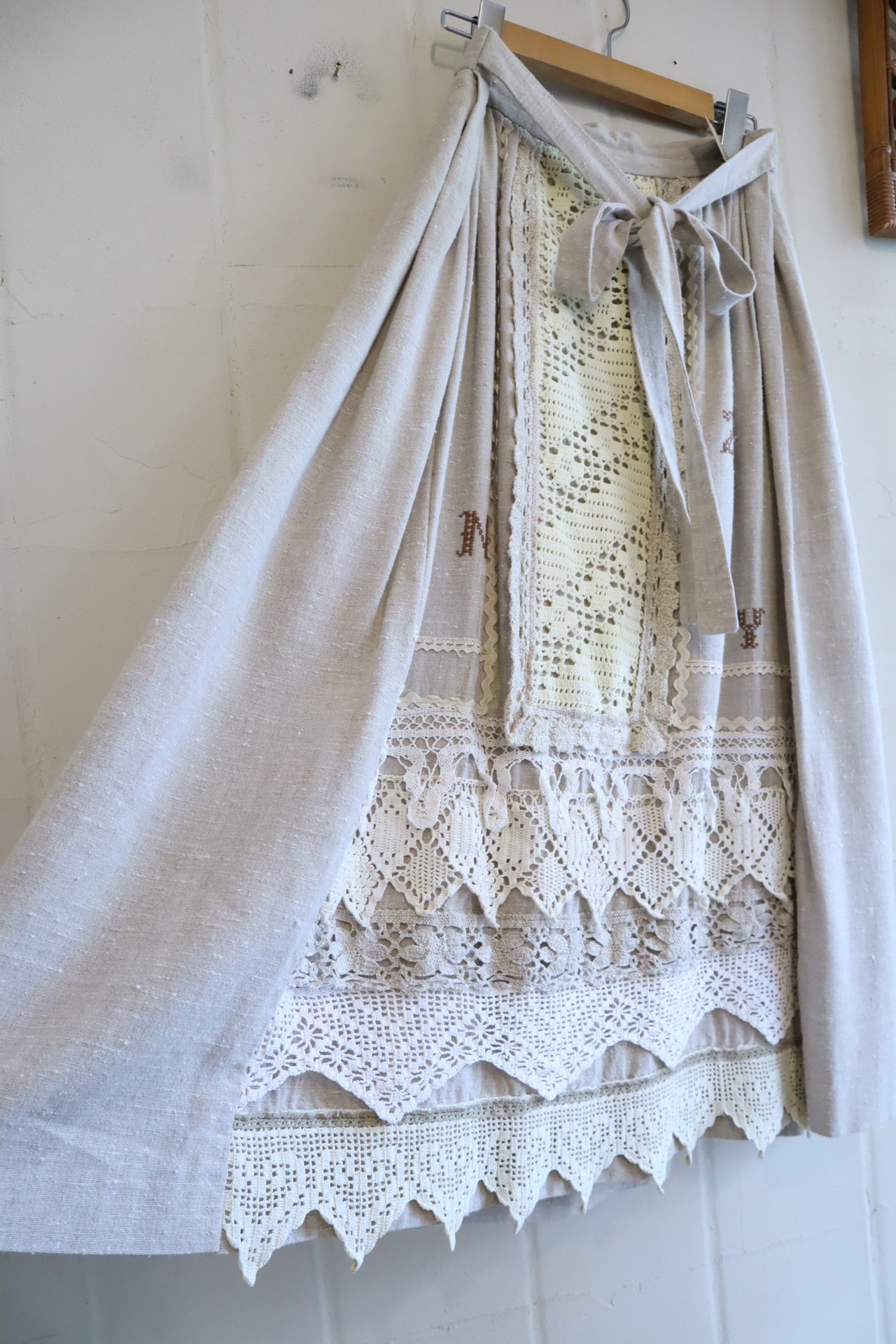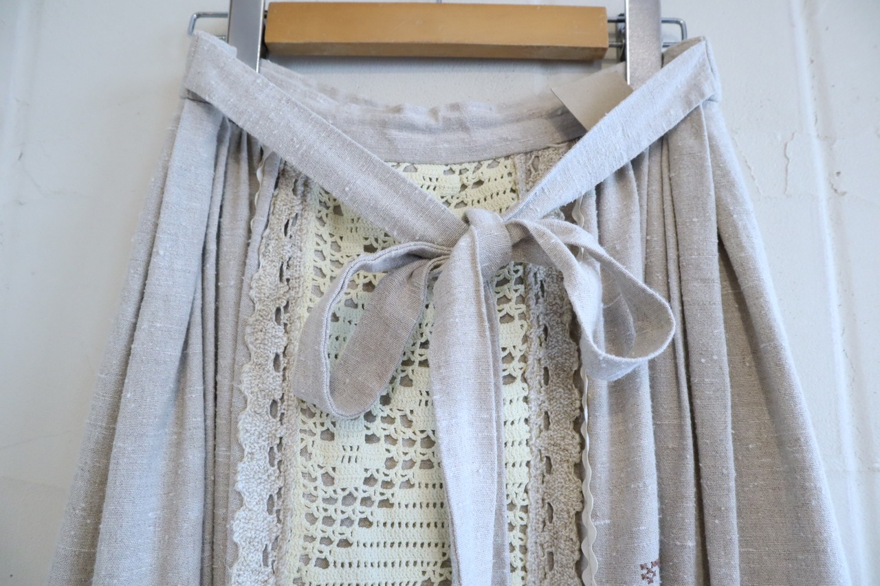 ecru crochet lace & embroidery linen tyrol skirt [l-3261]