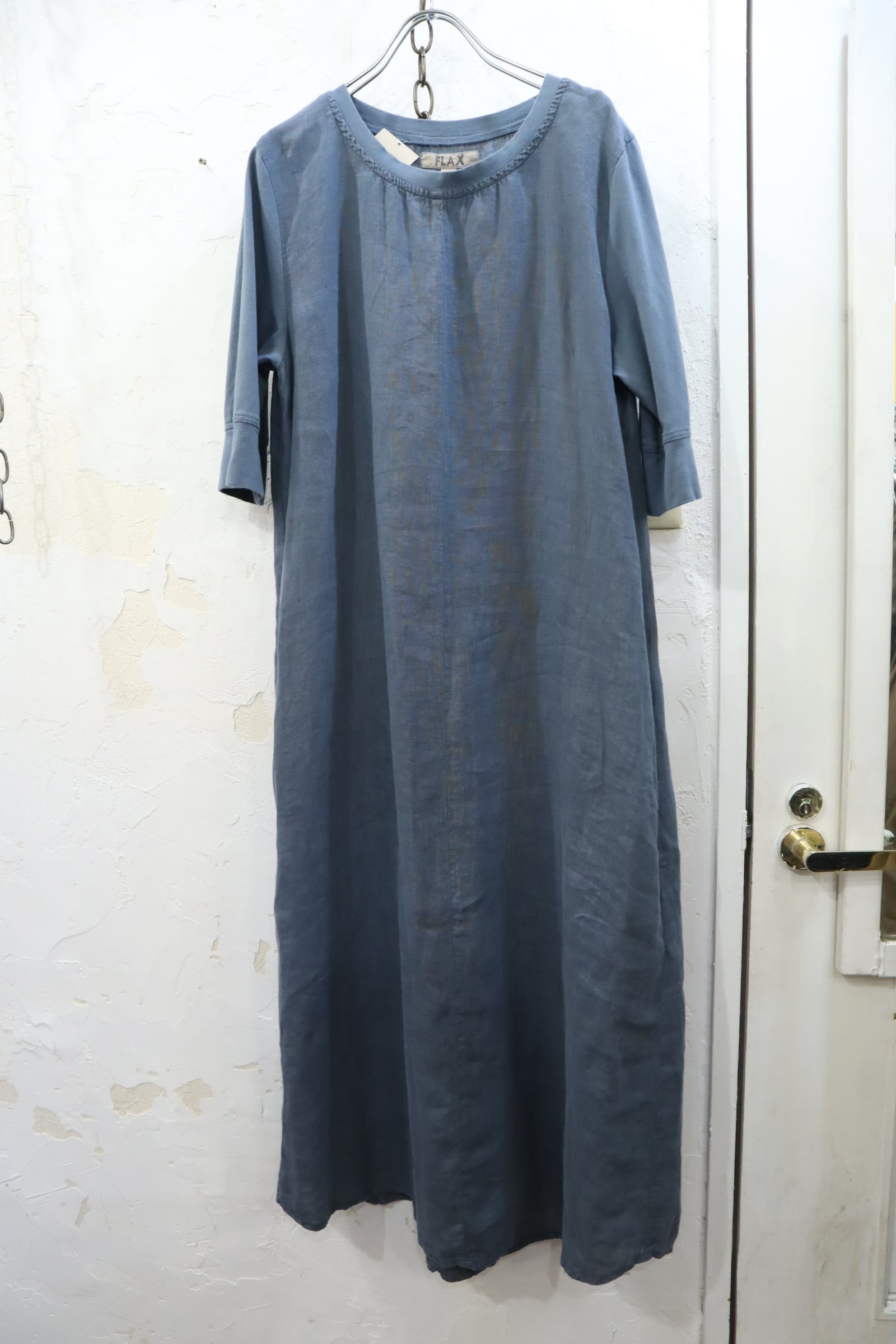 袖と首回りの生地の切替デザインが珍しいFLAXのドレス。