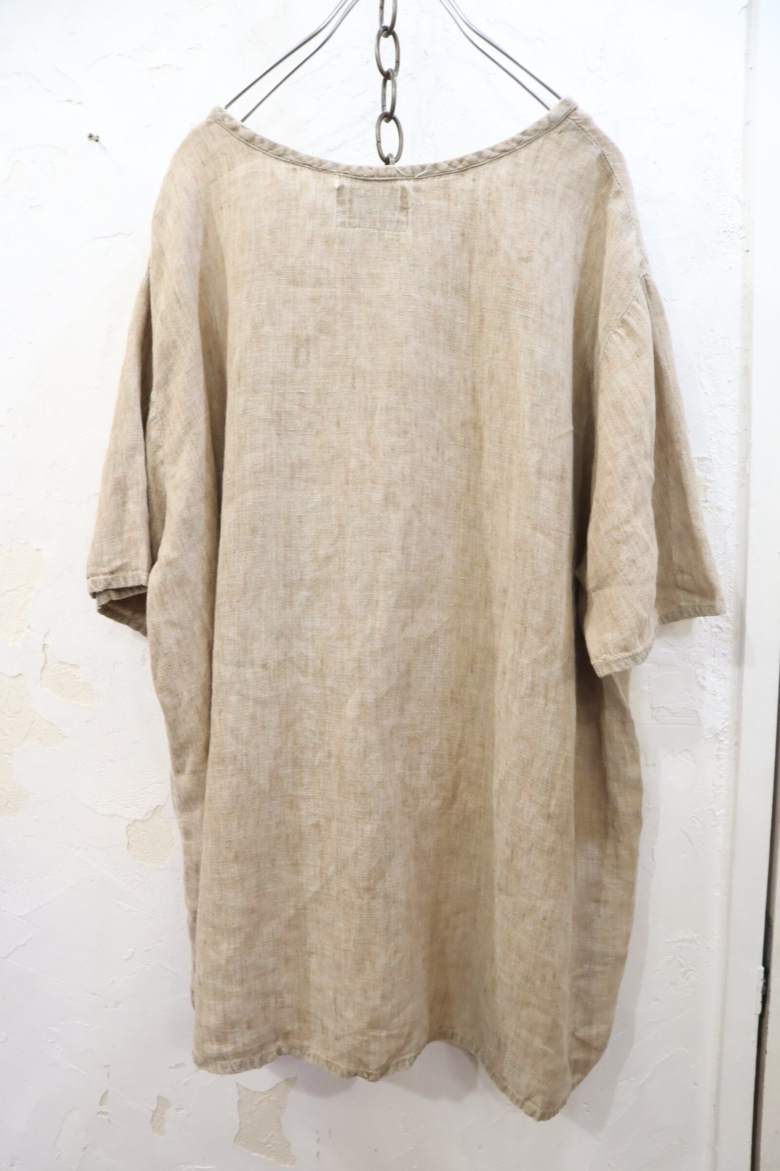 FLAX beige plain short sleeve tops [k-3265]