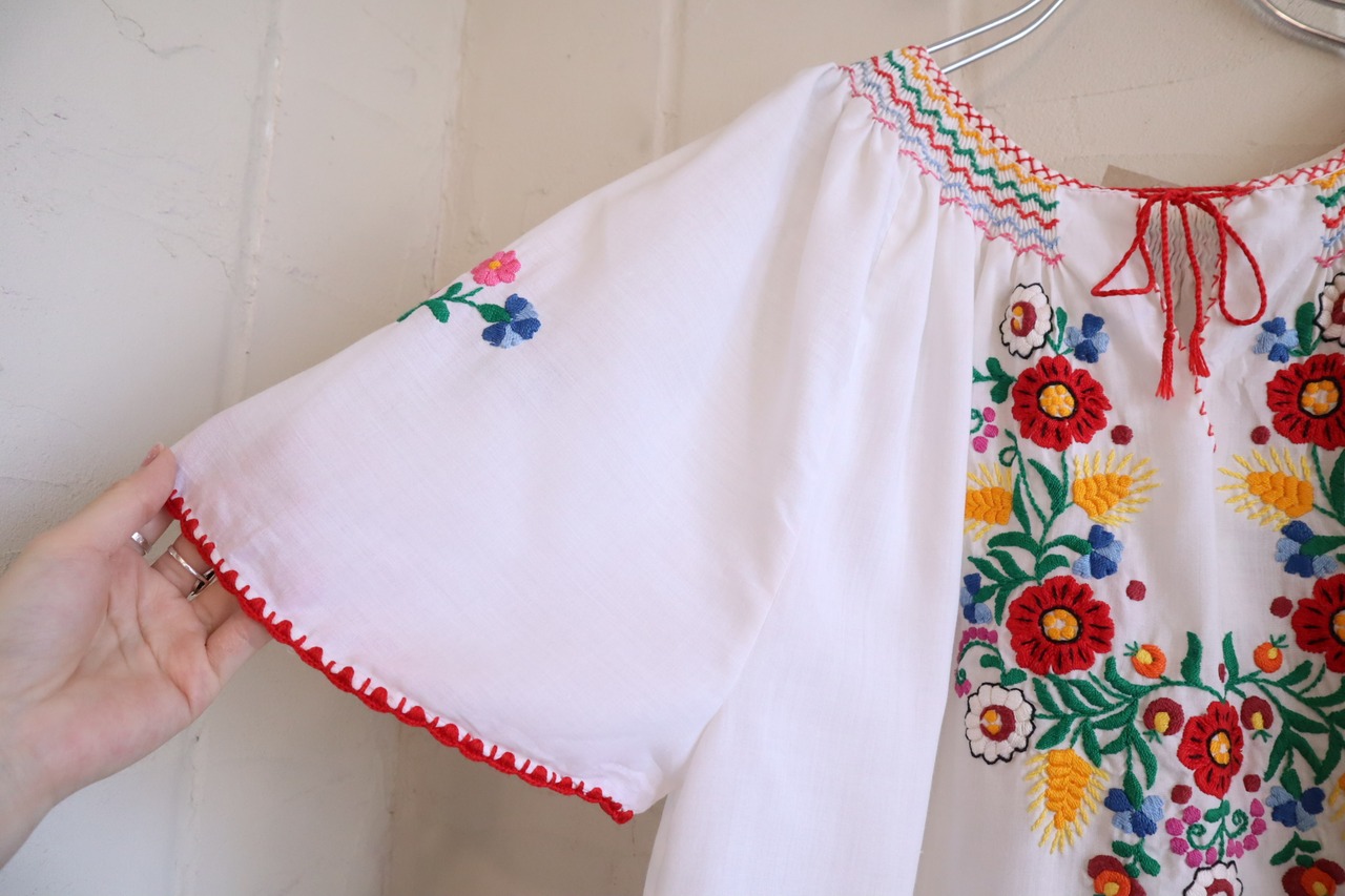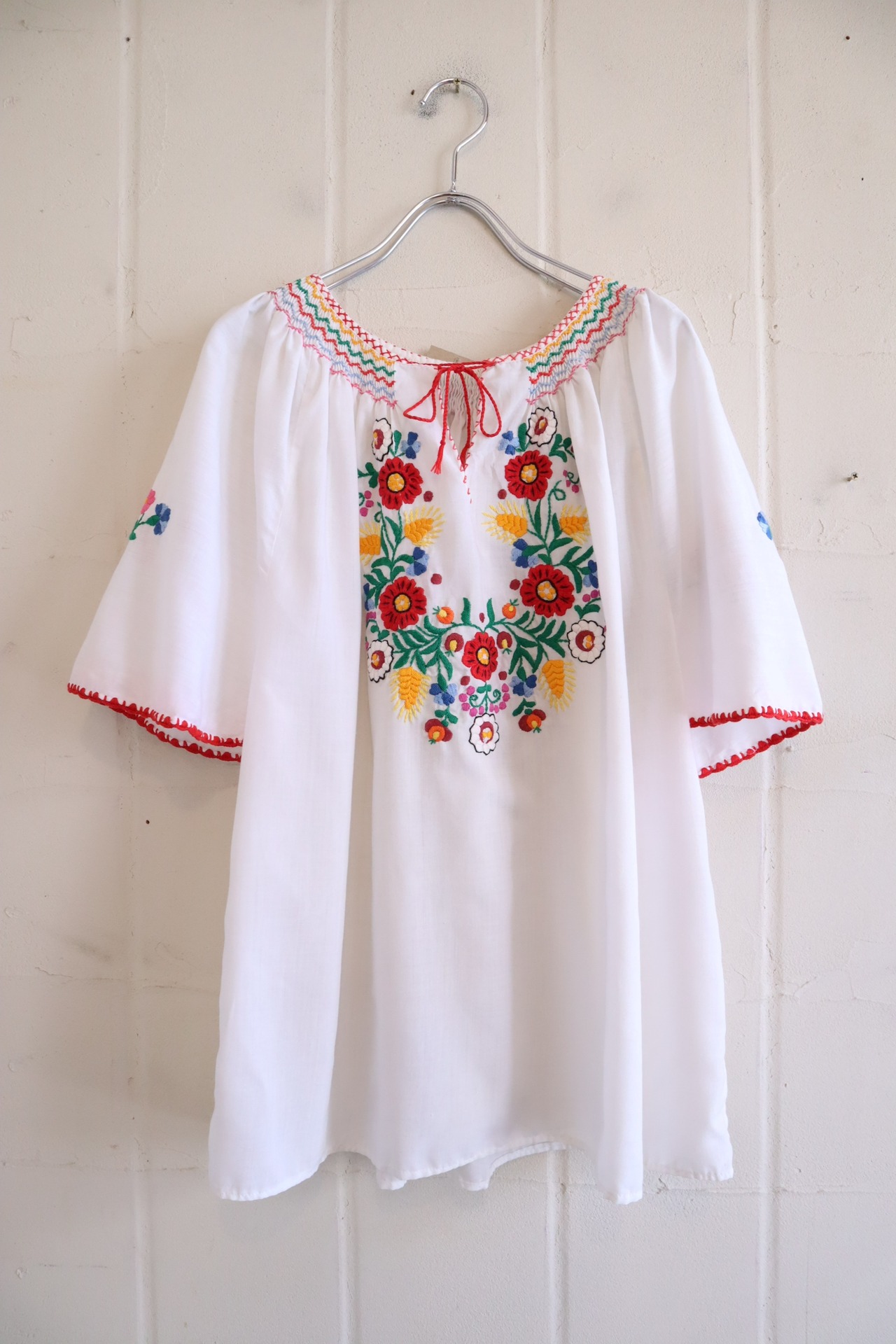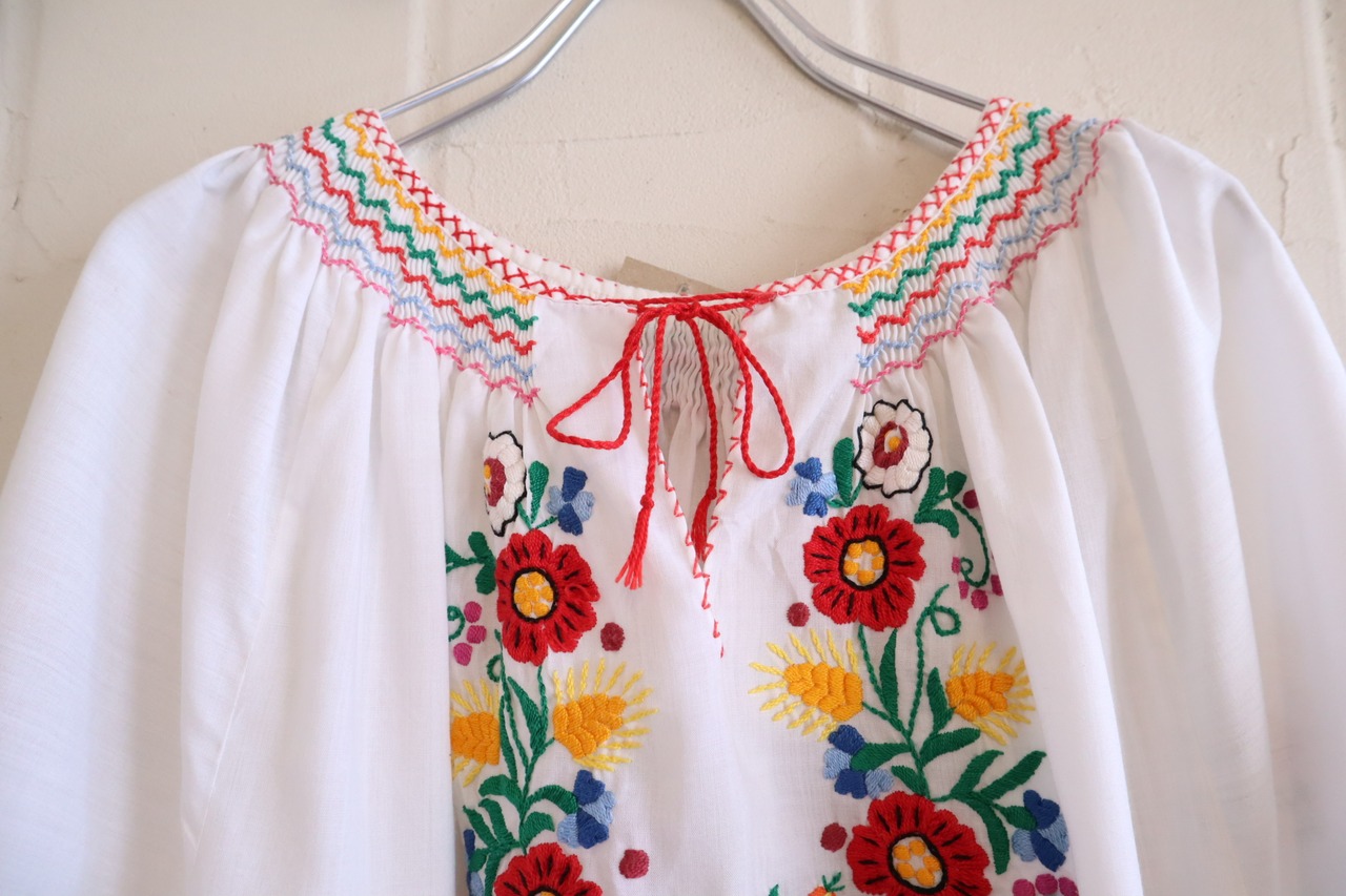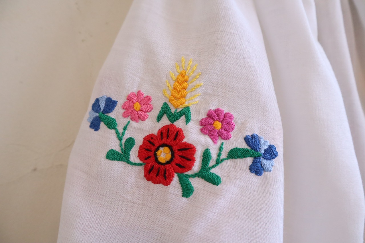 ぷっくりしたお花と小麦の刺繍が素敵なハンガリーチュニック。