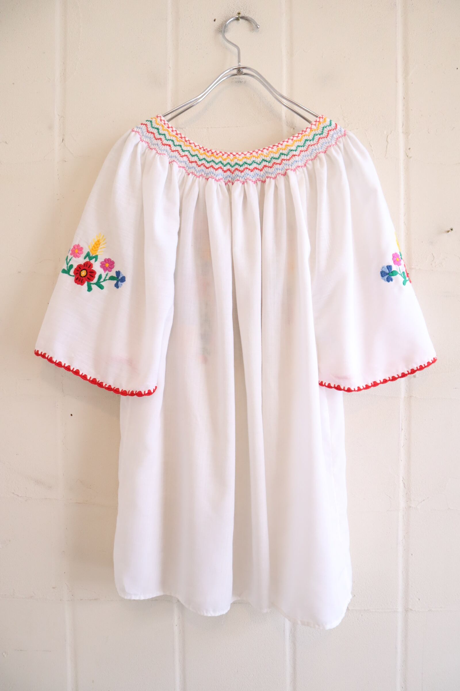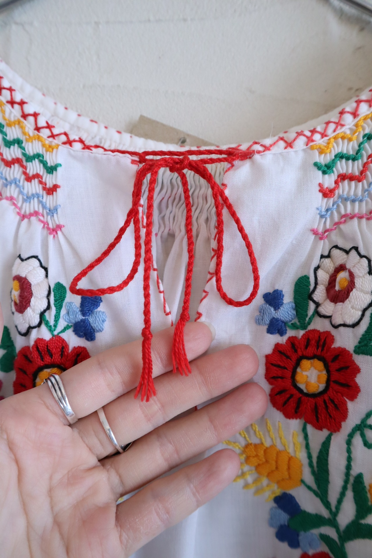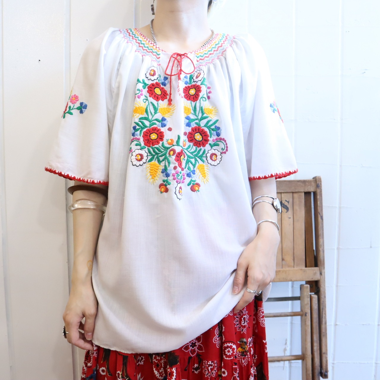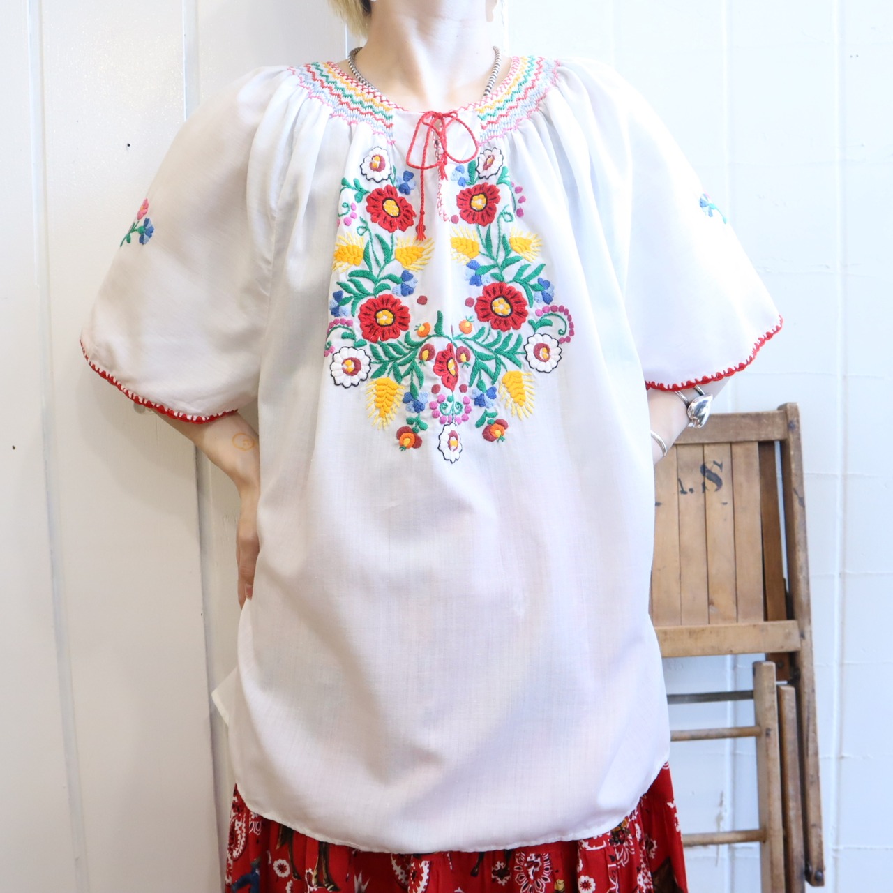 ぷっくりしたお花と小麦の刺繍が素敵なハンガリーチュニック。