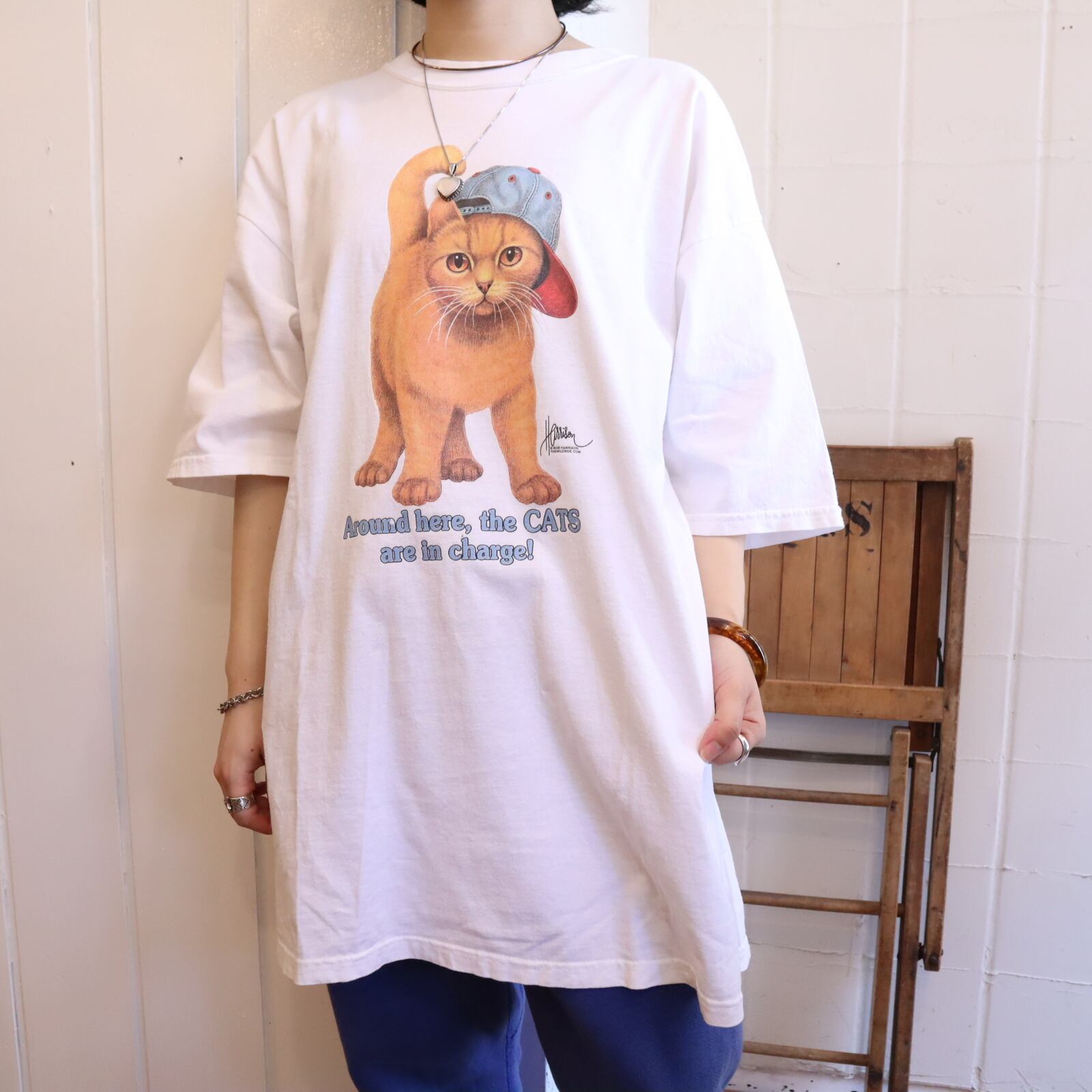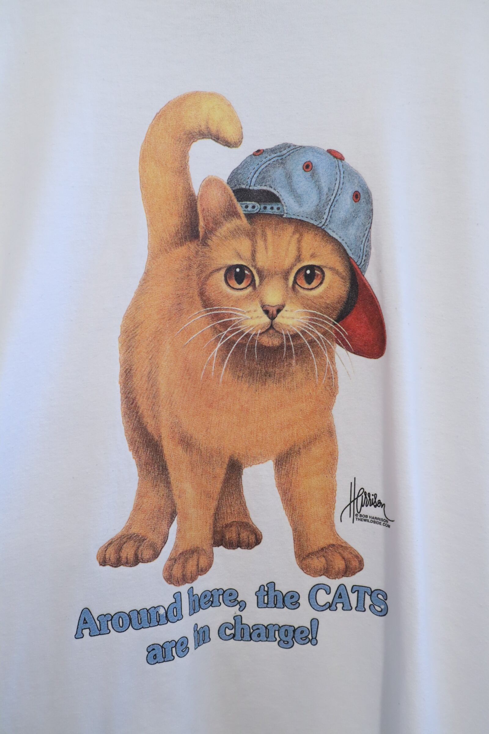 帽子を被ったやんちゃそうなネコのプリントが可愛いTシャツ。